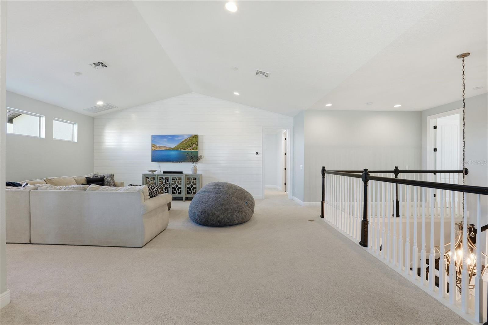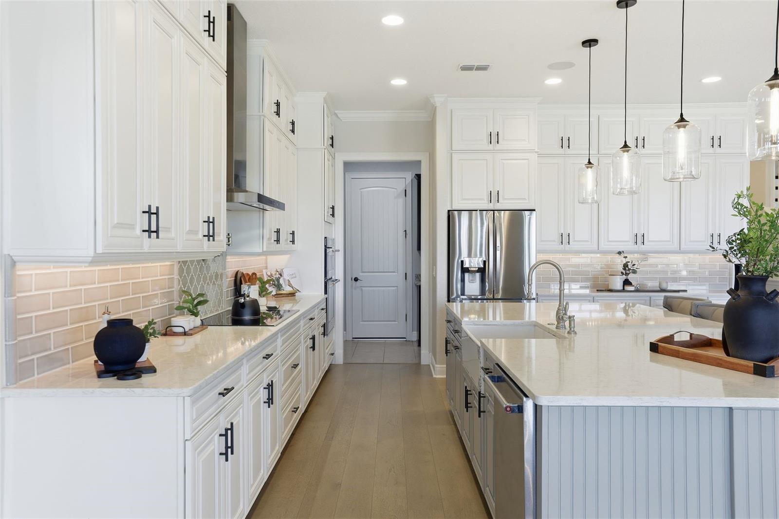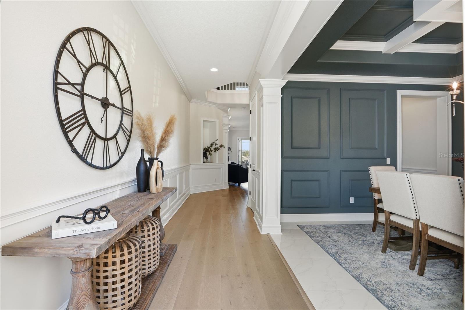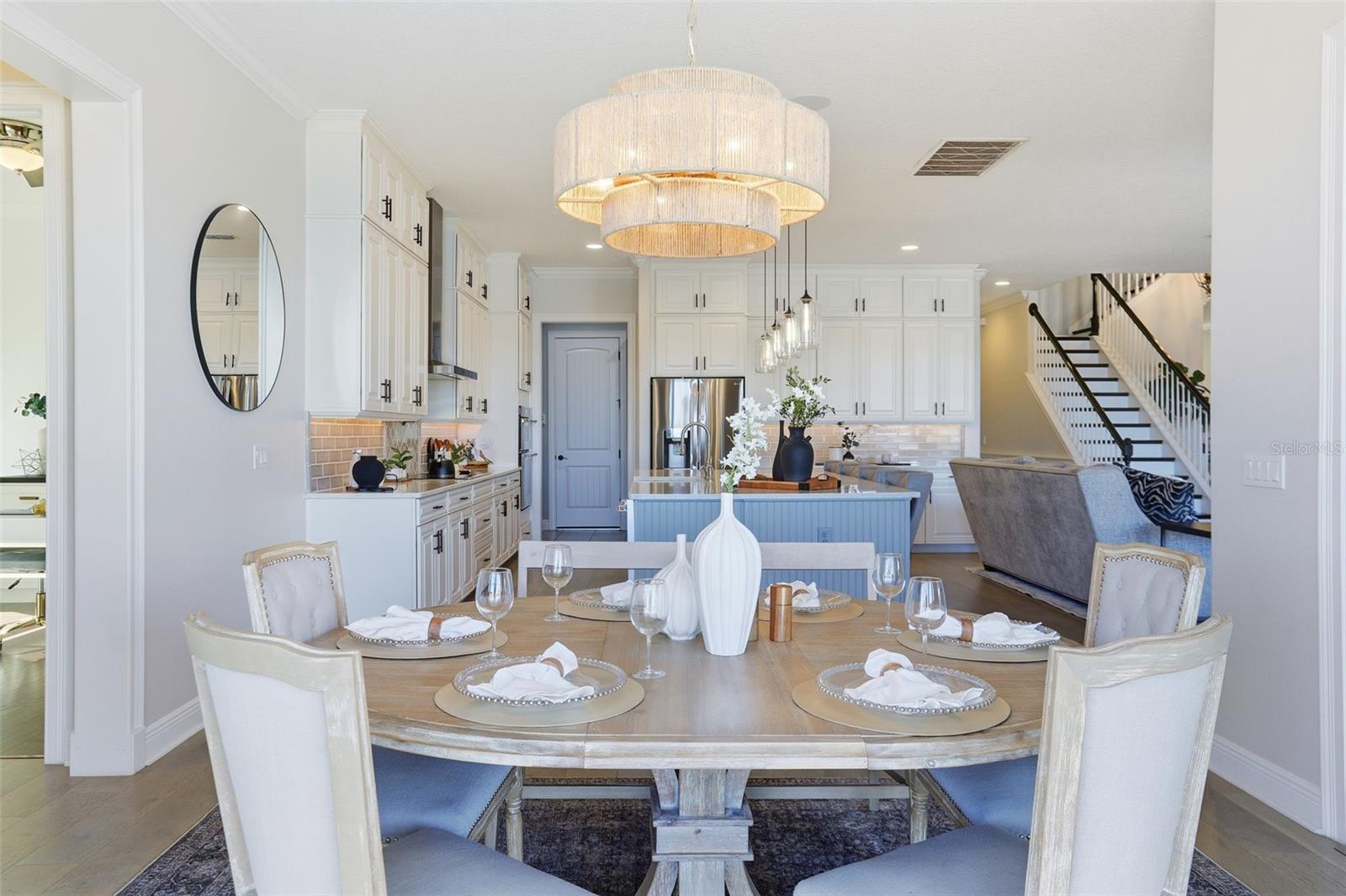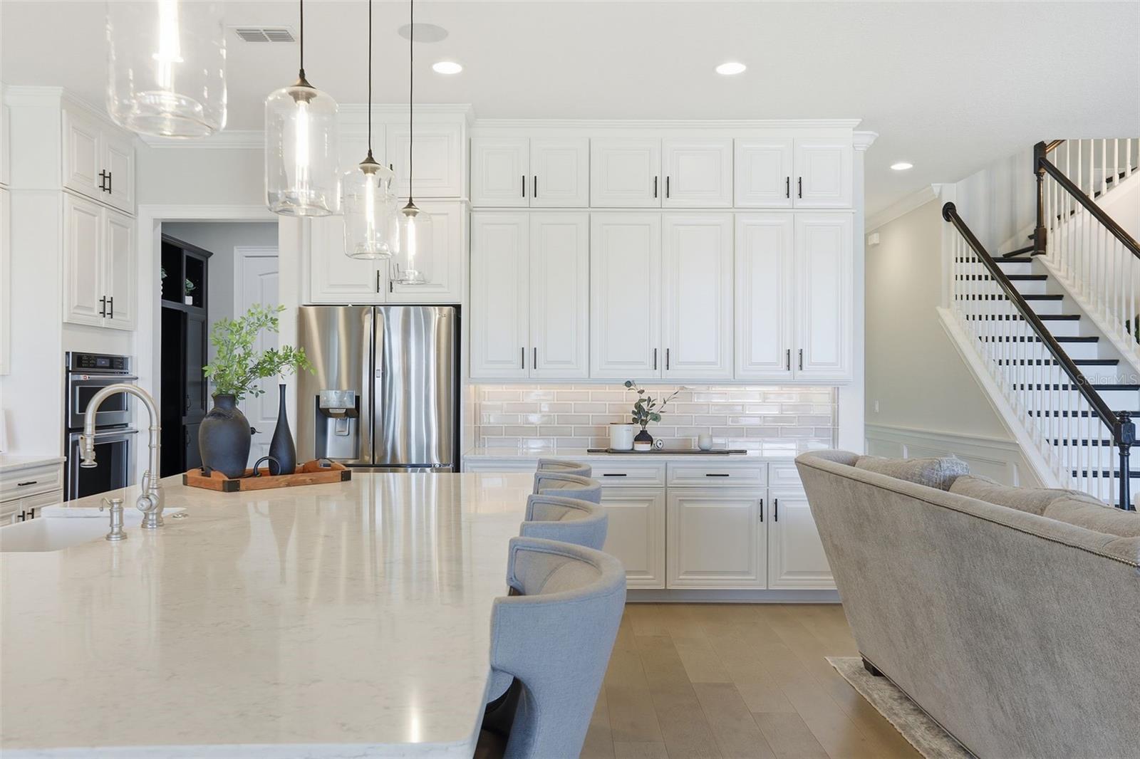 There are homes built to impress—and then there are homes built to be remembered. Set along a peaceful cove on Johns Lake, this lakefront estate offers a lifestyle that feels both refined and effortless. Spanning over 5,100 square feet, the home features seven bedrooms, five-and-a-half baths, and sweeping water views, with spaces thoughtfully designed for everyday living and unforgettable gatherings. Natural light fills the interior, highlighting tailored millwork, warm hardwood flooring, and a striking staircase that makes an immediate architectural statement. The layout flows seamlessly toward the heart of the home, where the lake becomes a constant backdrop. The main living area is both dramatic and inviting, anchored by a sleek electric fireplace and expansive glass doors that open to the outdoors, creating a true indoor-outdoor connection. The kitchen is elevated yet highly functional, centered around a statement island with a porcelain farmhouse sink and quartz countertops. Double-stacked cabinetry, a flat cooktop with pot filler, premium appliances, and generous pantry space support effortless entertaining. Just beyond, an eat-in breakfast area framed by French doors on two sides opens directly to the lanai with views of the pool and lake. A flexible main-level office or den offers versatility for a home office, gym, or additional bedroom, ideal for multigenerational living. The primary suite on the main floor is a private retreat, featuring a separate sitting area overlooking the pool and lake, a spa-inspired bath, and a custom walk-in closet—designed for comfort, flexibility, and quiet relaxation. Upstairs, a spacious loft provides room for media or gathering, surrounded by six additional bedrooms. Two bedrooms feature private baths, while two others share a well-designed Jack-and-Jill bath, offering comfort and privacy for family and guests alike. Outdoors, the lifestyle truly comes alive. A covered and screened lanai overlooks the heated pool and paver terrace, perfect for year-round enjoyment, while the backyard includes an in-ground trampoline seamlessly integrated into the landscape. The experience continues beyond the pool with a thoughtfully designed dock that comes alive at night with ambient lighting. At the end, a boathouse awaits with a covered boat lift, lifts for two jet skis, power, water, and generous deck space—ideal for fishing, entertaining, or simply enjoying sunset views across Johns Lake. Additional highlights include a four-car garage, plantation shutters, security system, dual laundry rooms, and recent interior and exterior updates. Located in the Twinwaters community, residents enjoy a neighborhood pool, playground, and walking trail, just minutes from Winter Garden Village, Historic Downtown Winter Garden, top-rated schools, major highways, and Orlando’s iconic destinations. This is more than a lakefront home—it’s a place where architecture, lifestyle, and water come together beautifully.