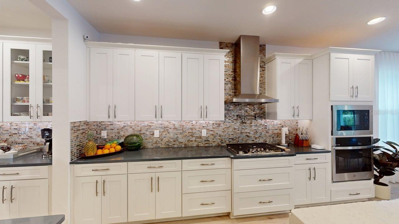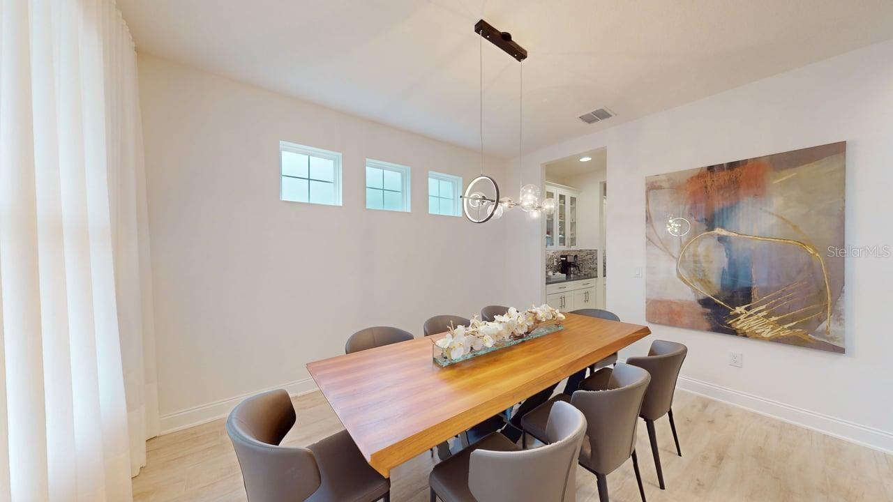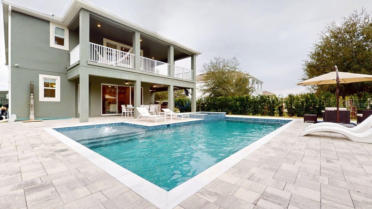 Luxurious 5-bedroom 5-bathroom home with TWO MASTER SUITES. The primary suite is on the second floor. The second suite is located on the first floor. 8 x 48 Ceramic tile with warm wood-look throughout the entire home. Massive Kitchen Island. Quartz Waterfall for Kitchen Island. Farmhouse Undermount Cast Iron Kitchen Sink. Butler’s Pantry area and Large Walk-in pantry between the Kitchen and Dining Room. Solid wood 42-inch cabinets with undermount lighting and soft-close doors and drawers. Pot filler above the gas cooktop. Stainless steel appliances include a built-in oven and microwave. Custom-built-in wine storage, wine and beer refrigerators under the stairs. Outside Covered Patio on first floor and covered second floor patio overlooking the enormous pool and spa. Surround sound setup with Ceiling Speakers both on the interior of the home. Outdoor kitchen with sink, refrigerator, cooktop, gas, and charcoal grills. Natural Gas Community with underground natural gas for outdoor grill, kitchen cooktop, pool and spa heater. Community Pool with restrooms, Recreation Area with kids' playground, dock, and Lake Access to Lake Avalon.