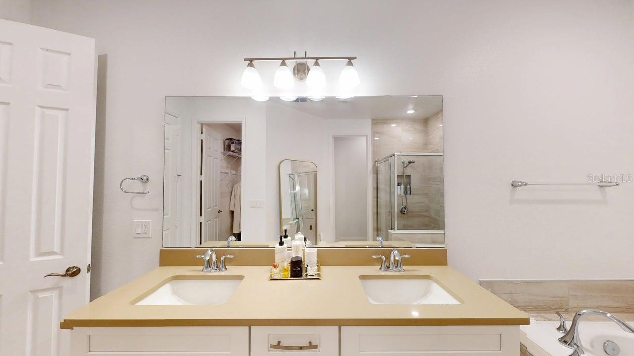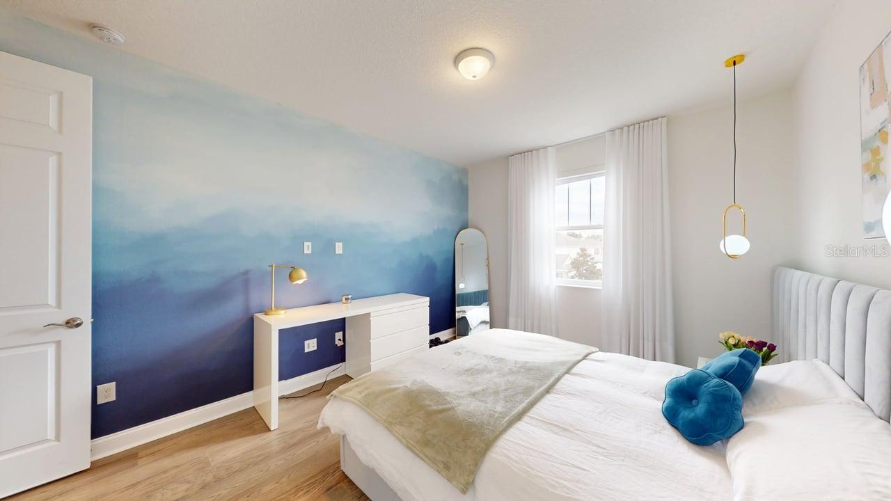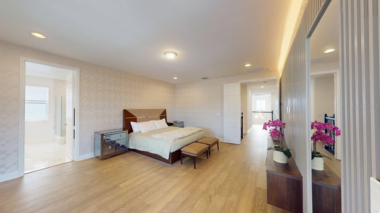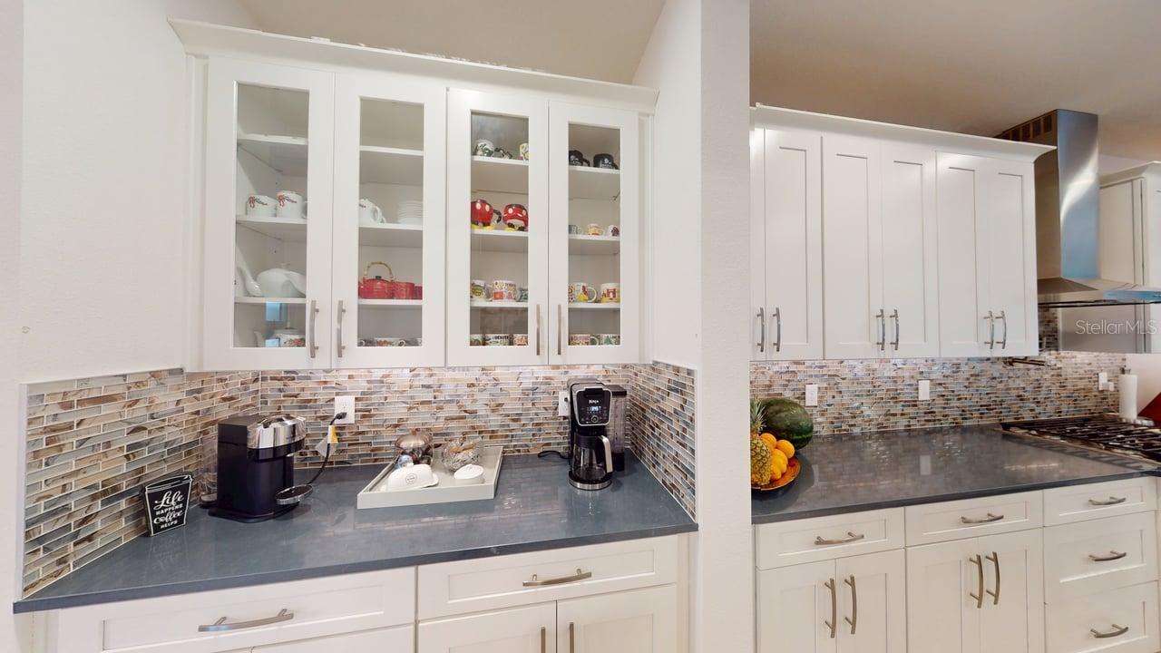 Luxurious 5-bedroom 5-bathroom home with TWO MASTER SUITES. The primary suite is on the second floor. The second suite is located on the first floor. 8 x 48 Ceramic tile with warm wood-look throughout the entire home. Massive Kitchen Island. Quartz Waterfall for Kitchen Island. Farmhouse Undermount Cast Iron Kitchen Sink. Butler’s Pantry area and Large Walk-in pantry between the Kitchen and Dining Room. Solid wood 42-inch cabinets with undermount lighting and soft-close doors and drawers. Pot filler above the gas cooktop. Stainless steel appliances include a built-in oven and microwave. Custom-built-in wine storage, wine and beer refrigerators under the stairs. Outside Covered Patio on first floor and covered second floor patio overlooking the enormous pool and spa. Surround sound setup with Ceiling Speakers both on the interior of the home. Outdoor kitchen with sink, refrigerator, cooktop, gas, and charcoal grills. Natural Gas Community with underground natural gas for outdoor grill, kitchen cooktop, pool and spa heater. Community Pool with restrooms, Recreation Area with kids' playground, dock, and Lake Access to Lake Avalon.