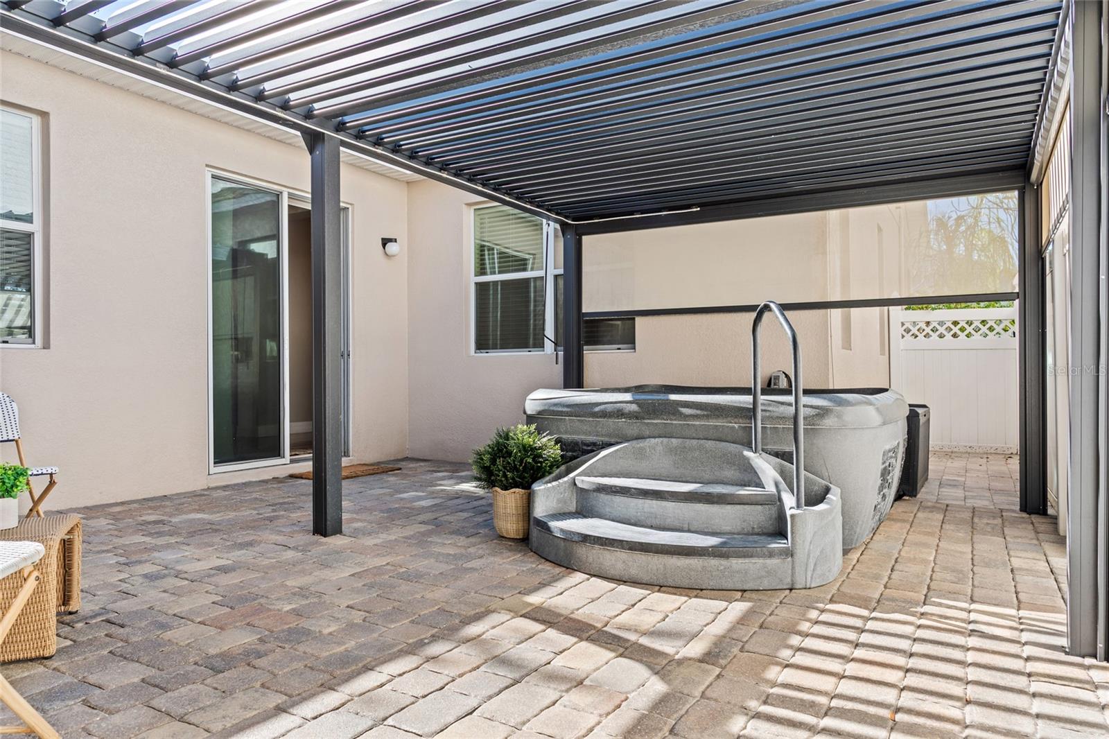 One-story 3BR/2BA home in desirable Summerlake featuring a fenced yard with paved patio. Recent upgrades include new landscaping, laminate tile flooring in the primary bedroom, updated kitchen and primary bath countertops, and new stainless appliances including refrigerator, microwave, and gas range. Backyard highlights a fully functioning hot tub (included) and enhanced pergola with lighting, drainage system, adjustable top, and reinforced concrete base. Lawn care included in HOA with access to resort-style amenities. Convenient to Disney, Winter Garden, shopping, dining, and top-rated schools.