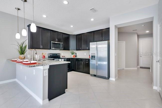 One or more photo(s) has been virtually staged. Welcome to upscale townhome living in the highly sought-after Lakeview Pointe community, located in the heart of Horizon West’s exciting Hamlin entertainment district just minutes from Disney, shopping, dining, and everyday conveniences. This impeccably maintained 3-bedroom, 3-full bath, move-in-ready 2017 townhome offers over 1,800 square feet of thoughtfully designed living space with an open-concept layout filled with natural light, featuring versatile tile throughout the first level and new neutral color carpet on the stairs and second level. The gourmet kitchen serves as the centerpiece with 42-inch rich wood cabinetry, granite countertops, stainless steel appliances, pendant lighting over the breakfast bar, and a spacious walk-in pantry, while the main living and dining areas are ideal for both entertaining and everyday life. Upstairs, you’ll find two en-suite primary retreats, with dual vanities, granite counters, and large walk-in closets. Watch Magic Kingdom fireworks from your own rear bedroom window. A conveniently located laundry room and small workspace complete the second level. A third bedroom on the main level offers flexibility for guests, multi-generational living, or a home office. Step outside to a private fully fenced pavered courtyard with a covered lighted walkway to the two-car garage, creating a charming outdoor space perfect for dining, entertaining, or relaxing. Lakeview Pointe residents enjoy resort-style amenities including a sparkling pool, splash pad, playground, fitness center, and even a dedicated Disney fireworks viewing area, all with exterior maintenance included for a low-maintenance, lock-and-leave lifestyle. Zoned for top-rated schools and offering easy access to major highways, this exceptional home delivers the perfect blend of luxury, convenience, and community—truly a lifestyle opportunity that checks every box and won’t last long!