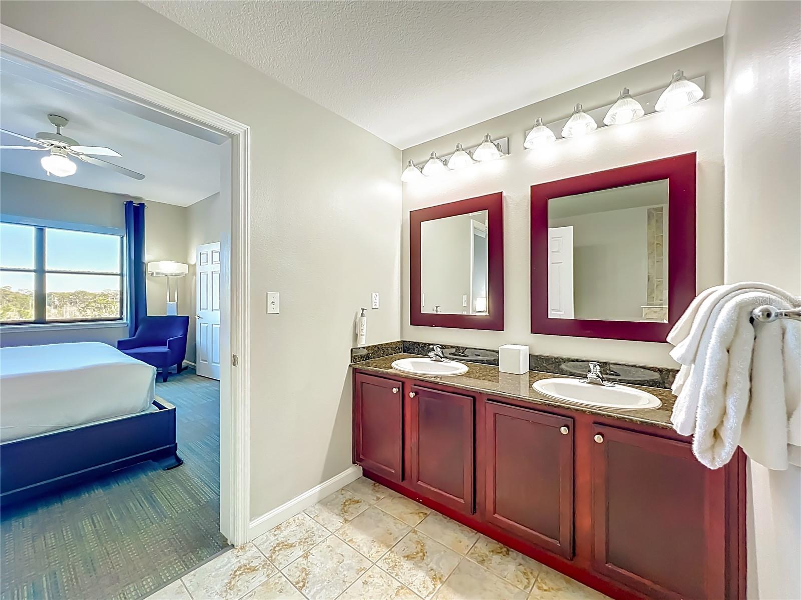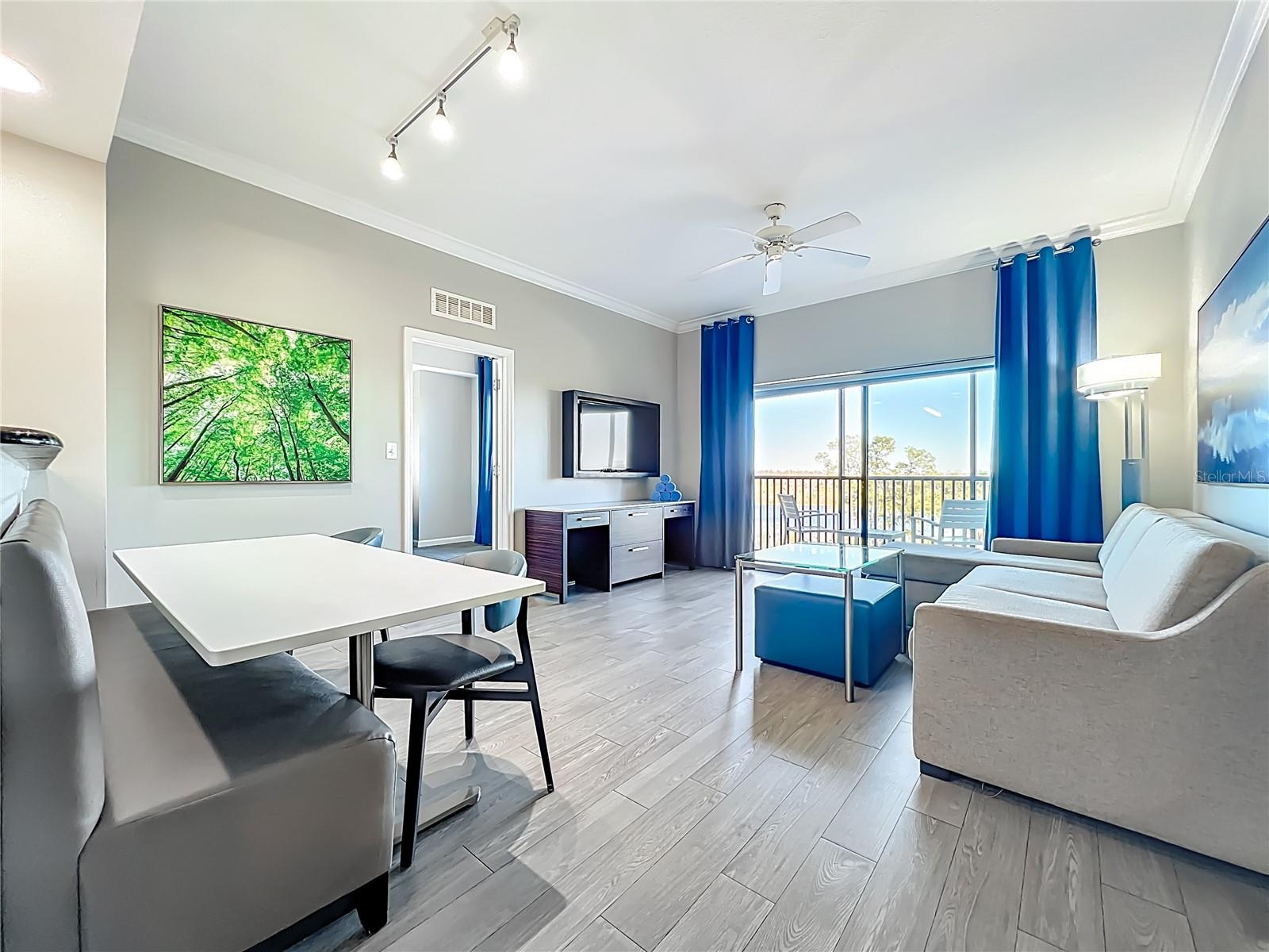 BEST VIEW IN THE ENTIRE RESORT! A rare opportunity to own a beautifully appointed 5th-floor, 2-bedroom, 2-bath luxury residence in the MAIN BUILDING at The Grove Resort & Water Park—offering breathtaking, UNOBSTRUCTED PANORAMIC VIEWS of LAKE AUSTIN and the SPRING POOLS. This exceptional condo features an open, light-filled floor plan and a private screened balcony, creating the perfect setting to unwind while taking in sunrise reflections over the lake or peaceful poolside evenings. Every detail has been thoughtfully designed for comfort and style, from modern furnishings and designer fixtures to a fully equipped kitchen with quartz countertops, solid wood cabinetry, and stainless steel appliances. A dedicated laundry room with full-size washer and dryer adds everyday convenience. Both bedrooms provide generous space for rest and rejuvenation, along with ample storage throughout the residence—ideal for extended stays or effortless hosting. Enjoy truly hands-free ownership with full onsite professional management, while still retaining the flexibility to personally use your condo for up to 179 days annually. Set within a beautifully maintained guard-gated, 106-acre resort community overlooking the serene 22-acre Lake Austin, The Grove Resort delivers a lifestyle few properties can match. Owners and guests enjoy access to the spectacular Safari Water Park featuring a Flow Rider surf simulator, dual water slides, a 695-foot lazy river, zero-entry pools, oversized hot tubs, and private cabanas. Additional amenities include water sports, fishing, swan paddle boats, a 24-hour fitness center, multiple on-site restaurants with indoor and outdoor dining, Flip Flop’s Family Fun Center, and a full Activity Center—truly something for everyone. Perfectly positioned minutes from Walt Disney World, with daily shuttle service to Disney, Universal Orlando, and SeaWorld, this hotel-condo offers the ultimate blend of vacation luxury and investment opportunity. Best of all, all utilities and resort amenities are included in the association fee, making ownership seamless and stress-free. Experience it for yourself through the immersive 3D walkthrough and discover why this remarkable residence—with the best view in the resort—is your gateway to elevated Orlando resort living.