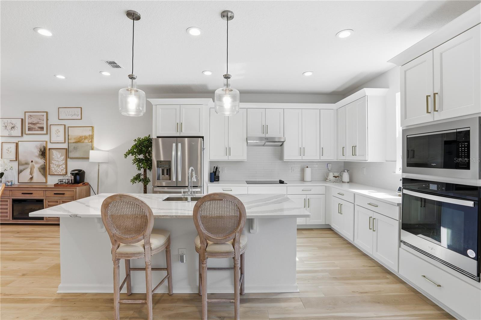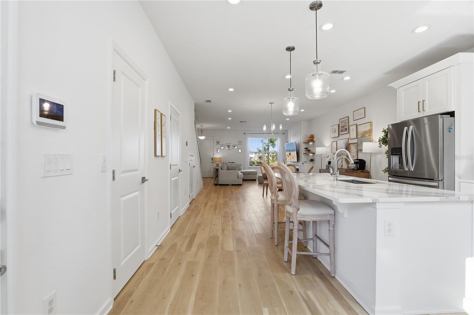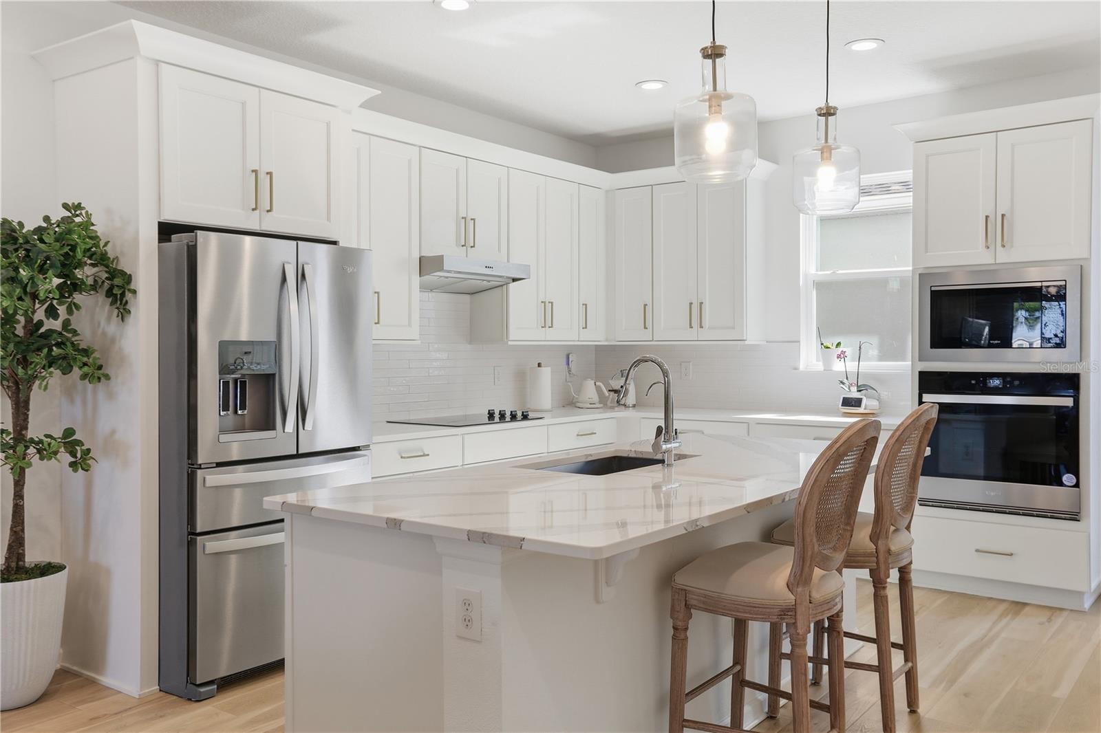 Welcome to this beautifully upgraded Toll Brothers townhome located in the highly desirable community of Westhaven at Ovation in Winter Garden. Built with the sought-after Kellogg Craftsman floor plan, this residence showcases extensive upgrades and modern finishes throughout. The open-concept floor plan offers a bright and spacious great room seamlessly flowing into the upgraded kitchen featuring quartz countertops, premium cabinetry, designer backsplash, luxury vinyl plank flooring, stainless steel Whirlpool appliances, and an oversized island perfect for entertaining. One of the standout features of this home is the private courtyard space located between the home and the garage, making it a perfect retreat to relax, entertain, or enjoy Florida’s beautiful year-round weather. This outdoor area adds valuable lifestyle flexibility and charm. Upstairs, the spacious primary bedroom offers a beautifully appointed bath with upgraded tile, quartz vanity tops, polished chrome fixtures, and a spacious walk-in shower. This home built in 2024 with two-story, reflects modern design and energy-efficient construction and blends modern elegance with functional living and thoughtfully designed indoor-outdoor flow. Located just minutes from Horizon West, Hamlin Town Center, top-rated schools, shopping, dining, and major highways.The water filtration system and jacuzzi spa are negotiable. This home is a must-see. Schedule your showing today.
