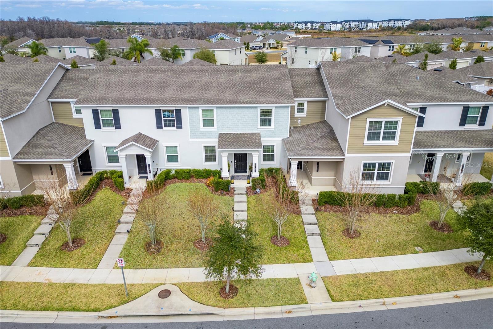 Impeccably maintained townhome in the highly desirable community of Storey Grove! Built in 2020, this beautifully cared-for 3-bedroom, 2.5-bath residence offers the perfect blend of style, comfort, and prime location. The open-concept first floor is designed for modern living and effortless entertaining, featuring tile flooring throughout the entire home, creating a clean, cohesive, and low-maintenance living environment. The spacious kitchen is a true highlight, offering abundant cabinetry, solid-surface countertops, stainless steel appliances, and a large center island that provides generous prep space and seating. The open layout allows the kitchen to flow seamlessly into the dining and living areas, making it ideal for gatherings and everyday living. Step outside to your privately fenced courtyard featuring a beautiful canopy, creating a shaded and inviting outdoor retreat perfect for relaxing or entertaining year-round. Upstairs, you’ll find three generous sized bedrooms and two full bathrooms. The primary suite includes a spacious walk-in closet and an elegant en-suite bath with dual vanities, offering both comfort and privacy. Ideally located just minutes from Walt Disney World, Disney Springs, Flamingo Crossings, major highways, shopping centers, restaurants, hospitals, and top-rated schools, this home delivers exceptional convenience in one of the most desirable areas near Orlando’s attractions. Whether you're searching for a primary residence or an investment opportunity, this property is must-see.