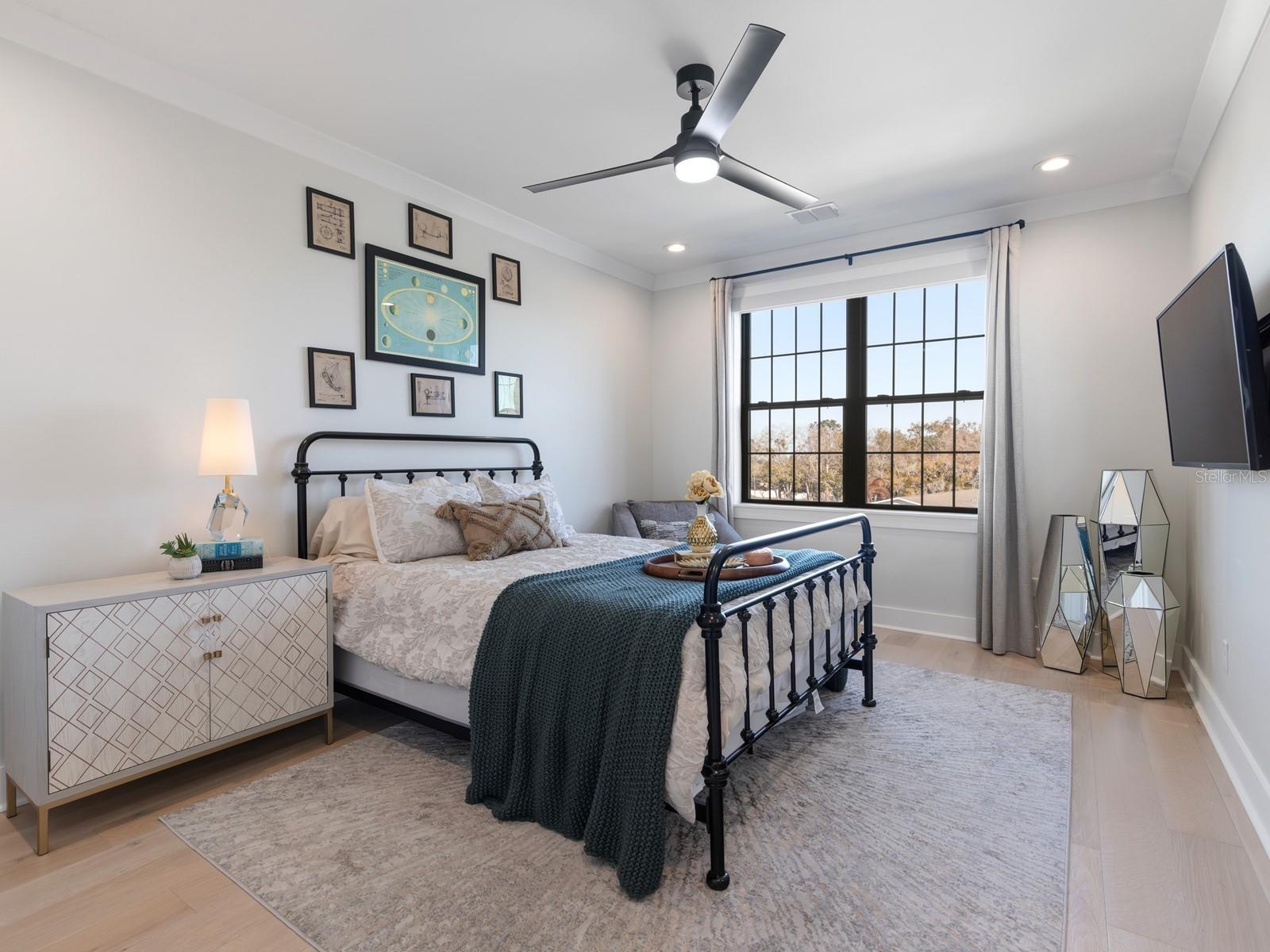 Welcome to 30 North Park, an exceptional townhome located in the heart of Historic Downtown Winter Garden — directly on the West Orange Trail and just steps from Plant Street Market, Crooked Can Brewery, local dining, shopping, and the weekly Farmer’s Market. This modern farmhouse-style residence offers four spacious bedrooms, each with a private en-suite bathroom and custom-fitted closets, providing comfort, privacy, and flexibility for guests, multigenerational living, or work-from-home needs. A first-floor bedroom serves as an ideal guest retreat, office, or flex space. The second level features an open-concept living area anchored by a designer kitchen complete with Bosch natural gas appliances, a large island, quartz countertops, farmhouse sink, artisan tile backsplash, and floor-to-ceiling windows showcasing views toward downtown and the West Orange Trail. A secondary bedroom with dramatic custom windows adds abundant natural light. On the third floor, dual primary suites offer spacious layouts, oversized windows, powered blinds, spa-inspired walk-in showers, and quartz-finished baths. Thoughtful upgrades throughout include warm wood flooring, patterned tile accents, modern black lighting fixtures, and extensive storage. Built with an STC soundproofing rating of 69, the home provides a quiet interior environment while remaining in one of Central Florida’s most vibrant walkable districts. Enjoy balcony views overlooking the trail and experience low-maintenance living with unmatched proximity to Historic Winter Garden’s amenities. Experience refined, walkable living in the heart of Winter Garden — schedule your private showing today.