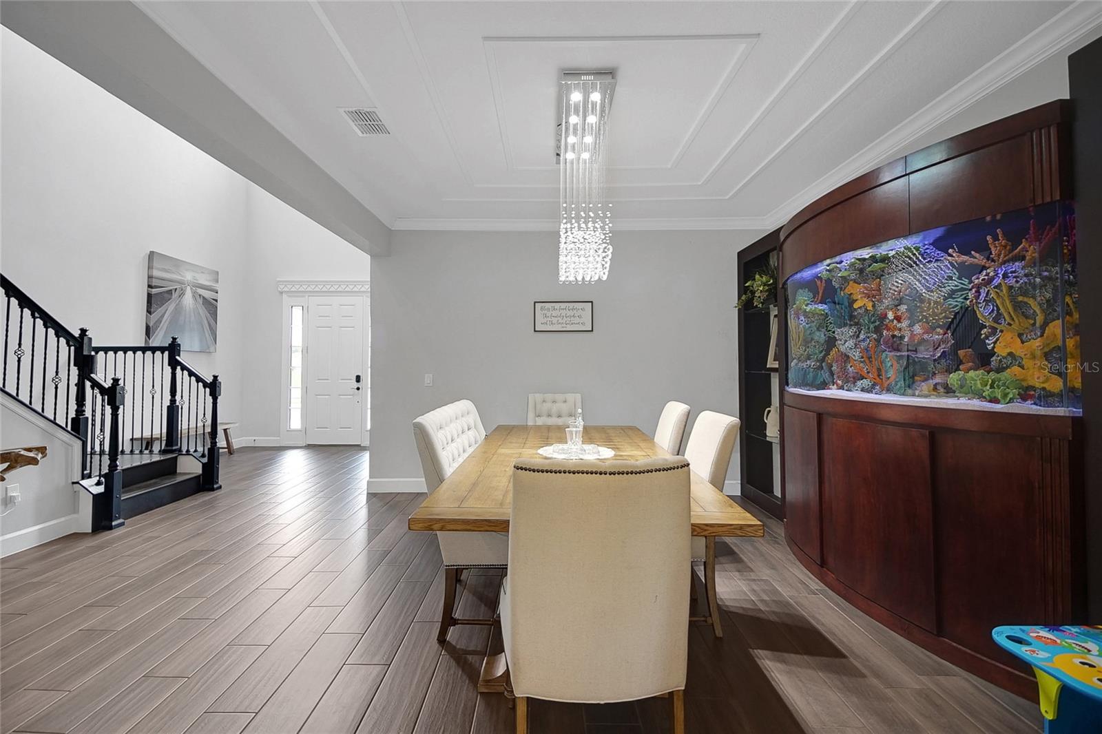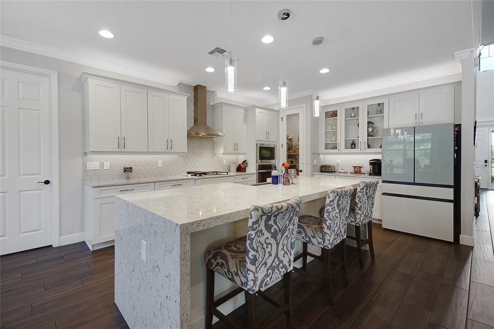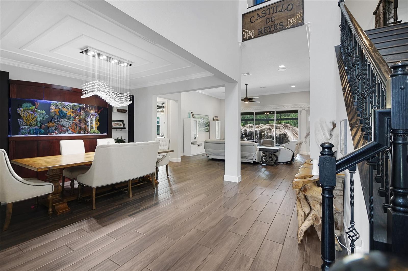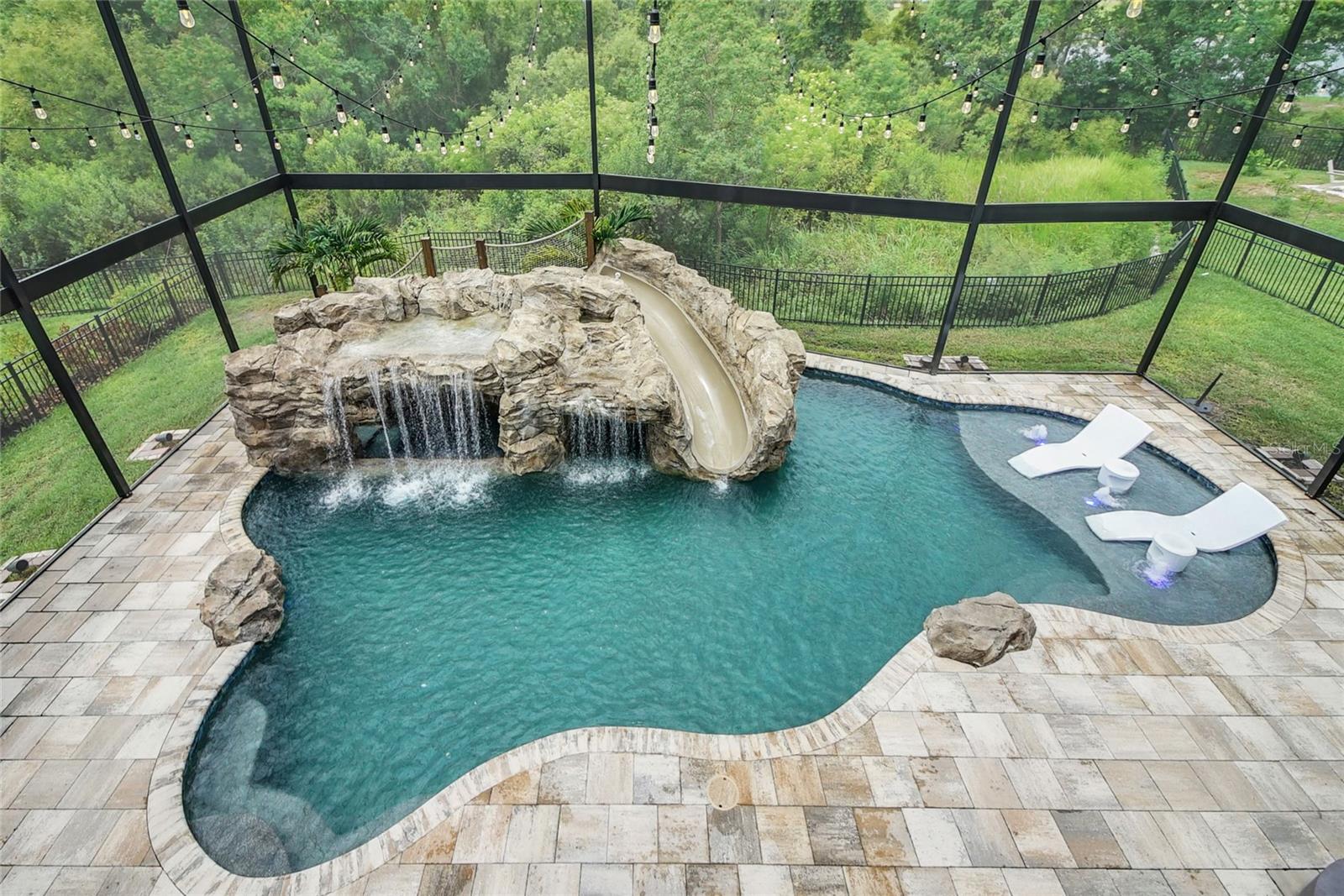 Welcome to this 5-bedroom, 4.5-bath home offering 4,030 sq ft of living space in the gated community of Tilden Place. Upon entry, you’re greeted by views of a grotto waterfall (2025) that conceals a private spa, creating a true backyard retreat. The open layout features granite countertops, a large waterfall-edge island, and glass backsplash in the kitchen, perfect for entertaining. The main floor includes the primary suite and a secondary bedroom with private en suite. Upstairs offers a spacious bonus room and three additional bedrooms, all with walk-in closets, including one with its own en suite. The garage is equipped with an electric EV charger for added convenience. Enjoy a resort-style pool with waterslide, mini lazy river, outdoor kitchen, and pool half bath, all enclosed within a panoramic lanai. With no rear neighbors and conservation views, this home offers added privacy while being conveniently located near Winter Garden shopping, SR 429, and Disney attractions. Schedule your showing today.