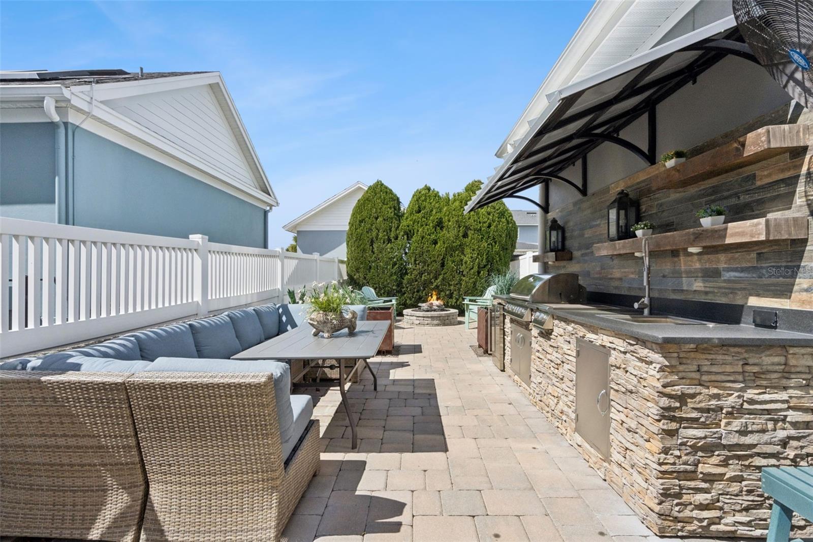 Perfectly positioned fronting one of Oakland Park’s picturesque green spaces, this exceptional home offers a rare opportunity to enjoy PARK-SIDE living in one of Winter Garden’s most celebrated communities. Oakland Park, a PARADE of HOMES award-winning neighborhood, is admired for its timeless architecture & inviting outdoor spaces that create a true sense of community. This beautifully designed Seaside floorplan blends classic charm with modern livability, offering 4 bedrooms, 3.5 baths, a STUDY, dining area, spacious loft, oversized garage, & FENCED yard. The primary suite is conveniently located on the main level, creating a peaceful retreat complete with a generous walk-in closet, a separate linen closet, & direct access to the laundry room, which has been enhanced with custom cabinetry for optimal storage & organization. Upstairs, the loft provides a versatile secondary living area—ideal for a media room or play space—accompanied by three additional bedrooms & two full baths, including one private en-suite. At the center of the home, the expansive kitchen is designed for both everyday living & effortless entertaining, enhanced with under cabinet lighting & tile backsplash. Abundant cabinetry & extensive counter space provide exceptional functionality, while the large island offers ample seating, making it the natural gathering place for family & guests alike. The adjoining dining area is equally impressive, featuring a dedicated buffet—perfect for hosting celebrations, holidays, or casual dinners. The home showcases rich WOOD flooring throughout the main living areas, adding warmth and sophistication, while soft carpeting in the bedrooms enhances comfort & tranquility. One of the home’s most captivating features is the inviting wraparound front porch, where French doors open to sweeping views of the beautifully maintained park. The home’s outdoor living continues in the screened rear porch, thoughtfully designed with retractable screens to maximize comfort & flexibility throughout the seasons. Beyond the porch, the backyard has been carefully curated as a private entertainment retreat. A paver patio anchors the space, complemented by a cozy FIRE-PIT, additional seating areas, & an outdoor kitchen featuring a built-in grill, mini fridge, & sink. Pet lovers will appreciate the dedicated dog area finished with low-maintenance artificial turf, creating a convenient & attractive space for four-legged family members. With its prime park-front location, versatile living spaces, & thoughtfully designed indoor-outdoor lifestyle, this home offers an exceptional blend of elegance, comfort, & community. Just a short GOLF CART ride away, you’ll find the charm and vibrancy of Historic Downtown Winter Garden, known for its award-winning restaurants, boutique shopping, outdoor dining, farmers market, & events. This is more than a home — it’s a lifestyle defined by luxury, walkability, connection, & the unmatched charm of Winter Garden living. This golf-cart-approved WATERFRONT community offers year-round activities, from golf cart parades to book clubs & social gatherings, making it an extraordinary place to call home. The community features parks, playgrounds, two pools, a clubhouse, dog park, & trails, including access to the 22 mile long WEST ORANGE TRAIL. Don’t miss this opportunity to live in one of the areas most sought-after neighborhoods, with easy access to interstate travel, shops, restaurants, golf courses, & world-renowned theme parks!