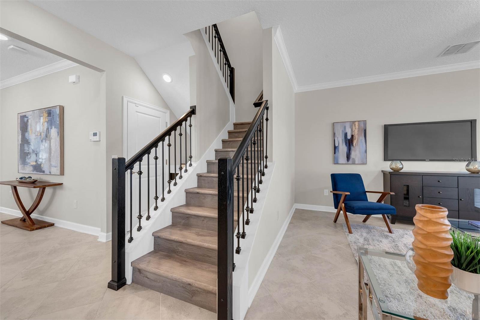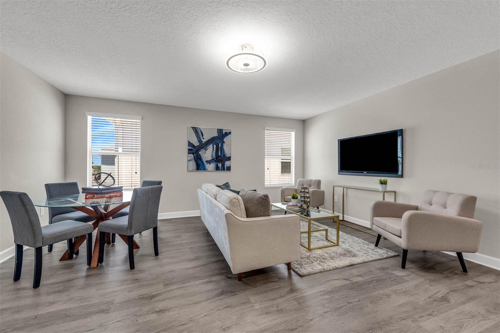 Welcome to your future home ! This beautiful home offers the components in a home for a modern lifestyle. Unique spaces such as the Tech Area and three car tandem garage provide both functionality and organization to a busy lifestyle. With 5 bedrooms and 3 baths, this plan is perfect for a family. The downstairs bedroom and bathroom combo are perfect for guests, multi-generational families or an office. The second story of this home boasts 4 bedrooms that surround an enormous game room perfect for fun family activities and movie night. band new Laminate wood flooring throughout the entire second floor. adding warmth and elegance to the space. step outside to a spacious backyard complete with a large covered screened patio . Perfect for relaxing or entertaining year around, This Ecosmart home has solar power to offset the electric bills and come fully connected with features like a Honeywell thermostat, Kevo lock and ring doorbell. Not to mention, remote blinds in the master and Lutron lights in the kitchen that are all verbally controlled through the Amazon Alexa. Don't Miss Out on this Innovative home found in the Heart of horizon's West just minutes to the Town Center Village! Surrounded by Panther Lake Golf Course, this community is designed with an active lifestyle in mind. With easy access to Walt Disney World, Universal Studios, Winter Garden Village, Orange County National Golf Center and much more, it’s easy to see why this area is growing fast! At Innovation at Panther View Manors, nature, beauty and community have come together to create a lifestyle unlike any other. don't miss out on this well-maintained home in a great location!