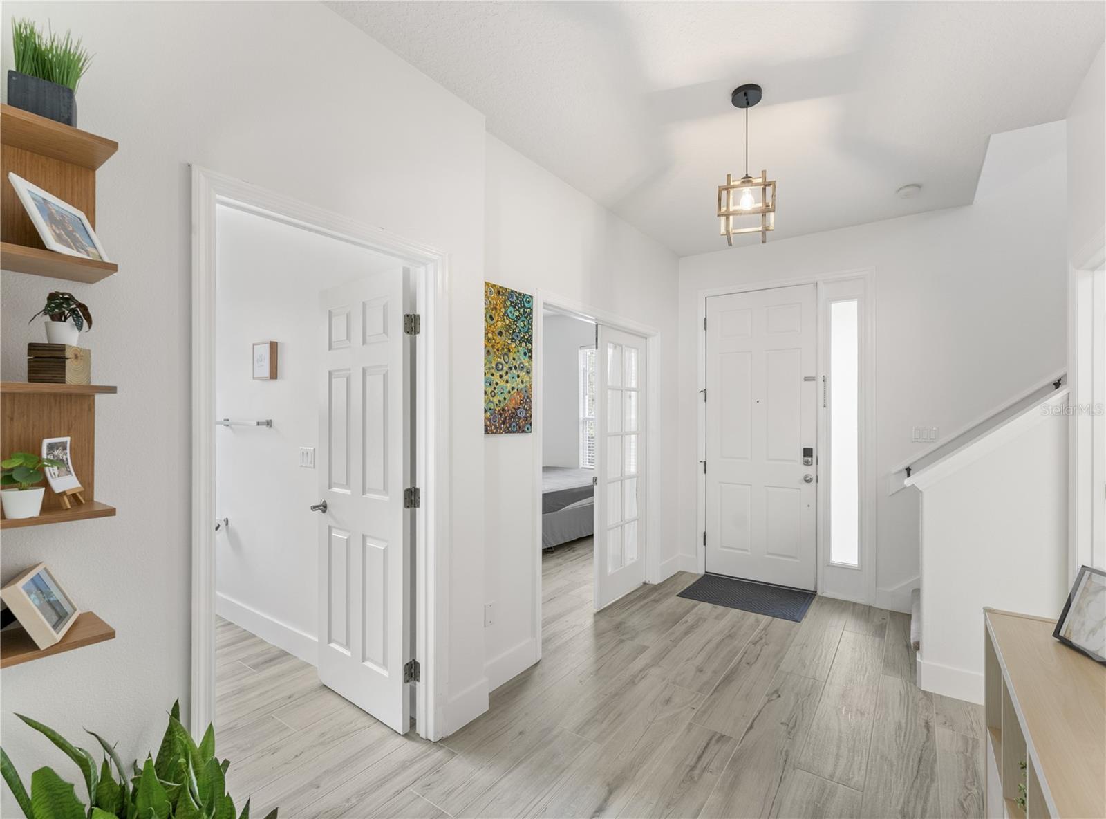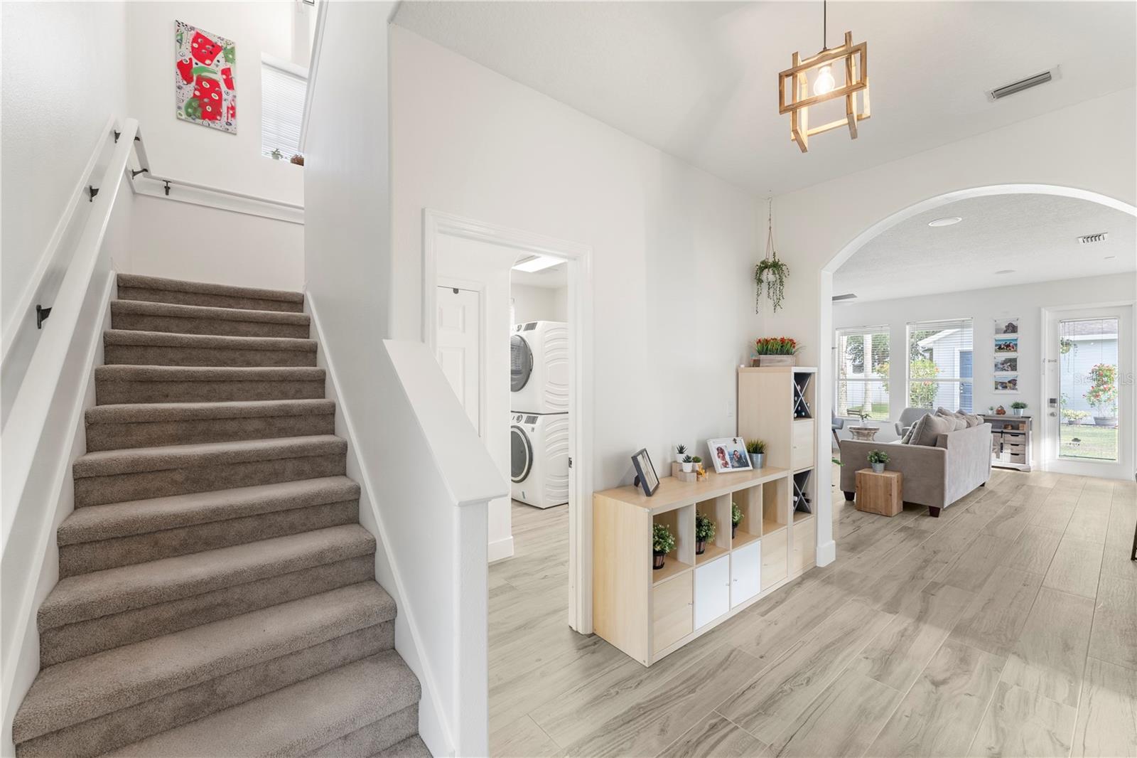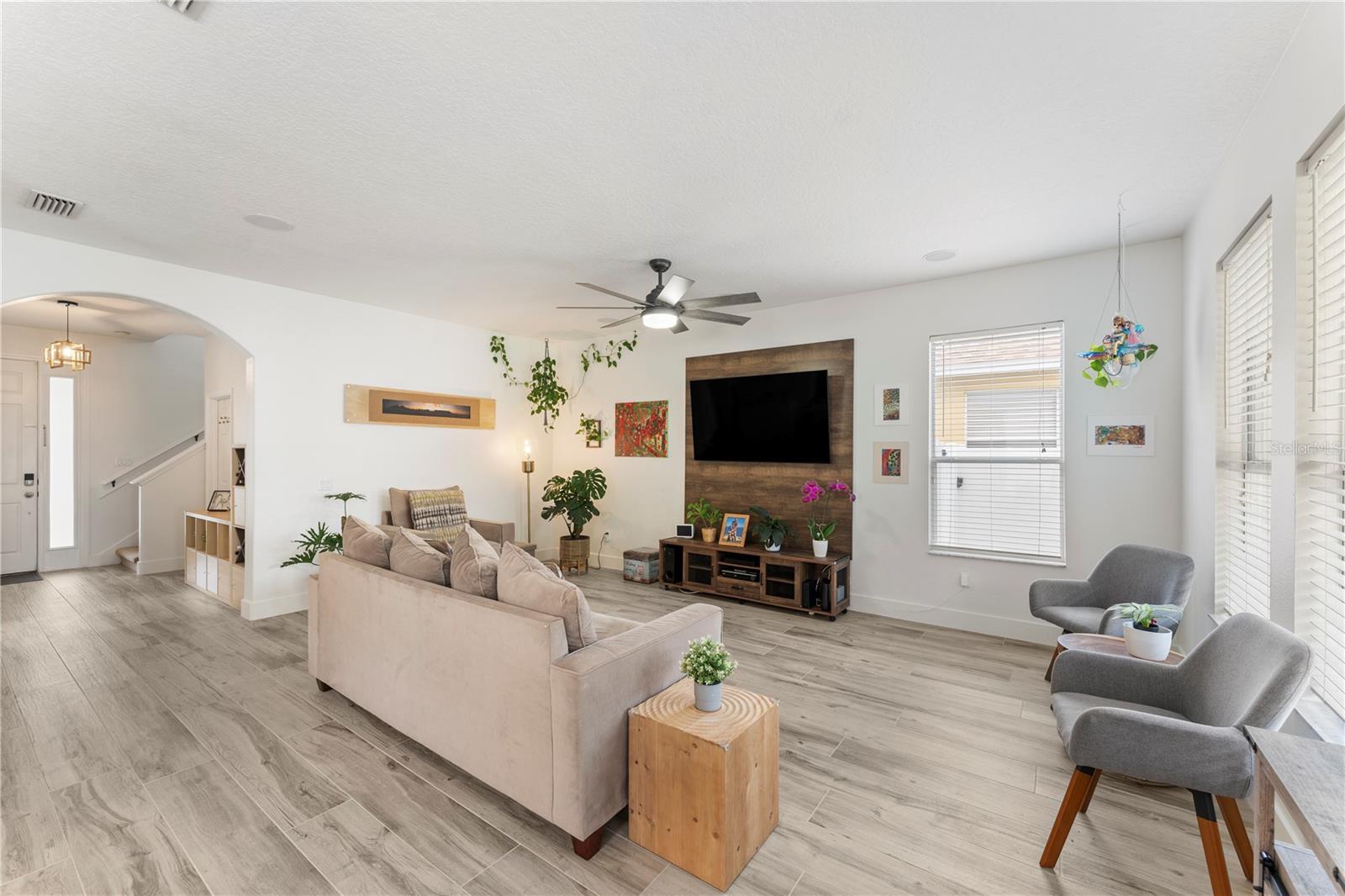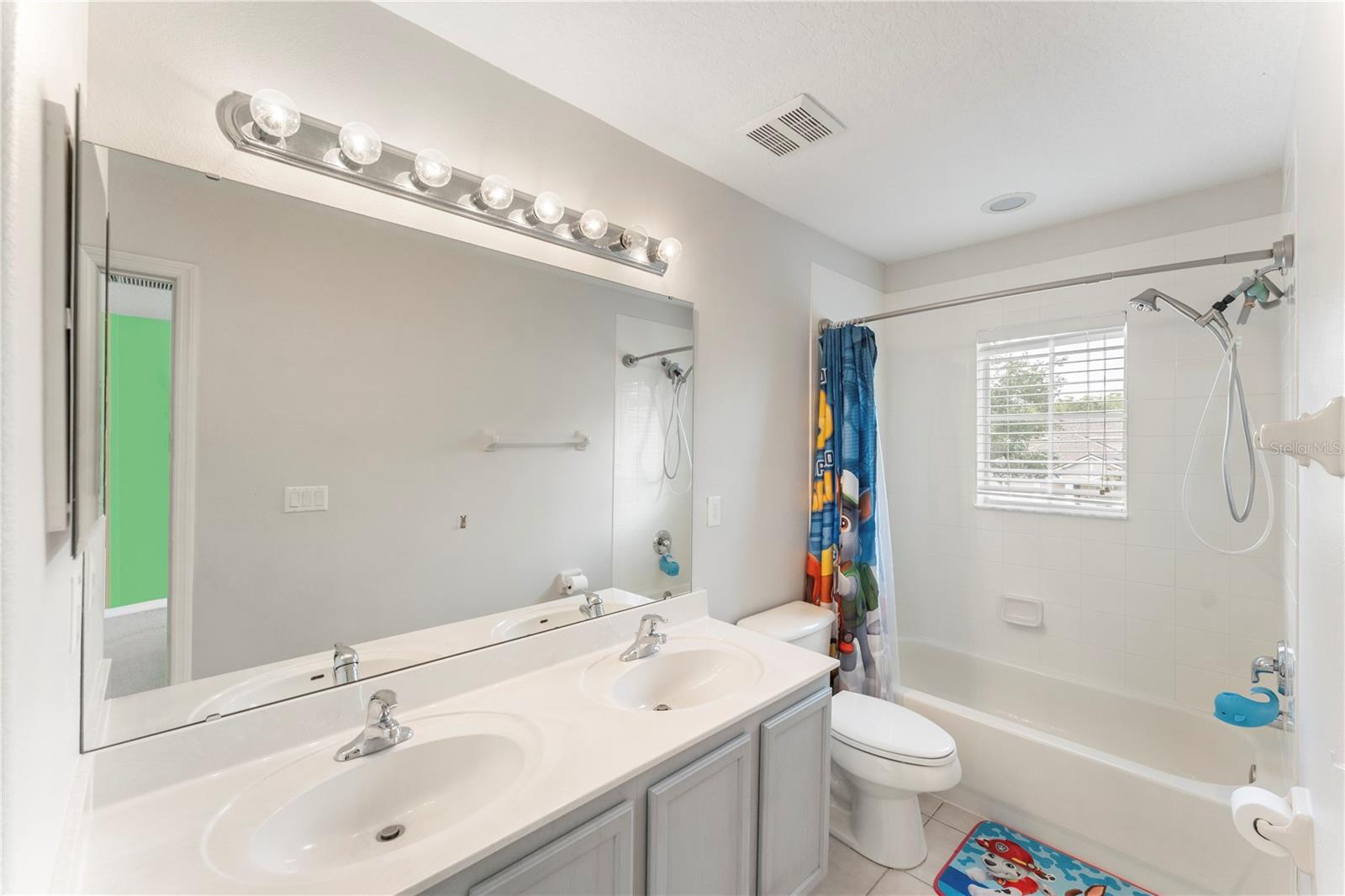 JUST GORGEOUS in the PRIME LOCATION of INDEPENDENCE SIGNATURE LAKES!- This 4 BEDROOMS x 3 FULL BATHROOMS family Home is next to a picturesque TRAIL, CLUB HOUSE, POOL, GYM and PLAYGROUND. It offers an open lay out, NEWLY RENOVATED tile floors throughout the main floor. The kitchen has a gas stove, pantry, breakfast bar and QUARTZ COUNTER TOPS The second floor lands on the FOYER to 3 of the bedrooms where the large primary one includes DUAL CLOSETS and primary bathroom with bathtub, shower and dual sinks. The other two bedrooms conveniently share a jack and Jill bathroom with two sinks. Favored with an AMAZING BACKYARD, large and well maintained. Featuring PALM TREES, MAGNOLIA trees and PAPAYA ones in the gardening portion of it flanking the DETACHED TWO CAR GARAGE. HEATING, WATER HEATER, STOVE and DRYER run on GAS!!! The HOA includes TV Cable, DISNEY+, Paramount and VIX Premium. The array of AMENITIES the community offers suits mostly every need from PLAYGROUNDS and DOG PARK, to TRAILS, POOLS, BOATING, BIKING, TENNIS courts, GYMS and so on. Do NOT MISS THE OPPORTUNITY TO SEE IT!