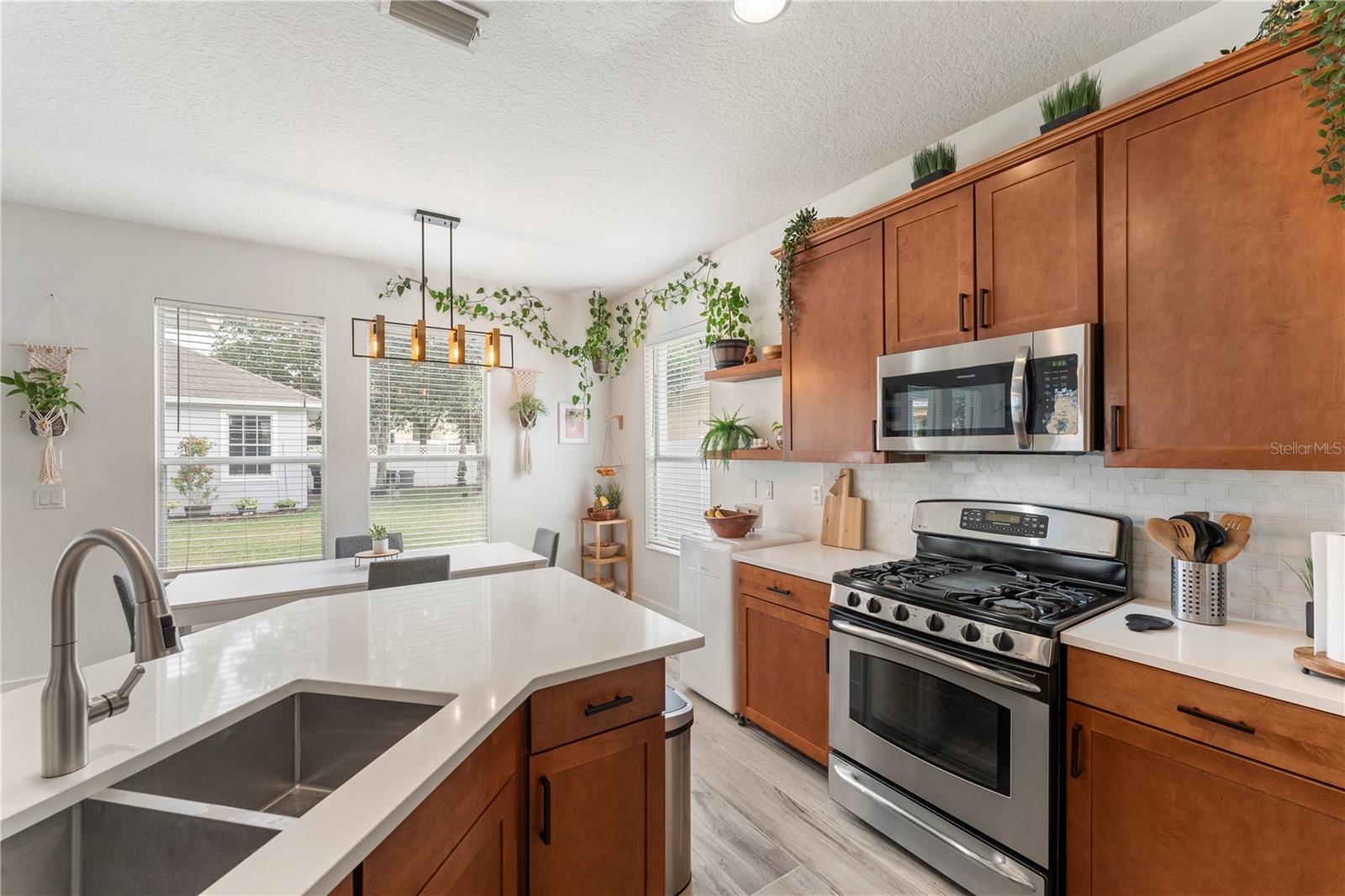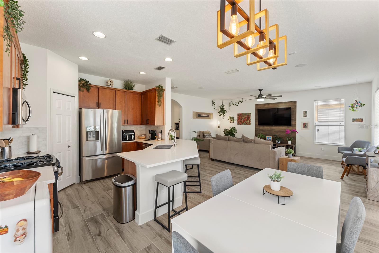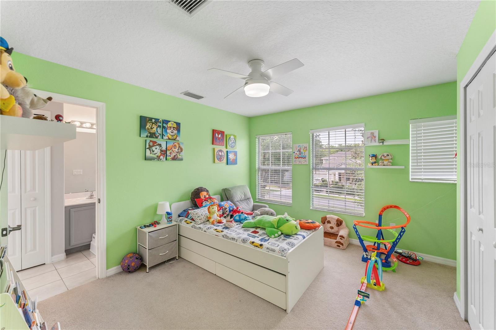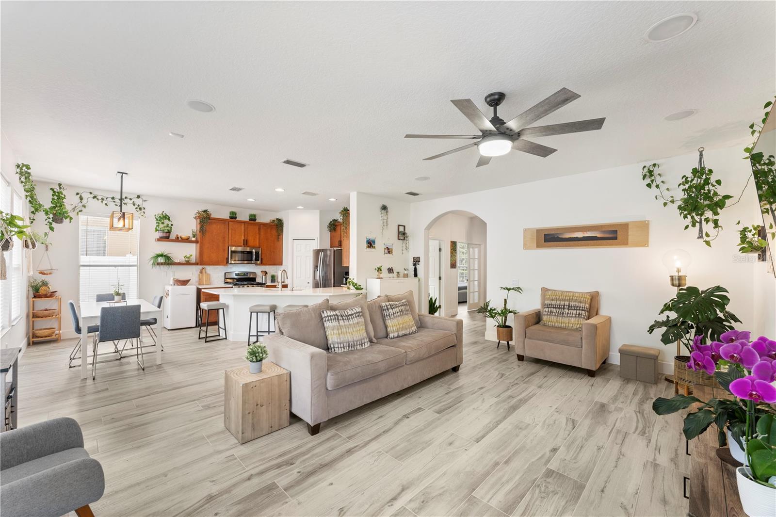 JUST GORGEOUS in the PRIME LOCATION of INDEPENDENCE SIGNATURE LAKES!- This 4 BEDROOMS x 3 FULL BATHROOMS family Home is next to a picturesque TRAIL, CLUB HOUSE, POOL, GYM and PLAYGROUND. It offers an open lay out, NEWLY RENOVATED tile floors throughout the main floor. The kitchen has a gas stove, pantry, breakfast bar and QUARTZ COUNTER TOPS The second floor lands on the FOYER to 3 of the bedrooms where the large primary one includes DUAL CLOSETS and primary bathroom with bathtub, shower and dual sinks. The other two bedrooms conveniently share a jack and Jill bathroom with two sinks. Favored with an AMAZING BACKYARD, large and well maintained. Featuring PALM TREES, MAGNOLIA trees and PAPAYA ones in the gardening portion of it flanking the DETACHED TWO CAR GARAGE. HEATING, WATER HEATER, STOVE and DRYER run on GAS!!! The HOA includes TV Cable, DISNEY+, Paramount and VIX Premium. The array of AMENITIES the community offers suits mostly every need from PLAYGROUNDS and DOG PARK, to TRAILS, POOLS, BOATING, BIKING, TENNIS courts, GYMS and so on. Do NOT MISS THE OPPORTUNITY TO SEE IT!