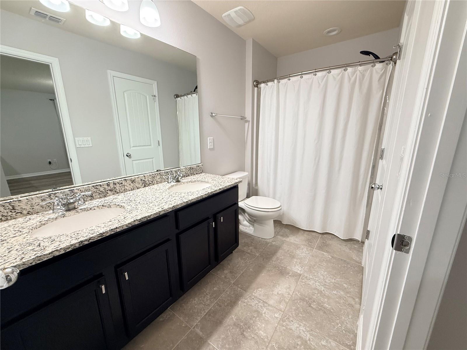 This amazing all concrete block construction single-family home features 3 bedrooms and 2.5 bathrooms optimizing living space with an open concept feel. A beautiful porch welcomes you to this home, as you enter the home you’ll find a downstairs powder room and laundry room complete with doors for privacy. The well-appointed kitchen overlooks the family room, dining room, and oversized outdoor lanai. The kitchen features granite countertops, stainless steel appliances, spacious walk-in pantry and an island with bar seating. Bedroom one is located off the living space in the back of the home for privacy. The bedroom one-bathroom impresses with double bowl vanities, toilet room with privacy door, shower/tub space, and spacious walk in closet. As we head up to the second floor, we are greeted with a loft area and two additional bedrooms. The upstairs bedrooms share a bathroom and linen closet for extra storage. This home features a two-car garage located at the rear of the home with drop zone as you enter the first floor. stairs and all second floor has laminate floors. home was recently painted outside. Lanai Screened. Cordale model home