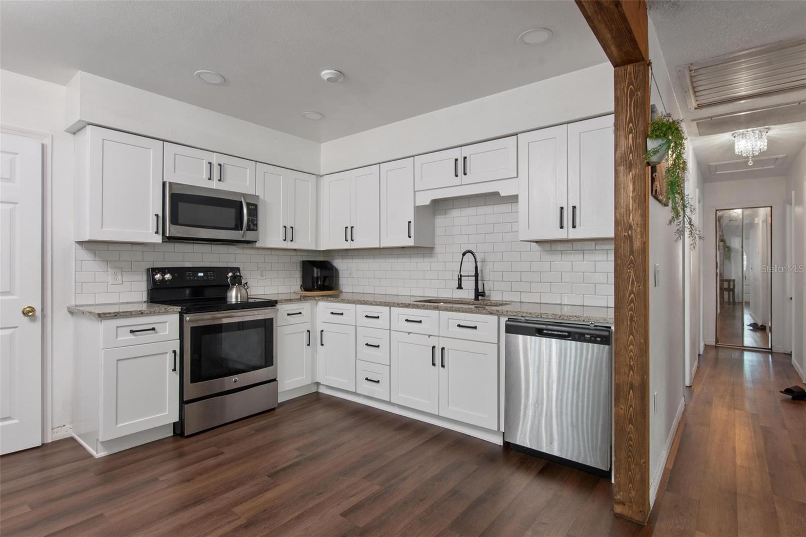 Nestled in a peaceful neighborhood, this beautifully updated four-bedroom, three-bath residence is a true gem that perfectly blends comfort and style. As you step inside, you’ll be greeted by an open concept floor plan that seamlessly connects the living, dining, and kitchen areas, creating a warm and inviting atmosphere perfect for entertaining and family gatherings. Elegant laminate wood flooring flows throughout the main living areas, while the bedrooms offer cozy carpeted spaces, providing a plush retreat for relaxation. The heart of this home is undeniably the stunning kitchen, where culinary dreams come alive! Featuring luxurious granite countertops, a chic subway tile backsplash, and a built-in hutch, this space is not only functional but also exudes modern charm. The cozy eating area invites family gatherings and casual meals alike. A unique highlight of this property is the mother-in-law suite, complete with a full kitchen, bathroom, private entrance and it's own privately fenced backyard. This versatile space is perfect for guests, extended family, or even as a potential rental opportunity, offering the perfect blend of independence and comfort. In addition, peace of mind comes from knowing that a brand new electrical panel has been installed, ensuring safety and efficiency throughout the home. Step outside to your private backyard oasis, fully fenced and adorned with mature trees that provide both shade and serenity. The expansive screened porch is the ideal spot to enjoy morning coffee or evening sunsets, while the spacious storage shed offers ample space for all your outdoor essentials. Don’t miss your chance to own this captivating home that promises comfort, convenience, and a touch of luxury. Schedule your private showing today and envision your life in this exceptional property!