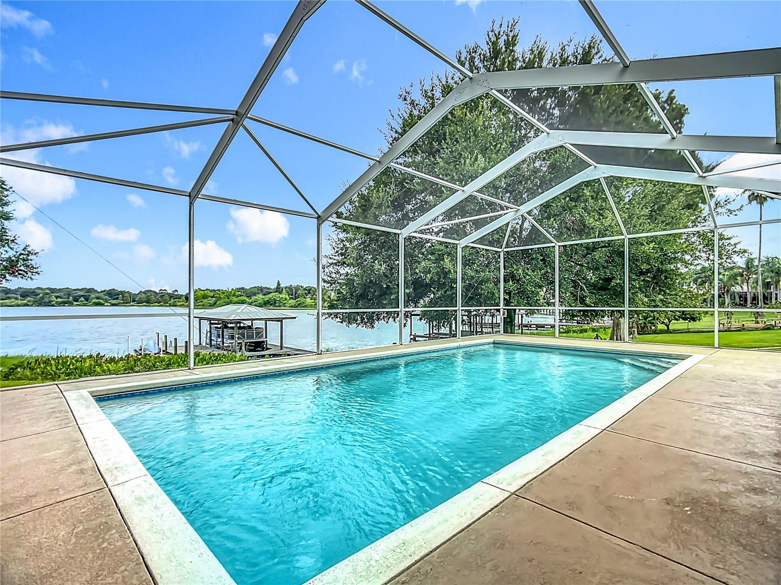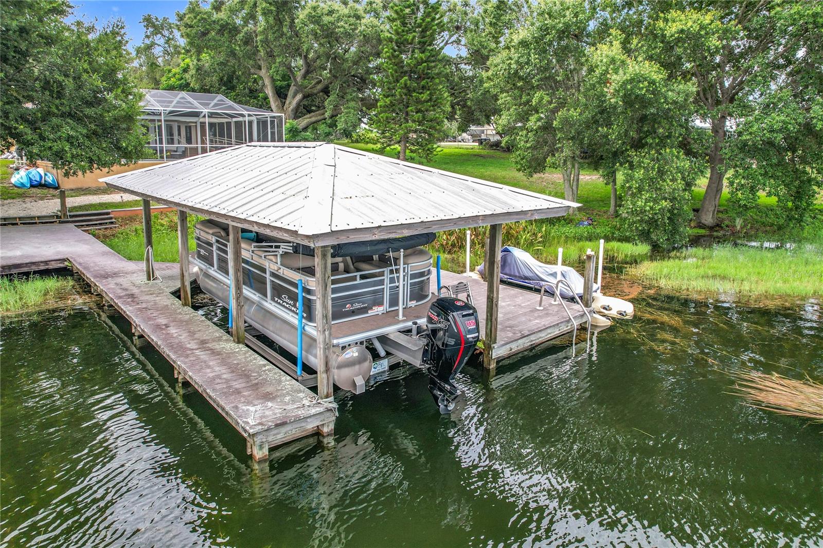 CHAIN OF LAKES POOL HOME WITH A BOAT DOCK AND LIFT ON LAKE ROY! Owners are motivated! This home with 2 master suites is better than new! So many upgrades! Recently the home has undergone extensive updates, including: New kitchen with custom cabinetry, modern sink and new disposal, new appliances and granite counters, Both ensuite baths beautifully refreshed, New HVAC system and ductwork, New 1,000-gallon septic tank and five-chamber drain field, Full PEX re-piping throughout, French drain across the full width of the driveway, New flooring, fresh paint, and updated trim throughout, New jet ski dock, new boat lift motor and cradle for a pontoon boat, Refreshed pool system for effortless maintenance Plus so much more! Welcome to your lakeside sanctuary in the heart of Winter Haven. This beautifully updated, move-in ready home blends the charm of its heritage with the modern features and peace of mind today's homeowners expect. Perfectly positioned on the desirable South Chain of Lakes—and not in a flood zone—this single-level home offers serene water views through expansive windows and easy, everyday luxury in every corner. Every room in this home is thoughtfully designed and purpose-driven: The primary master suite is quietly tucked away for maximum privacy and tranquility. A second master suite features its own en-suite bath, walk-in closet, and private access to the pool area—ideal for guests or extended family. The outdoor shower near the pool adds convenience and a resort-like touch. At the center of the home, the spacious living room is made for entertaining, complete with a real wood-burning fireplace and six sets of back doors that open to the lanai, creating seamless indoor-outdoor flow. The kitchen is as functional as it is beautiful, with custom cabinetry, solid surface counters, a new modern sink, dishwasher, disposal, and refrigerator—a dream for any home chef. The sunroom, surrounded by windows, offers daily, year-round views of the lake and pool—providing the kind of peace and beauty only found in Central Florida. But this home doesn’t just impress inside. Step down into your completely private courtyard, a hidden oasis framed by swaying palm trees—ideal for quiet sunbathing or peaceful reflection. A thoughtfully designed walkway connects the courtyard to the front door, offering a grand yet intimate entry. The property also includes two separate garages (offering three-car storage) plus a dedicated carport—ample space for vehicles, lake toys, and more. This is more than a home—it’s a private retreat, a lakeside lifestyle, and a rare opportunity all in one. Come experience why this one-of-a-kind Winter Haven property is exactly why we choose to live in Florida. We highly recommend scheduling tours after 8:00 PM to fully take in the breathtaking sunset, best experienced from the tranquil elegance of the poolside retreat.