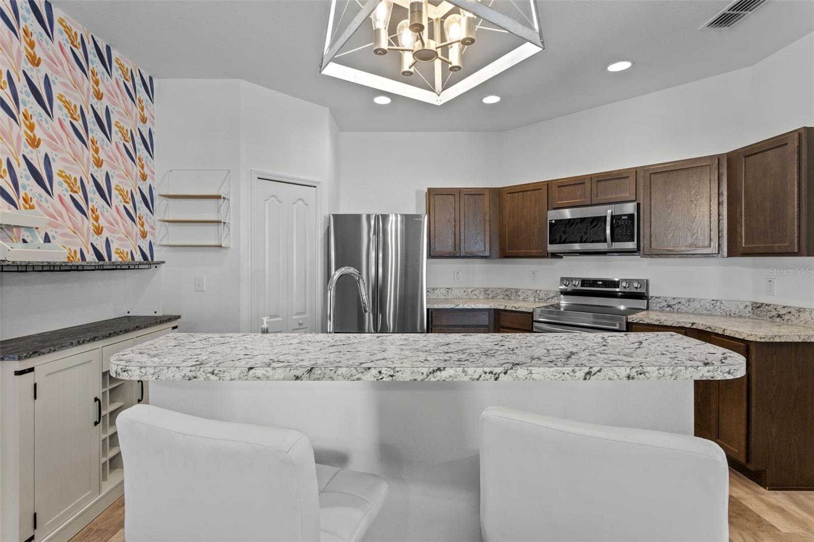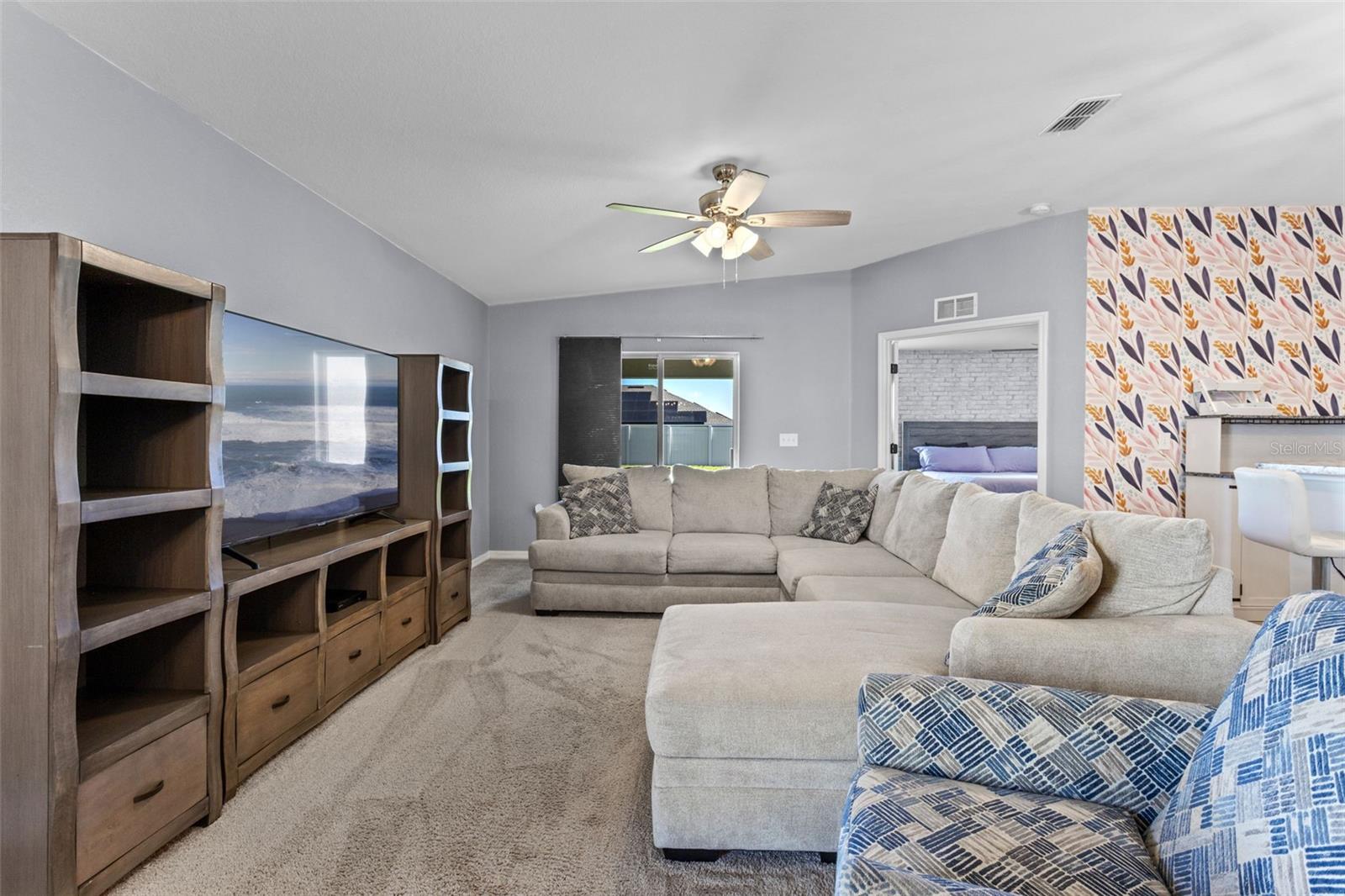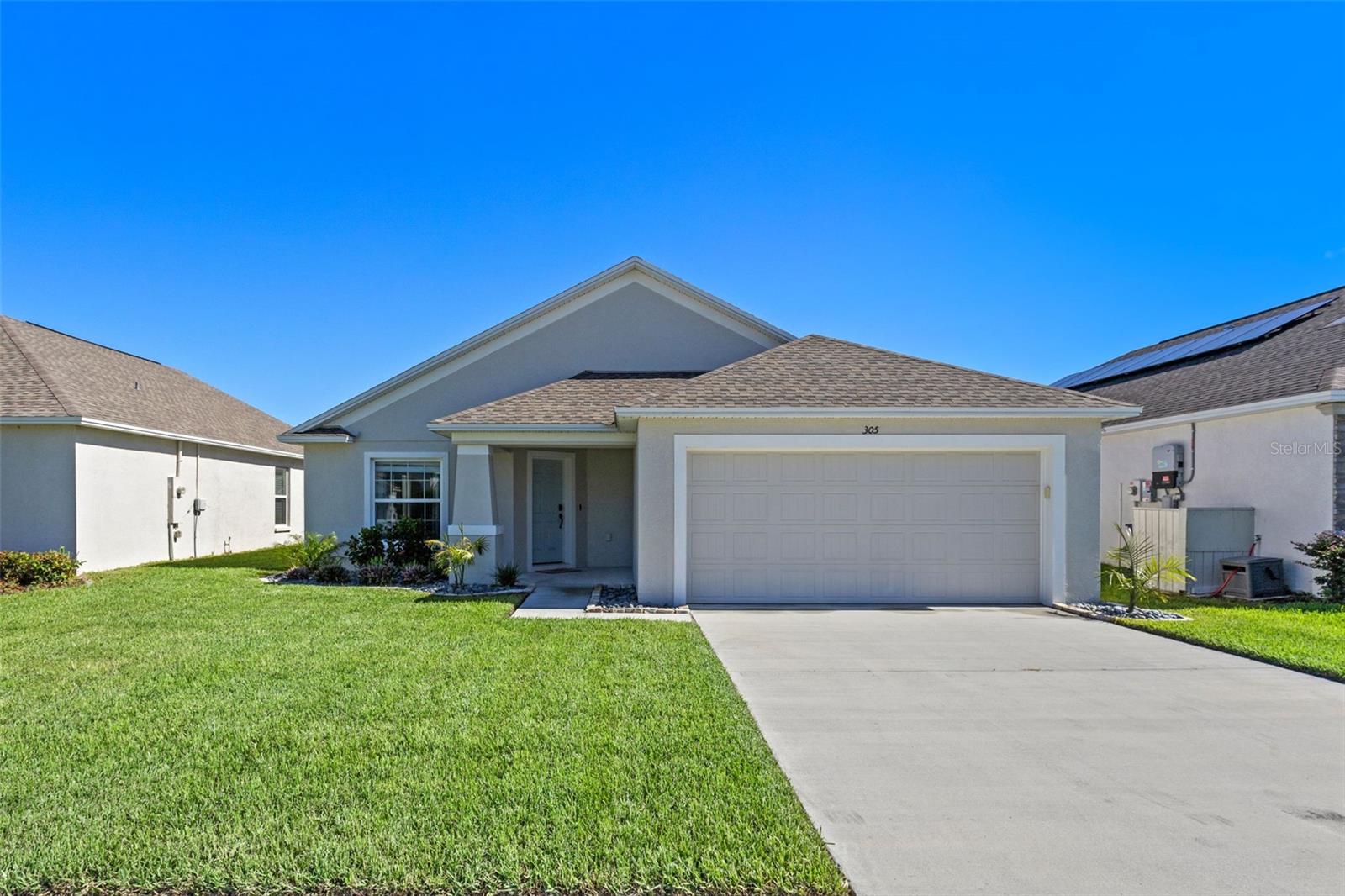 Back on the market due to previous buyer’s financing falling through – great opportunity for you! Welcome to this well-maintained 3-bedroom, 2-bathroom home located in a gated, waterfront community with exclusive access to Lake Rochelle. Residents enjoy a private dock, scenic walking trails, and a community playground. No CDD fees and low HOA dues make this neighborhood even more desirable. This thoughtfully designed home features a bright, open-concept living and dining area ideal for everyday living and entertaining. The modern kitchen offers rich hardwood cabinetry, a large center island, breakfast bar, and plenty of counter space. A separate laundry room adds convenience. The primary suite includes an ensuite bath with a spacious, tiled walk-in shower, dual vanity, and an oversized walk-in closet with built-in organization. Enjoy outdoor living on the covered patio, perfect for relaxing or hosting gatherings, with ample room to add a pool if desired. Solar panels are included to help reduce energy costs. Conveniently located near shopping, grocery stores, and medical facilities, this home offers easy access to Historic Downtown Winter Haven (10 minutes), LEGOLAND (25 minutes), Walt Disney World (35 minutes), Universal Studios (45 minutes), Orlando International Airport (1 hour), Tampa International Airport (1 hour 15 minutes), and Gulf Coast beaches (1.5 hours). Don’t miss this opportunity to own a home in a lake-access community with great amenities. Schedule your private showing today!