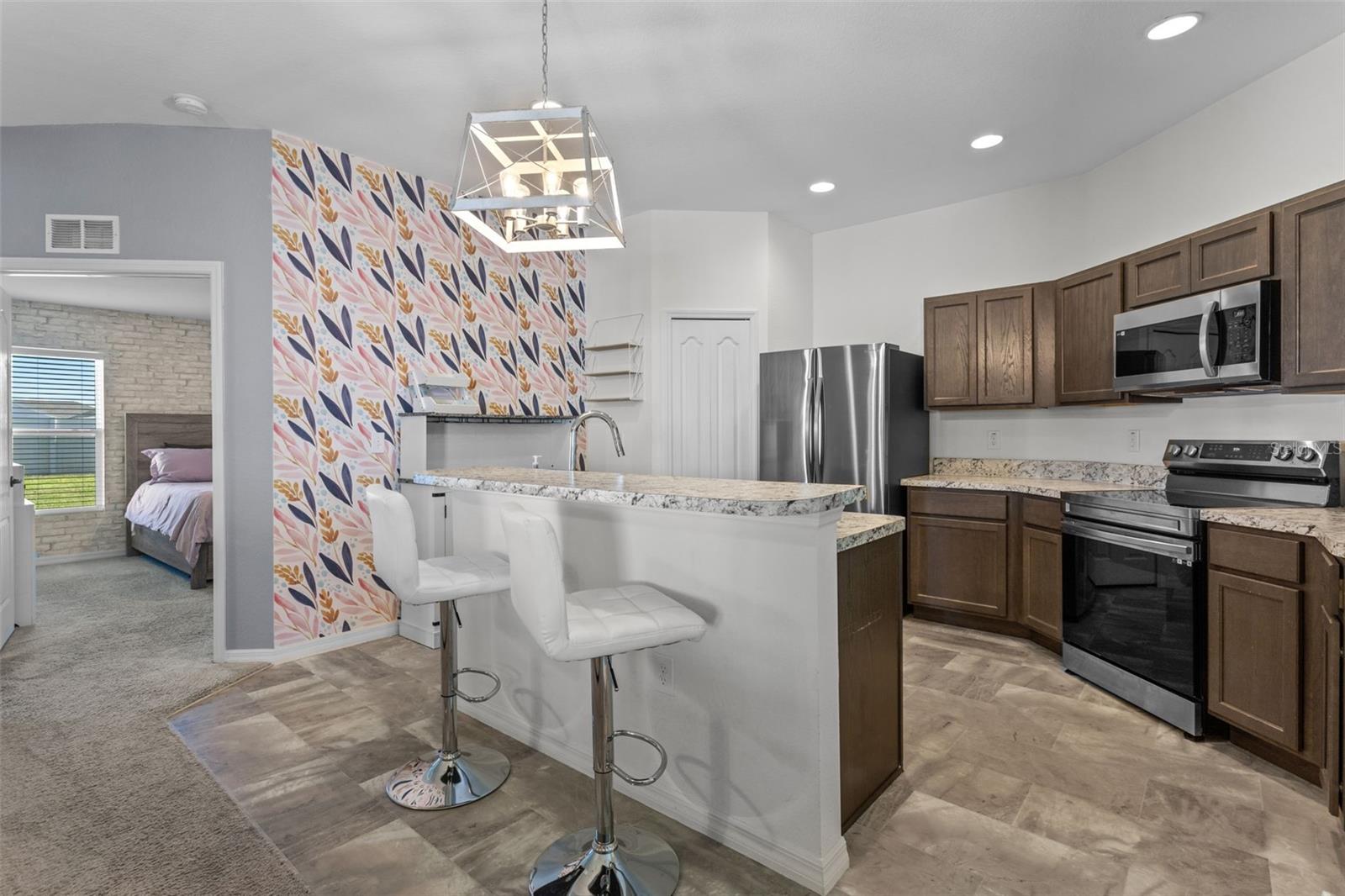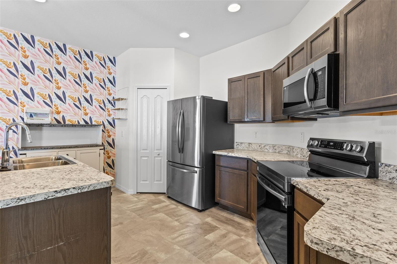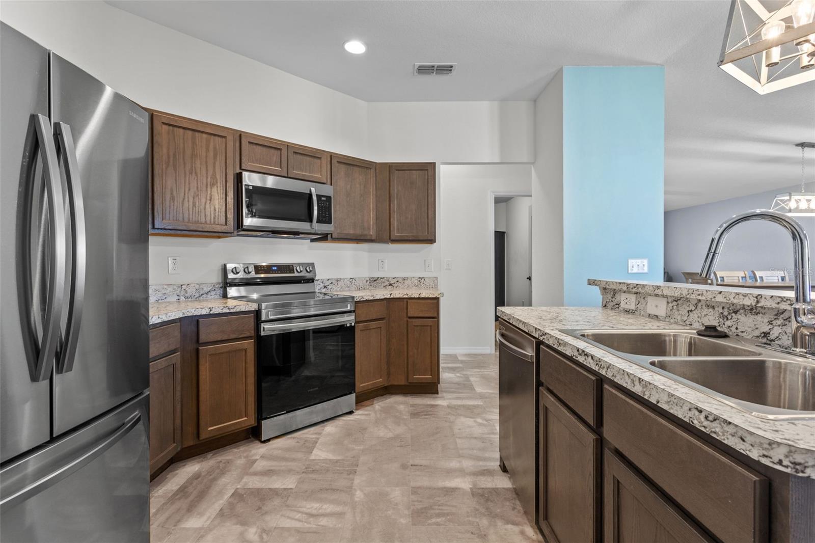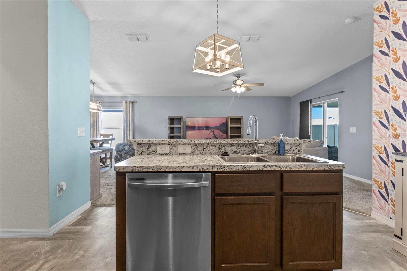 Back on the market due to previous buyer’s financing falling through – great opportunity for you! Welcome to this well-maintained 3-bedroom, 2-bathroom home located in a gated, waterfront community with exclusive access to Lake Rochelle. Residents enjoy a private dock, scenic walking trails, and a community playground. No CDD fees and low HOA dues make this neighborhood even more desirable. This thoughtfully designed home features a bright, open-concept living and dining area ideal for everyday living and entertaining. The modern kitchen offers rich hardwood cabinetry, a large center island, breakfast bar, and plenty of counter space. A separate laundry room adds convenience. The primary suite includes an ensuite bath with a spacious, tiled walk-in shower, dual vanity, and an oversized walk-in closet with built-in organization. Enjoy outdoor living on the covered patio, perfect for relaxing or hosting gatherings, with ample room to add a pool if desired. Solar panels are included to help reduce energy costs. Conveniently located near shopping, grocery stores, and medical facilities, this home offers easy access to Historic Downtown Winter Haven (10 minutes), LEGOLAND (25 minutes), Walt Disney World (35 minutes), Universal Studios (45 minutes), Orlando International Airport (1 hour), Tampa International Airport (1 hour 15 minutes), and Gulf Coast beaches (1.5 hours). Don’t miss this opportunity to own a home in a lake-access community with great amenities. Schedule your private showing today!