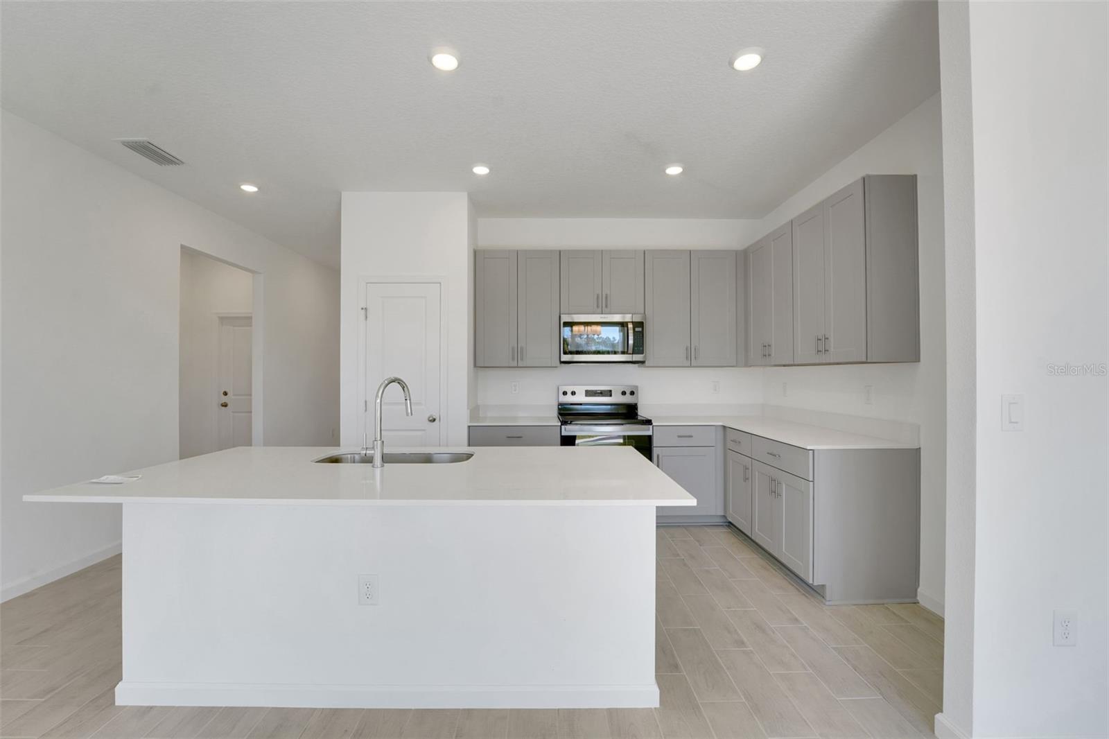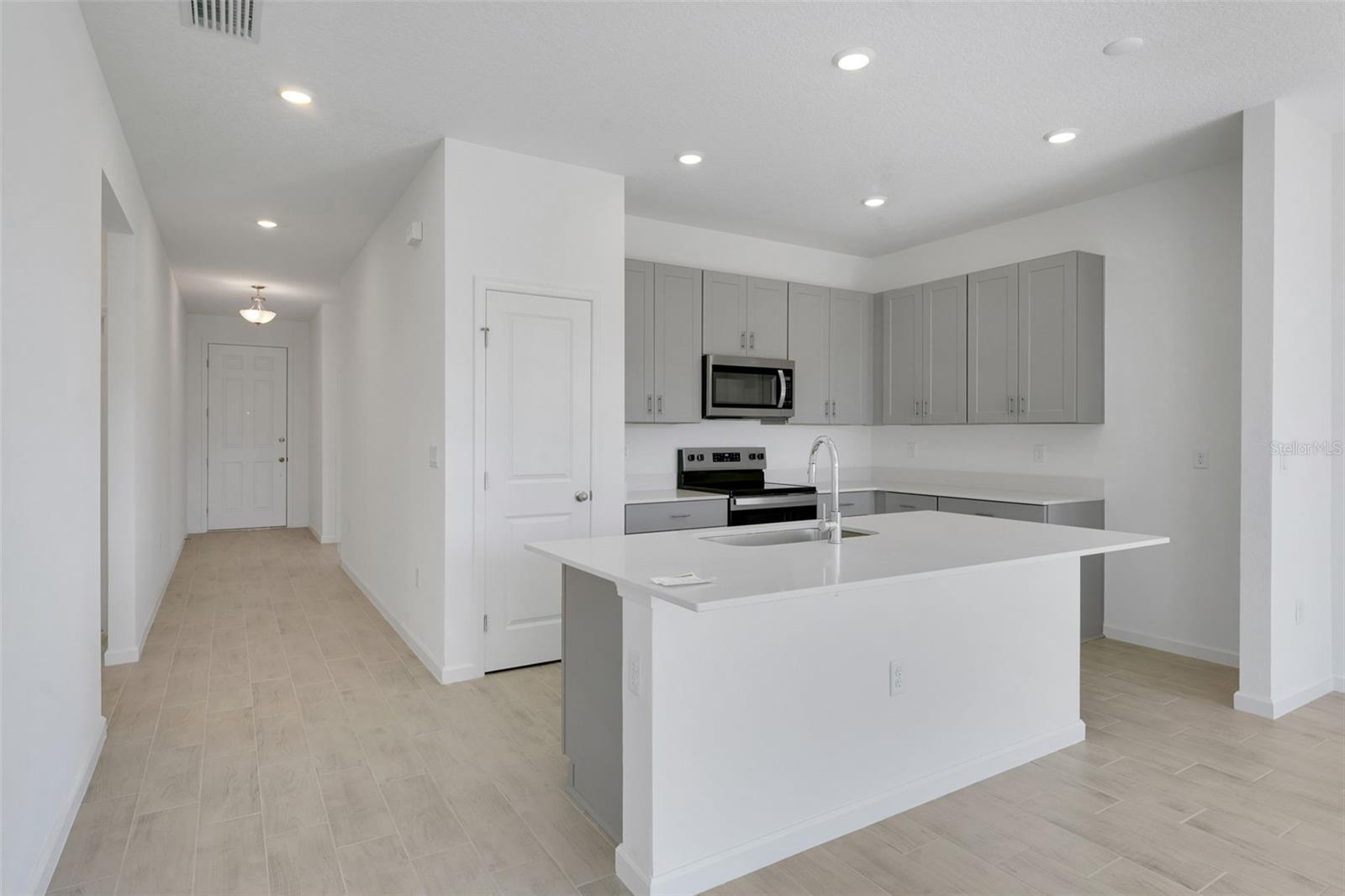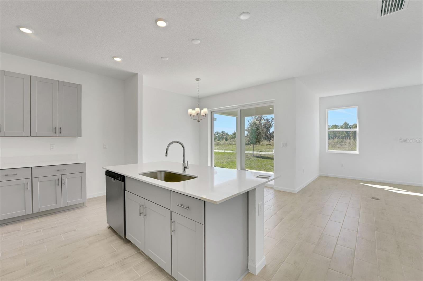 Welcome to this stunning Dream Finders Bradley floorplan, located in the highly sought-after community of Willowbrook near a beautiful golf course in Winter Haven, FL. This spacious 4-bedroom, 2-bath home offers 1,589 square feet of living space and boasts excellent curb appeal due to its impressive elevation. Inside, you'll find gorgeous Gray cabinets complemented by sleek quartz countertops in the kitchen, creating a modern, bright atmosphere. Tile flooring runs throughout the wet and common areas, offering durability and easy maintenance. The open layout is perfect for family gatherings and entertaining guests.