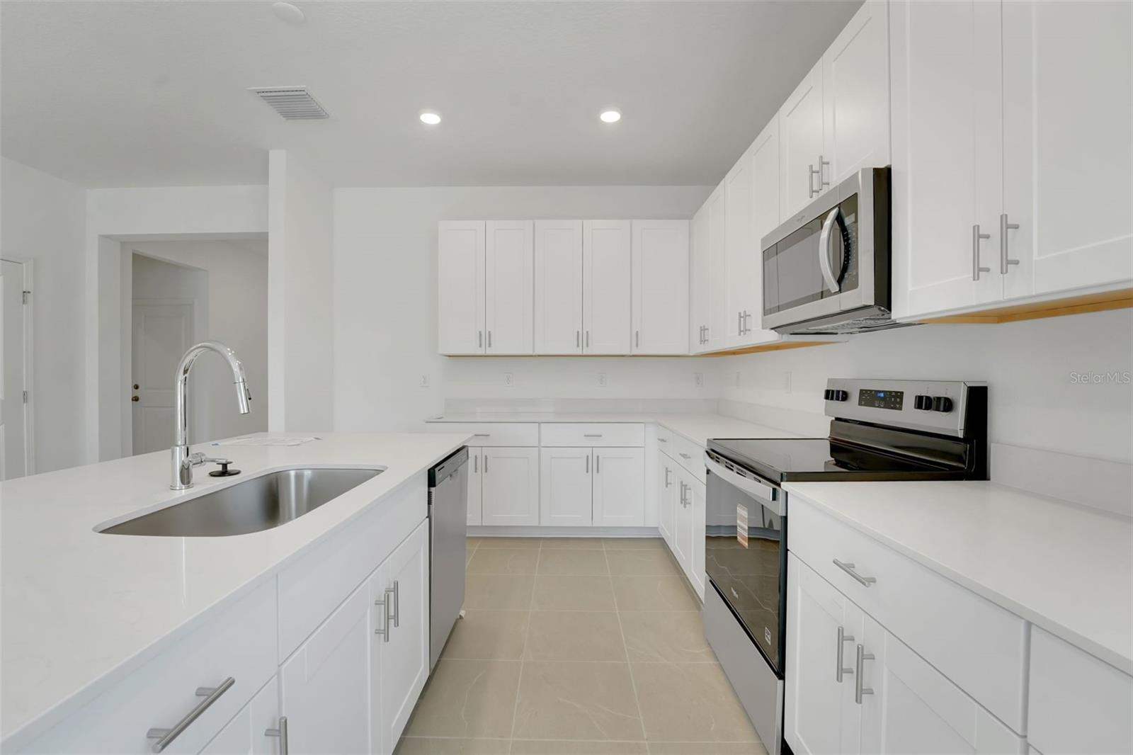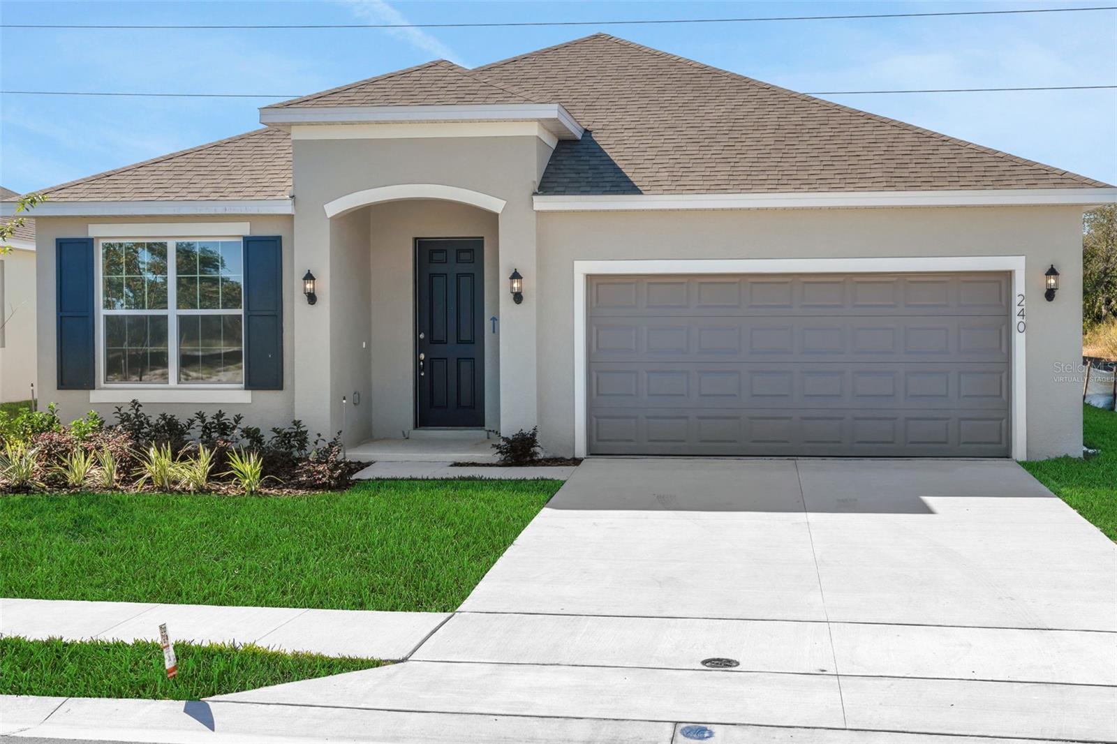 One or more photo(s) has been virtually staged. Under Construction. Welcome to this stunning Dream Finders Poinciana floorplan, located in the highly sought-after community of Willowbrook near a beautiful golf course in Winter Haven, FL. This spacious 4-bedroom, 3-bath home offers 2,110 square feet of living space, and providing excellent curb appeal in it's elevation. Inside, you'll find gorgeous white cabinets complemented by sleek quartz countertops in the kitchen, creating a modern, bright atmosphere. Tile flooring runs throughout the wet and common areas, offering durability and easy maintenance. The open layout is perfect for family gatherings and entertaining guests.
