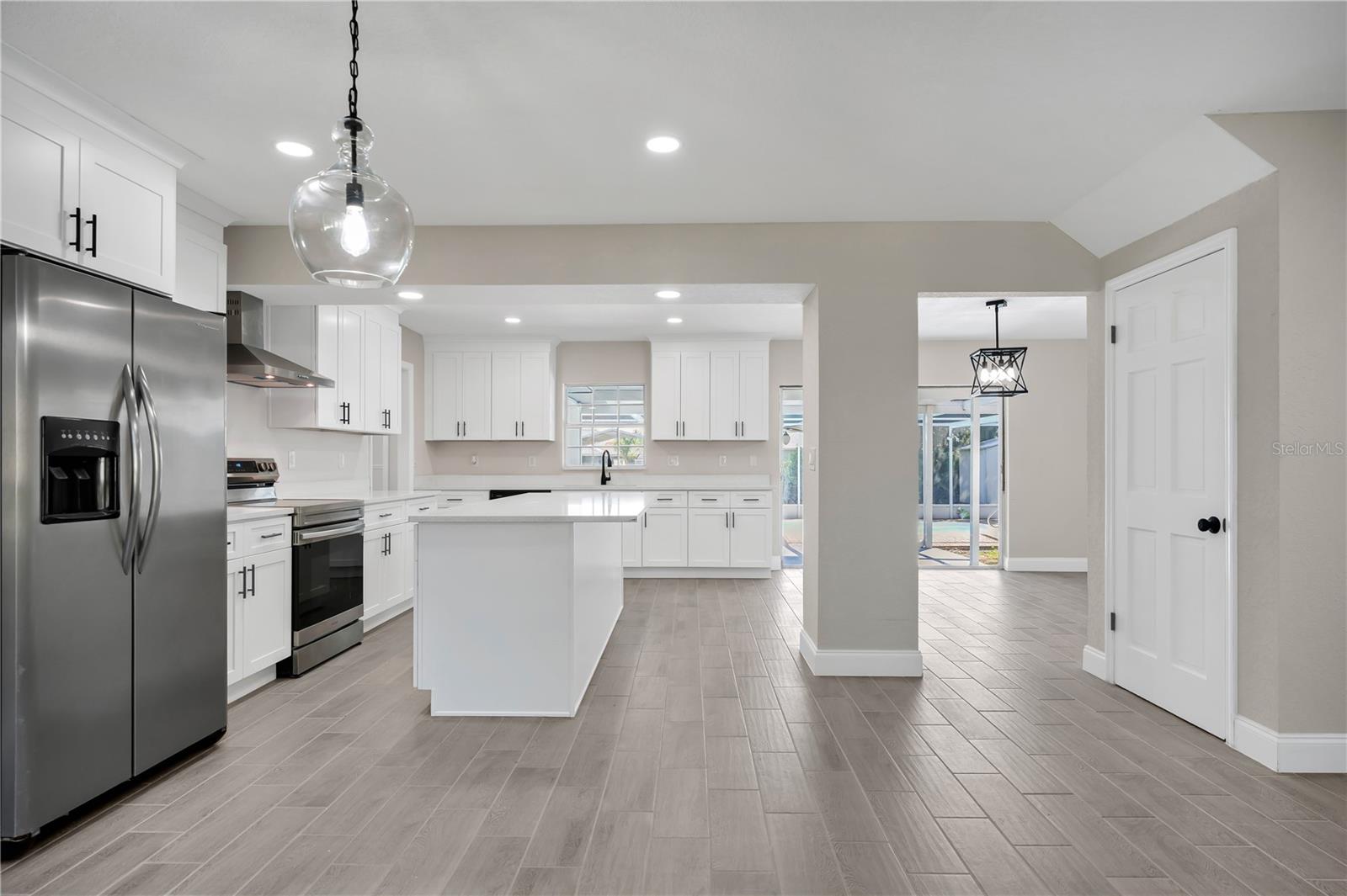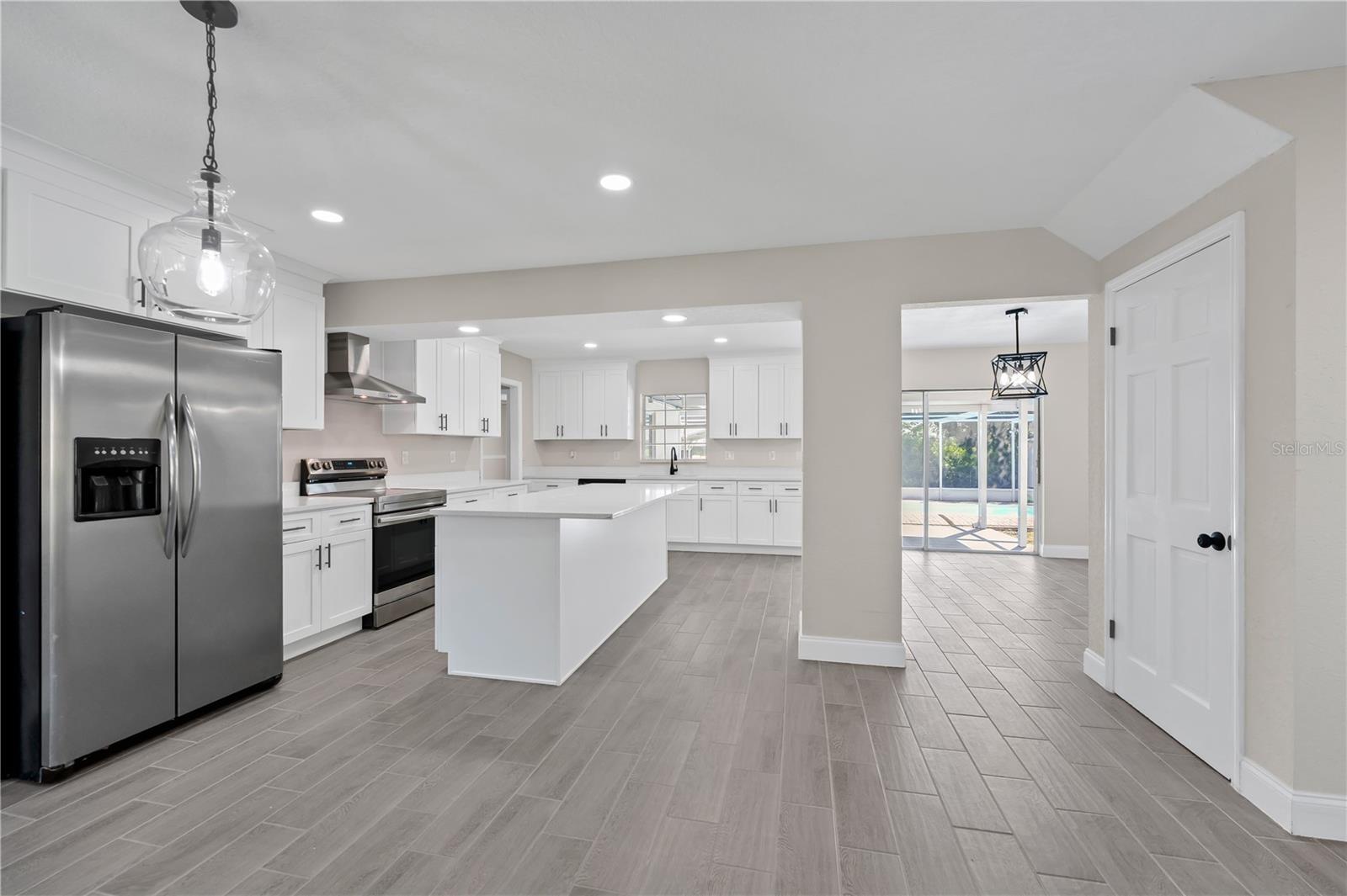 Welcome to 824 Lake Elbert Ct, a beautifully updated 4 bedroom, 3.5 bathroom pool home offering over 3,300 sq. ft. of living space near Lake Elbert. This spacious two-story home is designed for both everyday living and entertaining, with multiple areas to gather and relax. The main level features a formal living room, formal dining room, a bright breakfast nook, and a large family room that can double as a game room. The remodeled kitchen is a true centerpiece with granite countertops, stainless steel appliances, shaker cabinets, and a large island with plenty of seating. Upstairs, the expansive primary suite includes a versatile bonus area and a walk-in closet. The additional bedrooms are generously sized, and the updated bathrooms showcase modern finishes. A second-floor laundry chute, dedicated laundry room, and ample storage add convenience to the home. Step outside to a screened-in pool and covered lanai overlooking a fenced backyard. An outdoor shower makes pool days even easier, while the 2-car garage and storage shed add extra functionality. Move-in ready and ideally located near schools, shopping, dining, and Lake Elbert recreation, this home offers the best of space, style, and location. Schedule your private showing today.