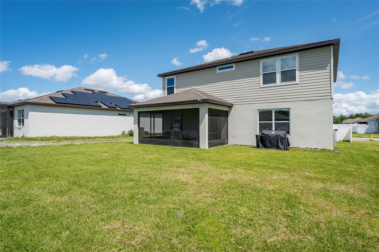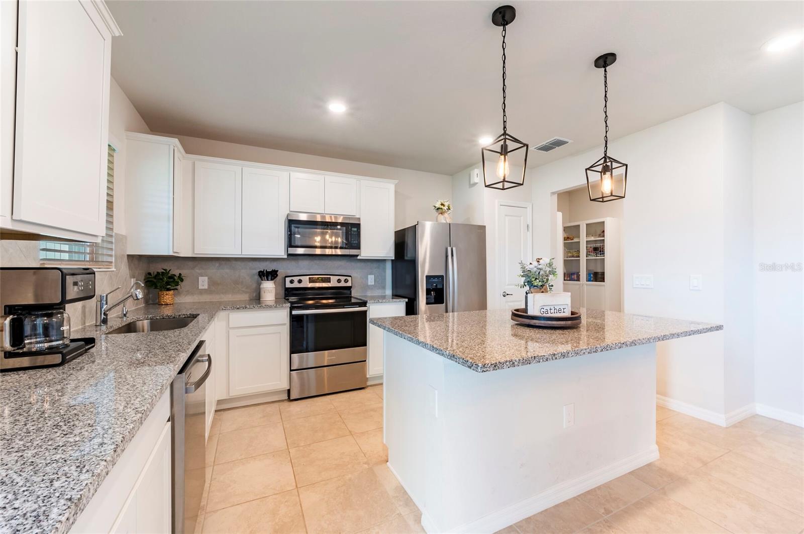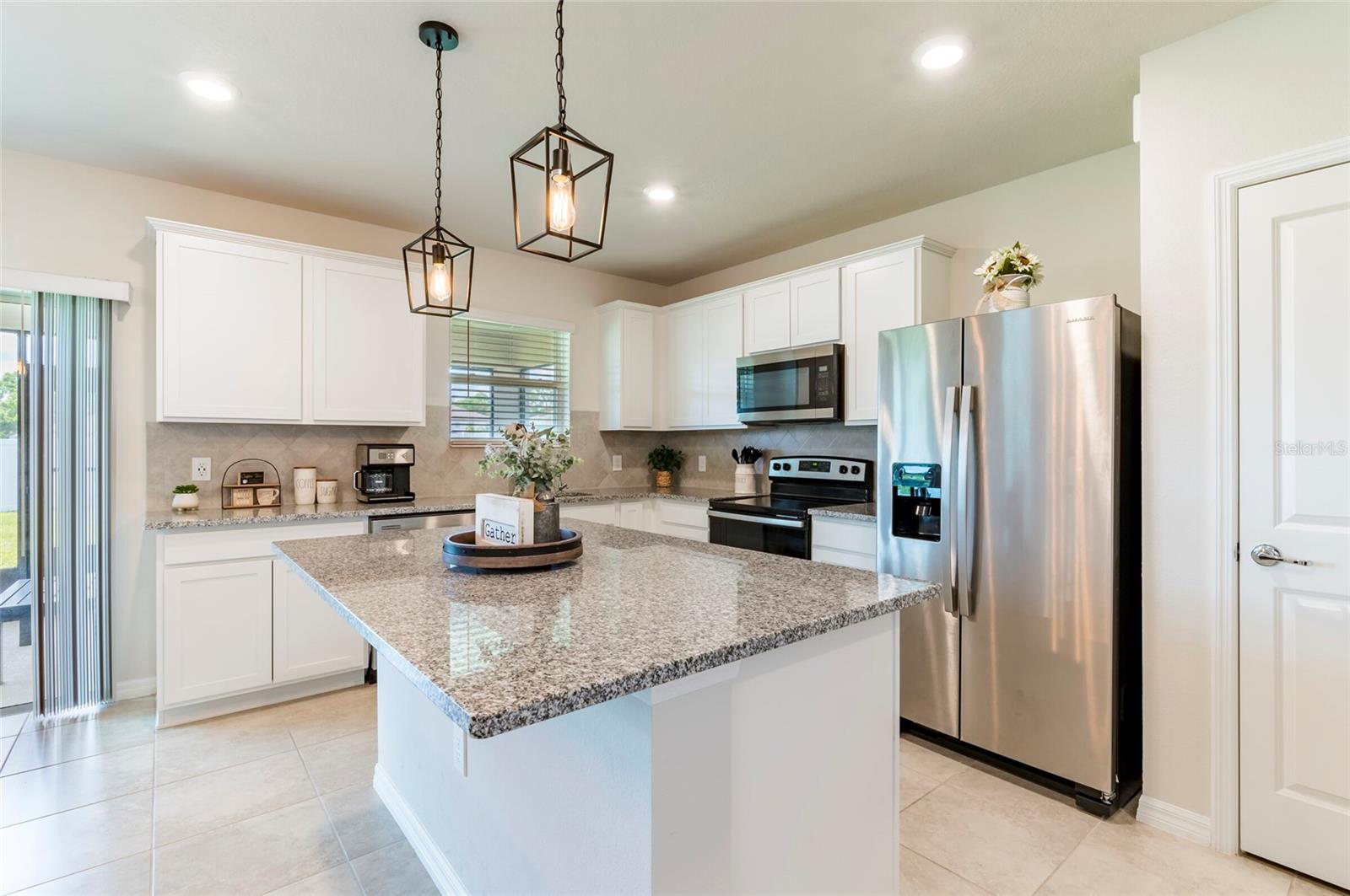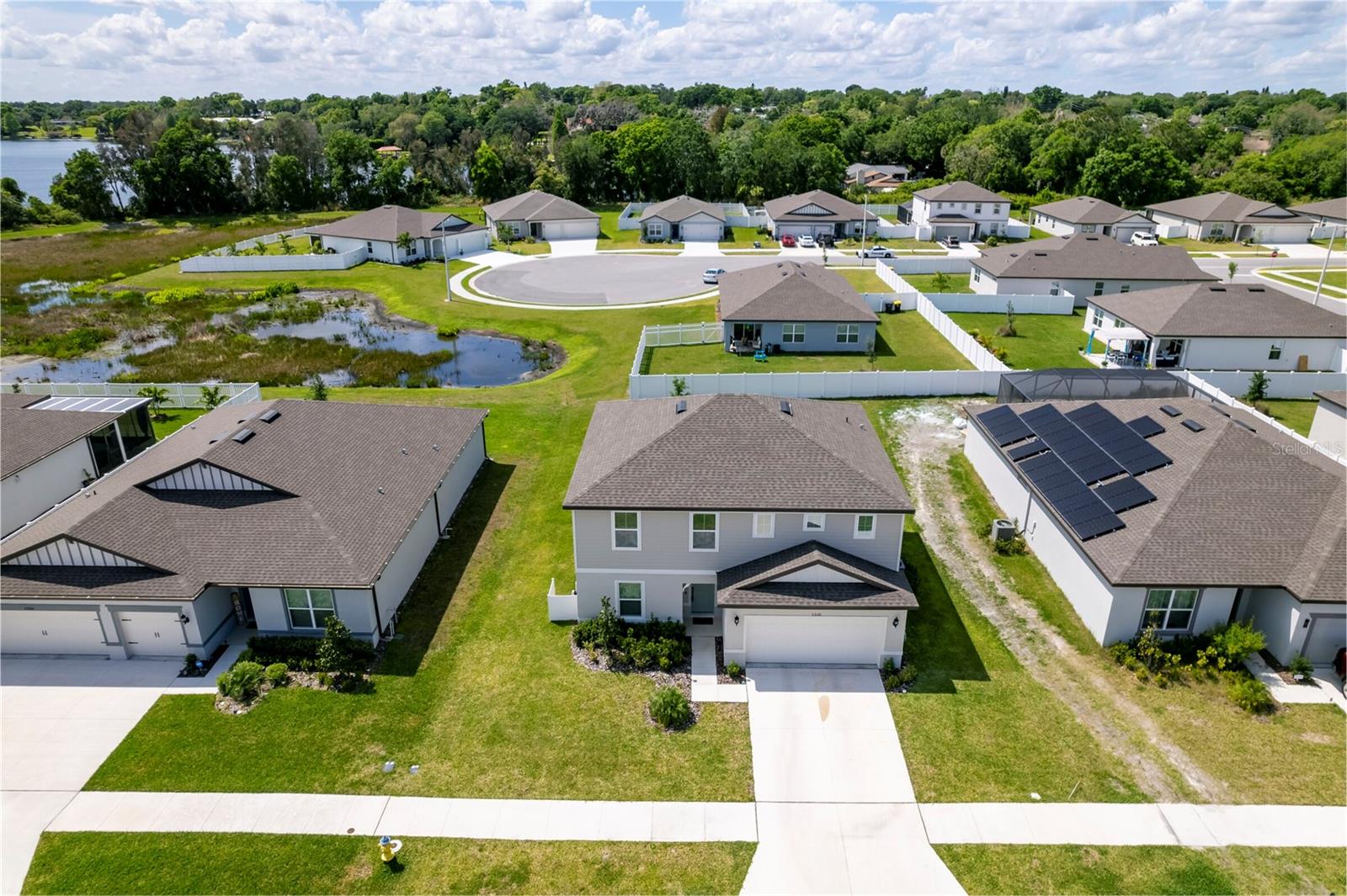 PRICE REDUCED $13,000 from original listing price! This charming two-story Thompson Floor plan situated in the quaint community of Estates of Lake Florence could be yours! Offering an expansive open-concept layout, the home boasts a generously sized kitchen, dining area, and gathering room that seamlessly flow onto the spacious covered and screened in lanai through sliders. Adorned with elegant cabinets and majestic granite countertops in both the kitchen and bathrooms, along with a suite of stainless steel appliances including a refrigerator, range, microwave and washer/dryer, this home exudes luxury! The first floor hosts a convenient full bath and an enclosed flex room, perfect for an office space, or a guest room. Upstairs, discover a well-placed laundry room, loft, four bedrooms, and two bathrooms. Don't let this incredible opportunity to own this delightful home pass you by!