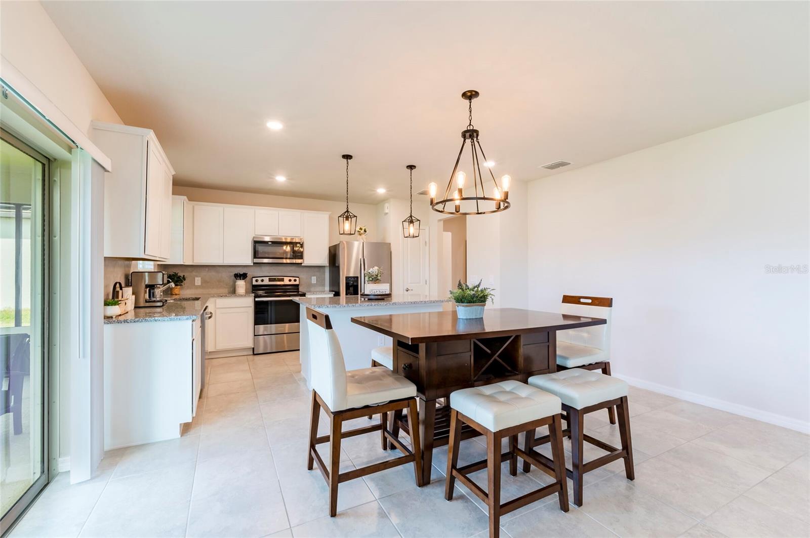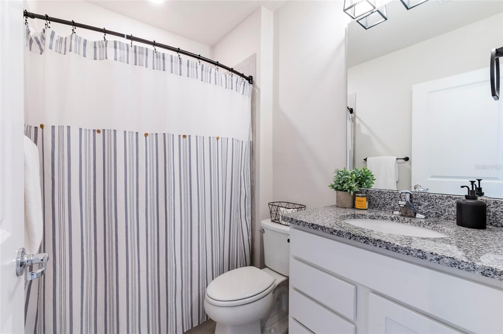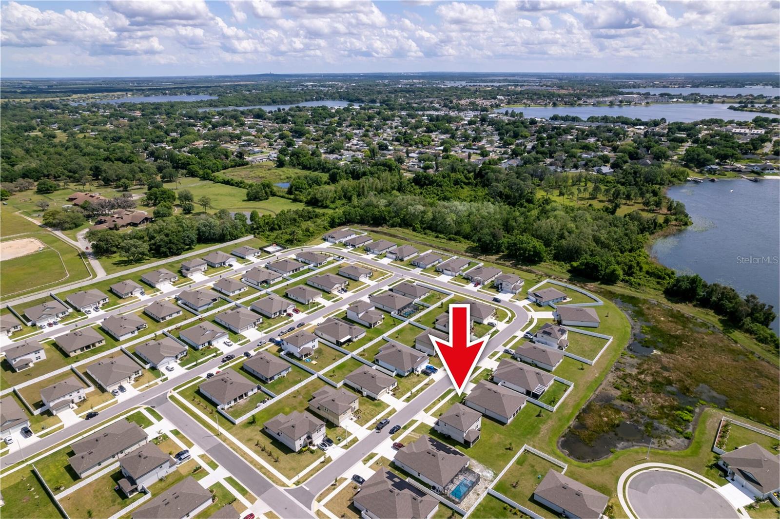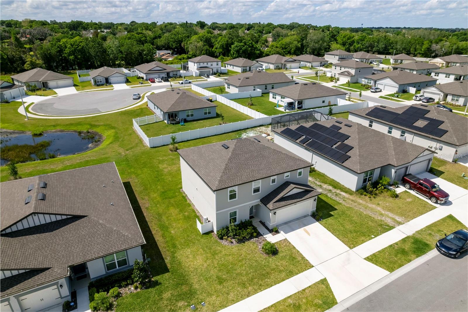 PRICE REDUCED $13,000 from original listing price! This charming two-story Thompson Floor plan situated in the quaint community of Estates of Lake Florence could be yours! Offering an expansive open-concept layout, the home boasts a generously sized kitchen, dining area, and gathering room that seamlessly flow onto the spacious covered and screened in lanai through sliders. Adorned with elegant cabinets and majestic granite countertops in both the kitchen and bathrooms, along with a suite of stainless steel appliances including a refrigerator, range, microwave and washer/dryer, this home exudes luxury! The first floor hosts a convenient full bath and an enclosed flex room, perfect for an office space, or a guest room. Upstairs, discover a well-placed laundry room, loft, four bedrooms, and two bathrooms. Don't let this incredible opportunity to own this delightful home pass you by!