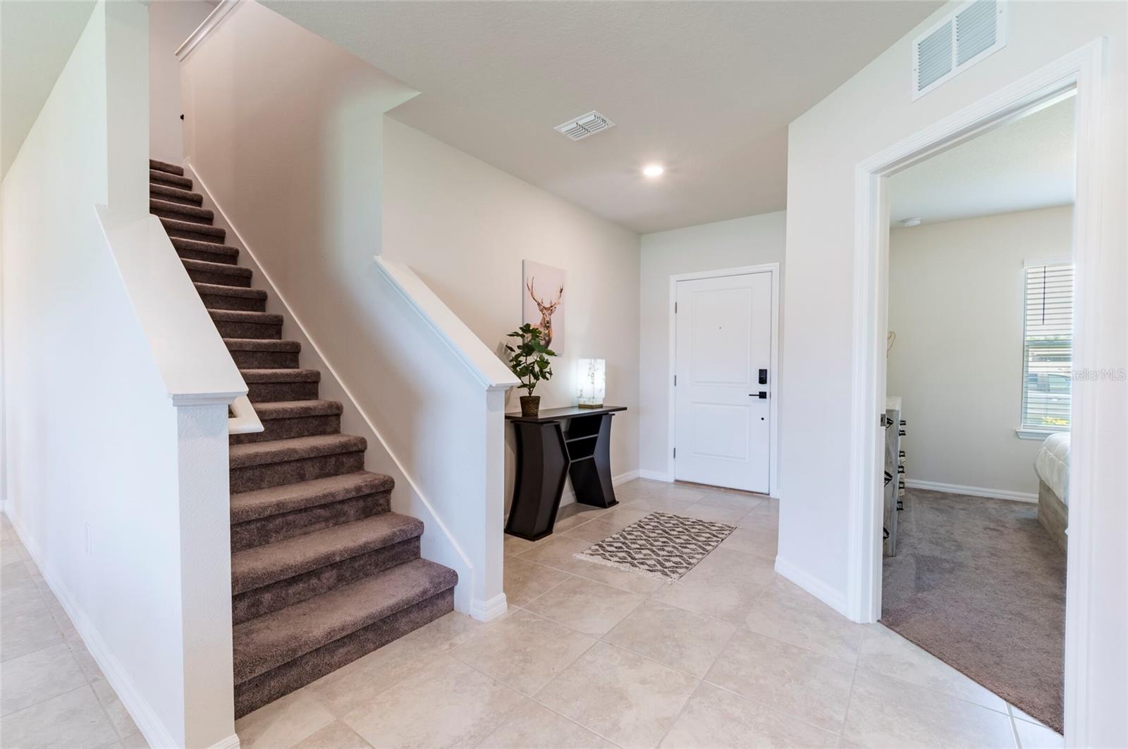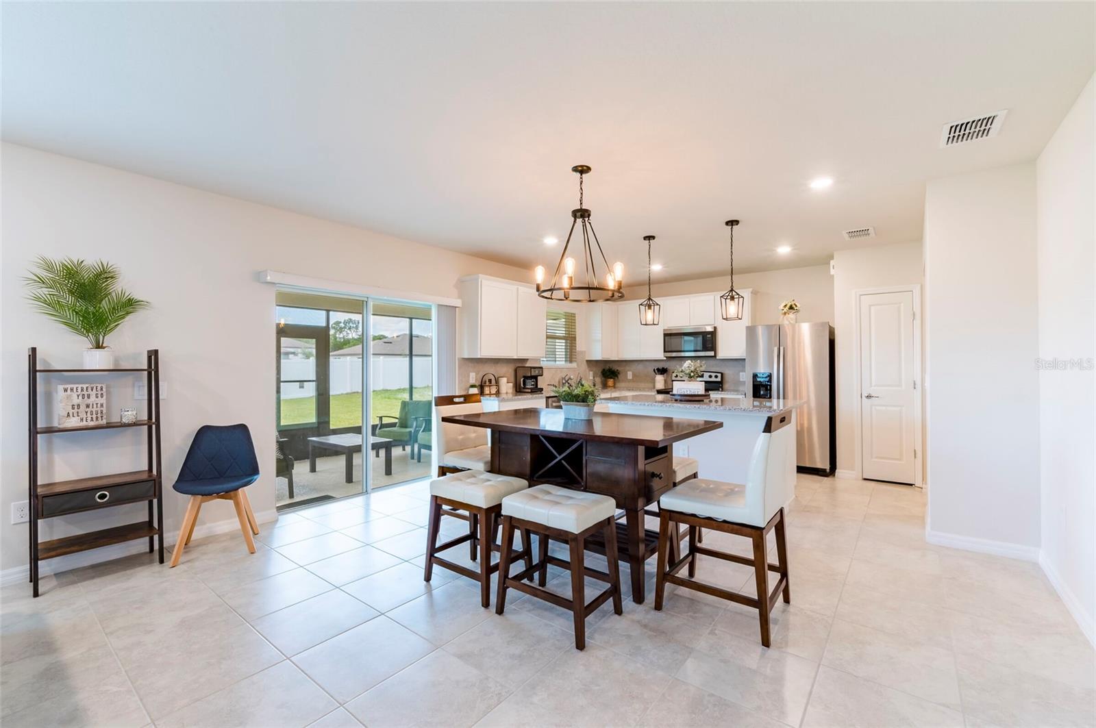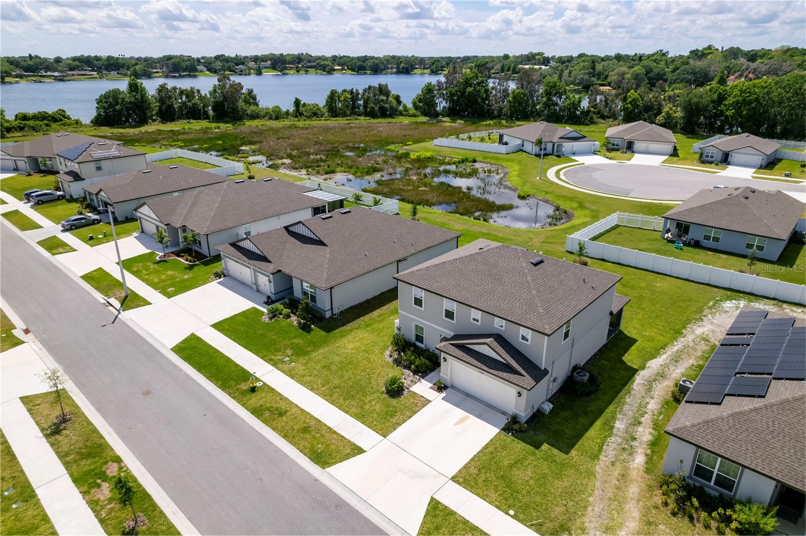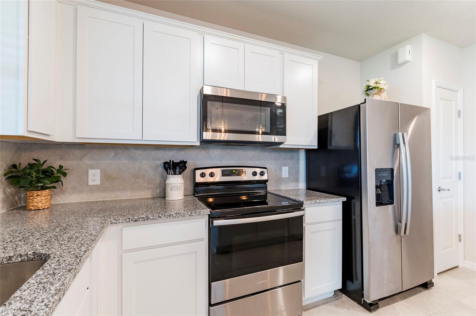 PRICE REDUCED $13,000 from original listing price! This charming two-story Thompson Floor plan situated in the quaint community of Estates of Lake Florence could be yours! Offering an expansive open-concept layout, the home boasts a generously sized kitchen, dining area, and gathering room that seamlessly flow onto the spacious covered and screened in lanai through sliders. Adorned with elegant cabinets and majestic granite countertops in both the kitchen and bathrooms, along with a suite of stainless steel appliances including a refrigerator, range, microwave and washer/dryer, this home exudes luxury! The first floor hosts a convenient full bath and an enclosed flex room, perfect for an office space, or a guest room. Upstairs, discover a well-placed laundry room, loft, four bedrooms, and two bathrooms. Don't let this incredible opportunity to own this delightful home pass you by!