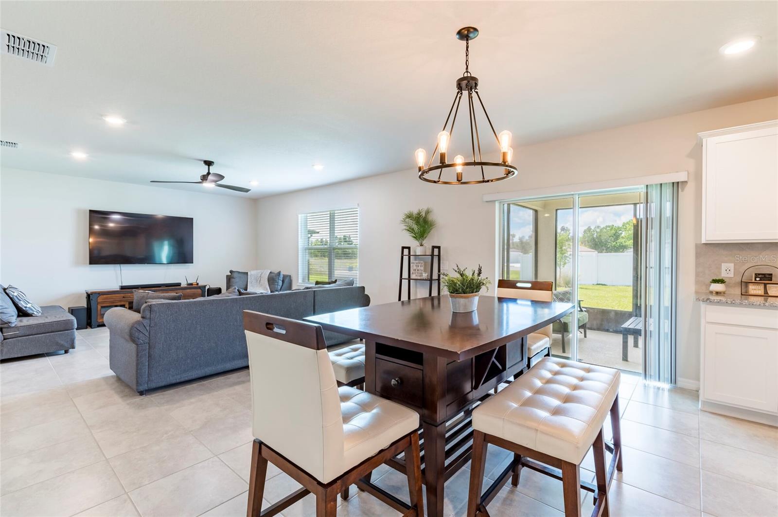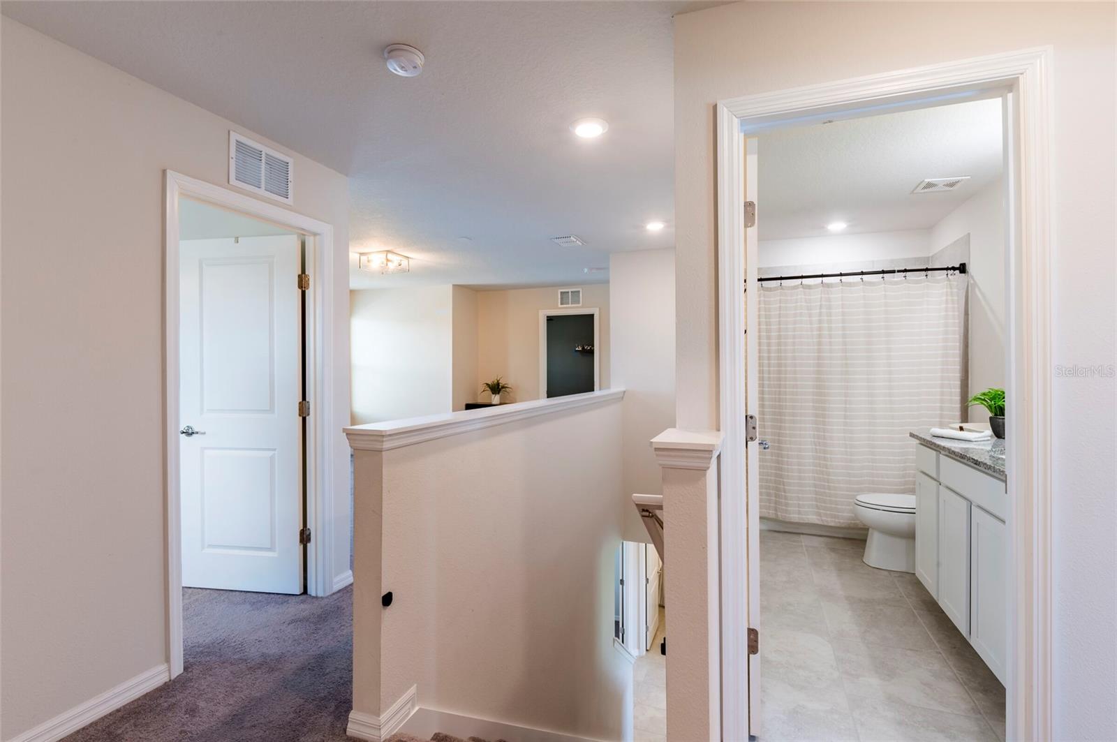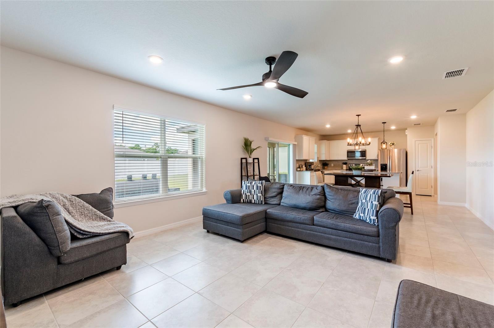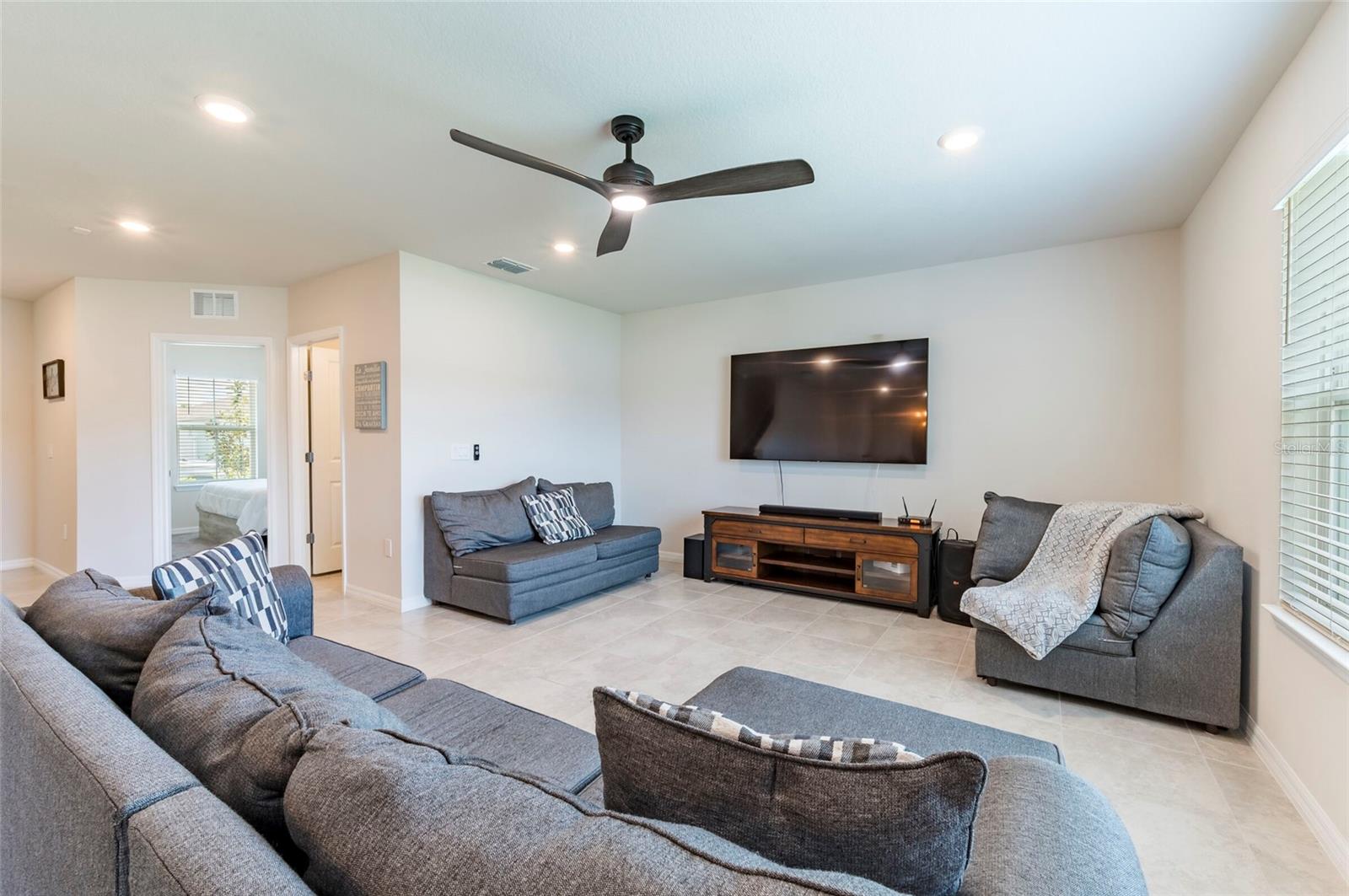 PRICE REDUCED $13,000 from original listing price! This charming two-story Thompson Floor plan situated in the quaint community of Estates of Lake Florence could be yours! Offering an expansive open-concept layout, the home boasts a generously sized kitchen, dining area, and gathering room that seamlessly flow onto the spacious covered and screened in lanai through sliders. Adorned with elegant cabinets and majestic granite countertops in both the kitchen and bathrooms, along with a suite of stainless steel appliances including a refrigerator, range, microwave and washer/dryer, this home exudes luxury! The first floor hosts a convenient full bath and an enclosed flex room, perfect for an office space, or a guest room. Upstairs, discover a well-placed laundry room, loft, four bedrooms, and two bathrooms. Don't let this incredible opportunity to own this delightful home pass you by!