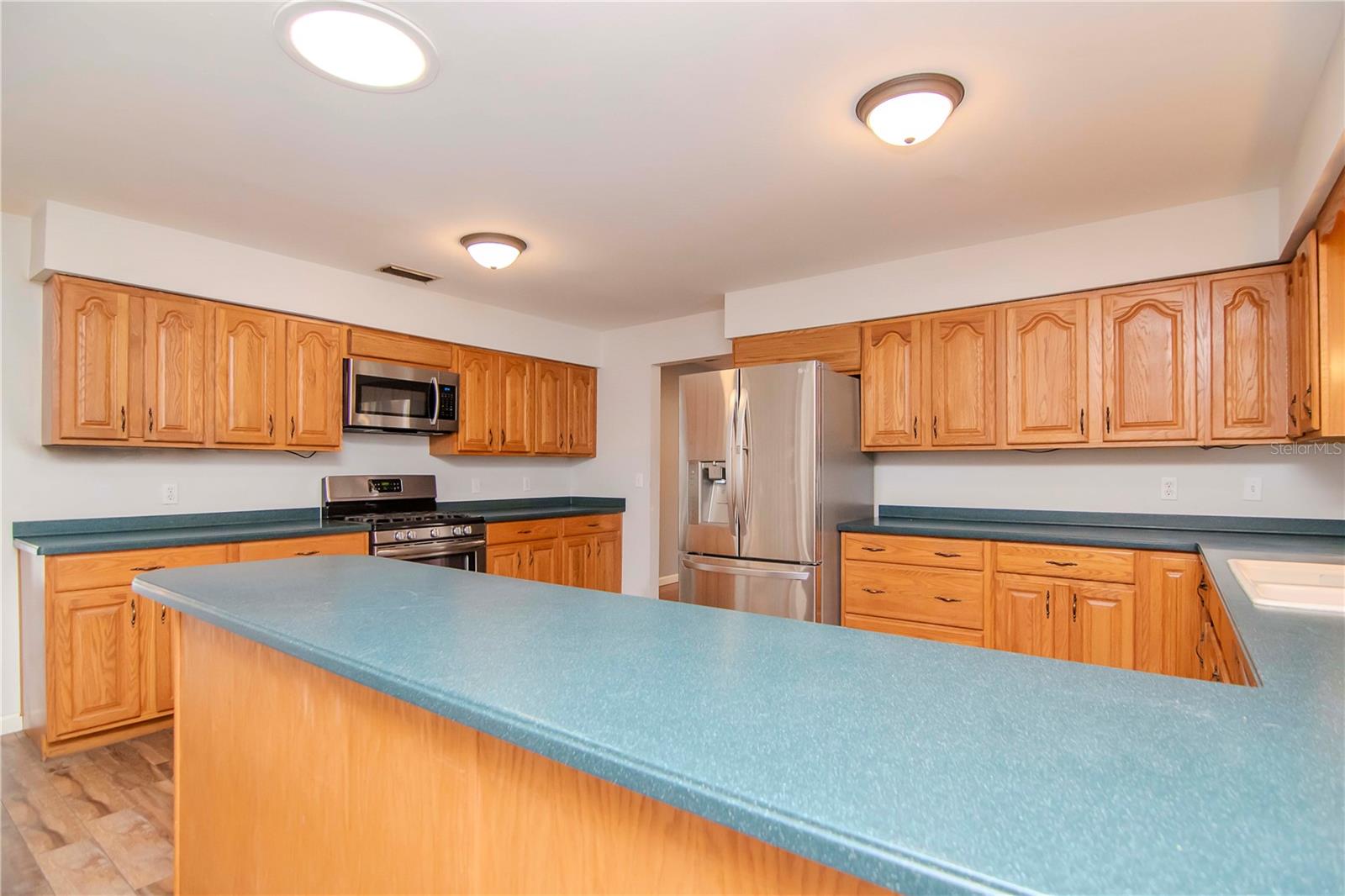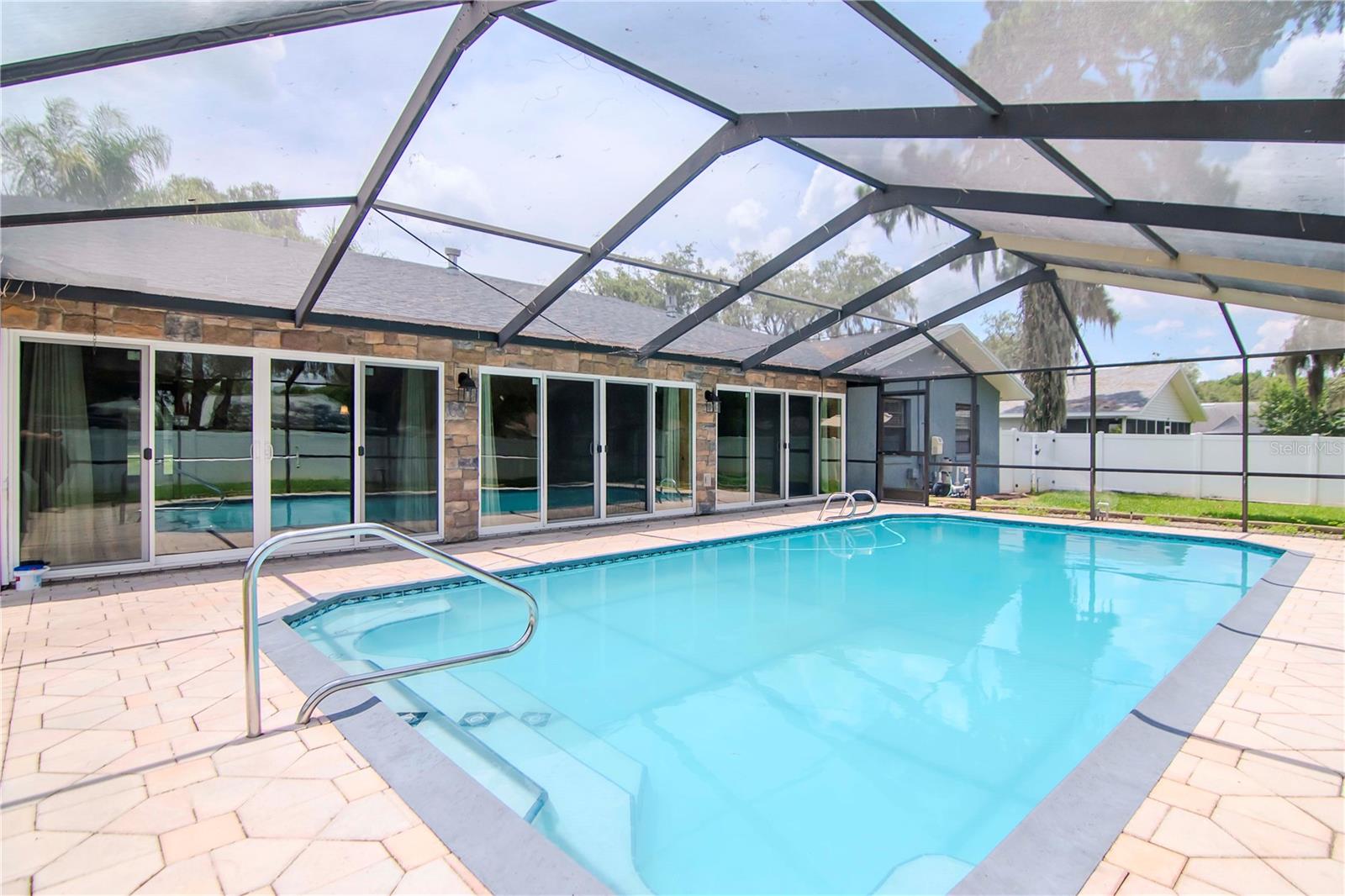 No HOA or CDD fees! This expansive 3,600 sq. ft. residence is perfectly designed for families who love to entertain and enjoy luxurious living. With 5 bedrooms and 3 bathrooms, this home offers ample space for everyone, including a huge family room looking out on the back deck and pool area! There is also a large bedroom with it’s own full bath that would make a great mother in-law suite! Key Features: Dive into the refreshing pool! Ideal for those hot summer days or evening swims under the stars. A huge family room serves as the heart of the home, perfect for gatherings, movie nights, or just relaxing. The formal living and dining rooms provide an upscale setting for entertaining guests or enjoying family dinners. Conveniently located off the kitchen, the dinette is perfect for casual meals and morning coffee. Equipped with a gas stove, this kitchen is a chef's delight, ready for preparing culinary masterpieces. Benefit from a tankless gas water heater, ensuring endless hot water and energy efficiency. The master suite features a spacious walk-in closet and an en-suite bath, offering a private sanctuary. A second large bedroom also includes an en-suite bath, providing comfort and privacy for guests or family members. This remarkable home combines functionality and lots of space, making it the perfect place for creating lasting memories. Don't miss the opportunity to own this entertainer's dream home! Schedule a tour today and experience the beauty and comfort for yourself. Irrigation system is a private well, so no high water bills to have a lush yard! Shed out back for extra storage and a fully fenced back yard!