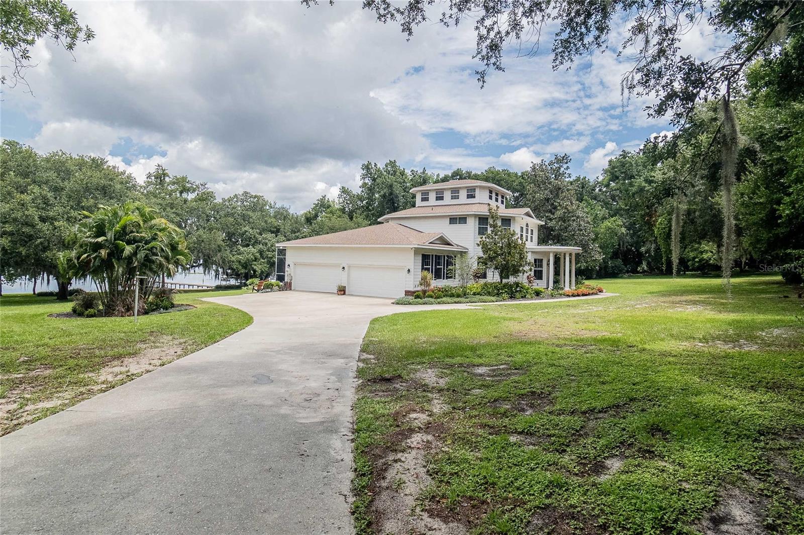 Gorgeous lakefront estate home. Enjoy the quiet countryside, just minutes to all the conveniences of Winter Haven. This 5,000+ sq foot, one of a kind home sits on approx. 2.9+/- acres with 198 feet of lakefront on Lake Fannie. The lakefront has been cleared to have a beautiful, unobstructed view of the lake. The landscape has been updated to include A large number of fruit bearing trees and plants, you can harvest tropical fruits year round. The large 5 bedroom 5 ½ bath home has been updated from top to bottom. Just off the open entry sits a dining area that easily fits a table for 10+. A spacious living area features a wood burning fireplace with custom build in cabinets and shelving. The large and open kitchen has a walk in pantry, lots of storage and a wrap around bar for entertaining. Enjoy breakfast overlooking the lake in the large breakfast nook adjacent the kitchen. A sitting room, office, full bath that leads to the back patio/pool, and master suite with fireplace complete the first floor of this home. The master suite features a large walk in double shower, spa tub, water closet, and 2 separate walk in closets. The breakfast nook, living area, pool bath and master suite all open to the back covered patio with screened, heated, salt water pool. Take in the sunsets from the pool or back patio. The second floor features 4 bedrooms, 2 with private ensuites, and 2 that share a Jack and Jill bath. Lots of storage on this floor with multiple walk in closets. The third floor is an open viewing area with 360 degree views of the surroundings, this room makes for a great play room, hobby/craft room, library, etc. At the entrance of the property you will find a 2 Bedroom 1.5 Bath guest home that was recently completely renovated. The home is 784 sf and would bet the perfect Mother-in Law suite, guest house or groundskeepers residence. The back yard features many oaks that provide shade and a cool place to sit and enjoy the lake views. The 100 foot boat dock provides a convenient place to park the boat or watch the sunset. Conveniently located near Hwy 27 providing easy access to I-4 with access to both Tampa and Orlando. Located in unincorporated Polk County, no city taxes and ordinances. Horses allowed and the property doesn't have any HOA fees or restrictions, The HOA exists solely because the community jointly owns a vacant lot. Private and secluded lot, main residence can't be seen from the road.