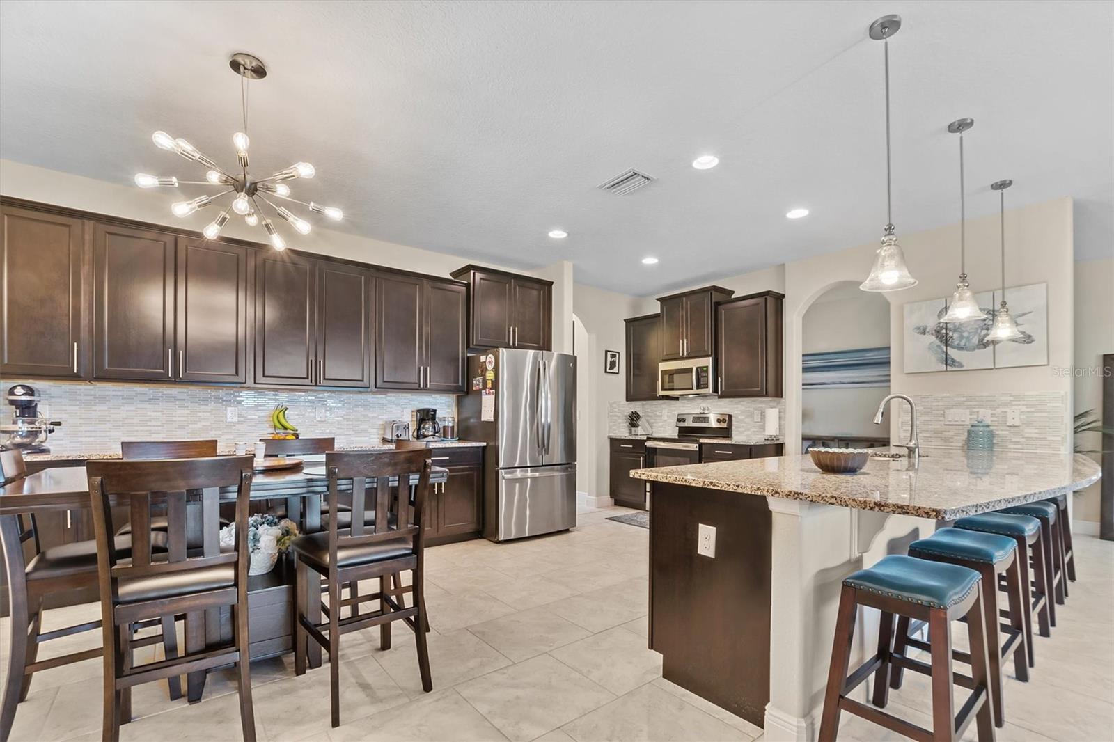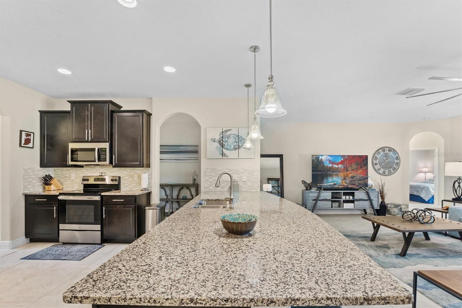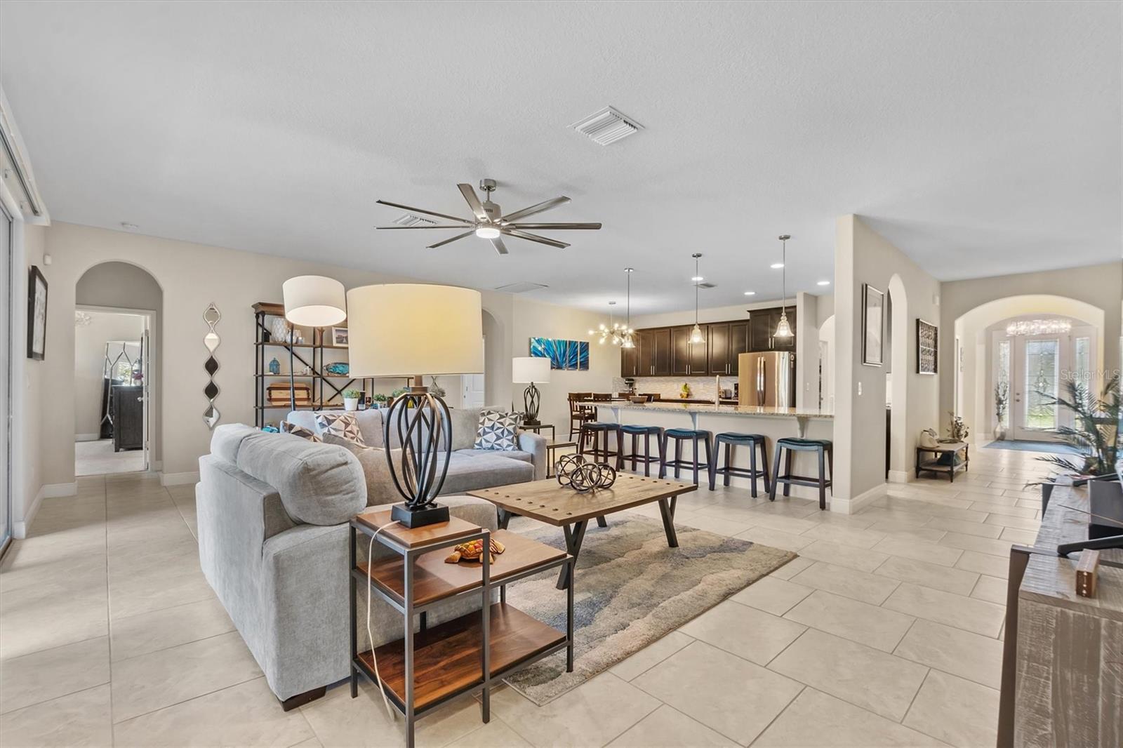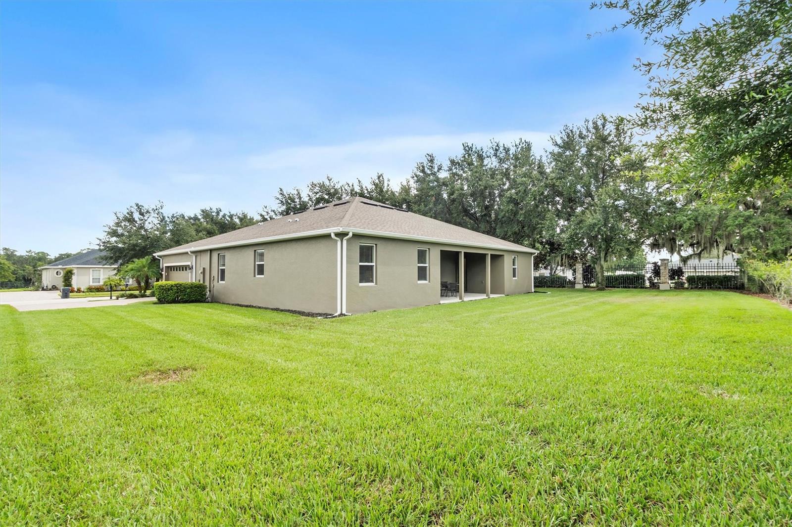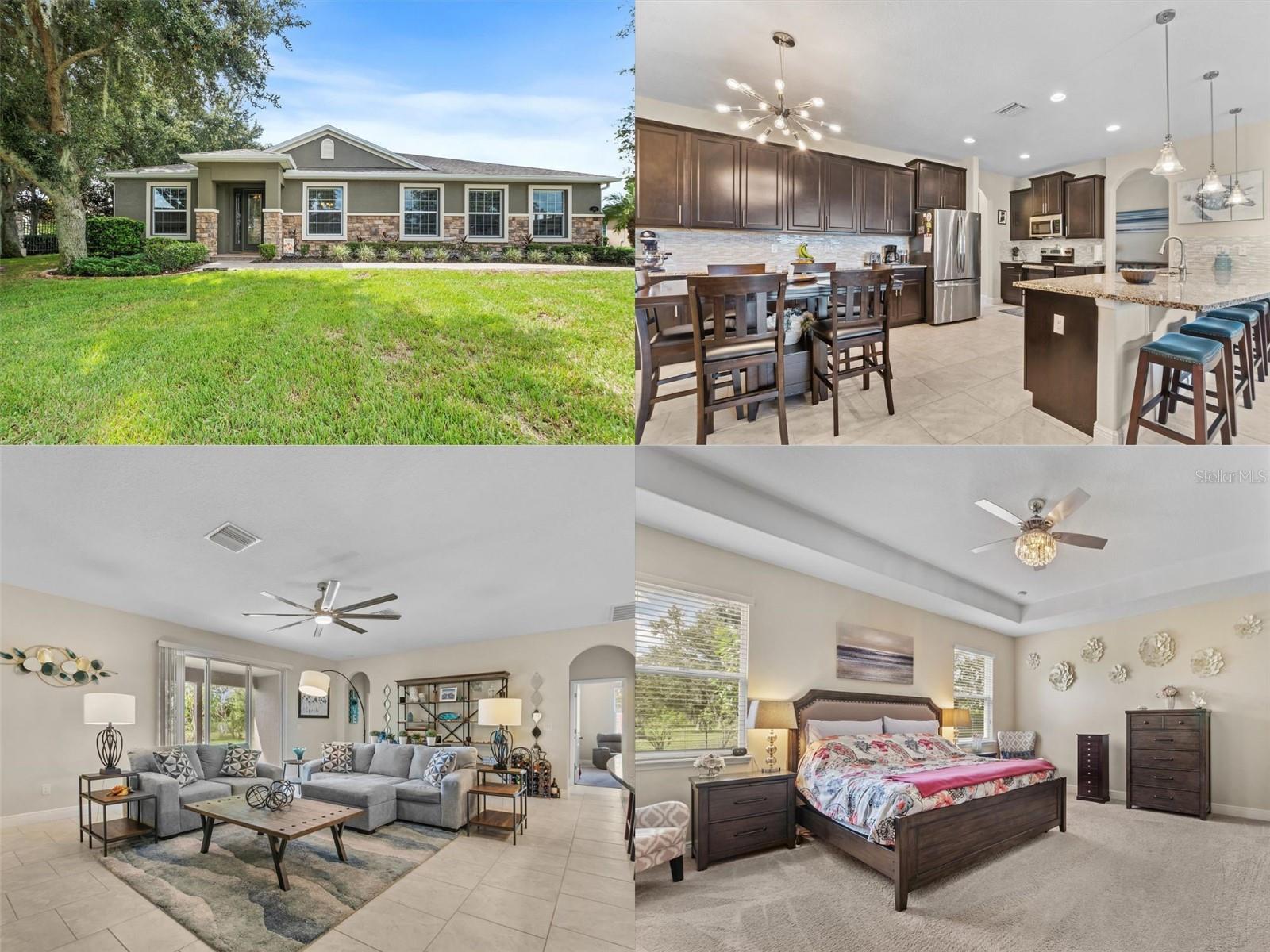 Tucked away in an exclusive, quiet GATED community of just 28 homes, this stunning 3,100 sqft single-story beauty sits on NEARLY HALF AN ACRE —a rare find in today's market! Located just off the Polk Parkway/570, it offers the perfect balance of privacy and convenience, with Lakeland, Auburndale, Bartow, and Winter Haven all just a short 10-15 minute drive away. Move-in ready and meticulously maintained, this home requires no updates. Step inside this 4-bedroom, 3-bath home and be greeted by an OPEN FLOOR PLAN and HIGH CEILINGS throughout. As you enter through the stunning glass door, you're welcomed into a foyer with a formal living room to one side and a formal dining room on the other. At the heart of the home lies your DREAM KITCHEN, featuring an expansive 11-foot granite island, ample counter and cabinet space, and a cozy dining nook. Complete with stainless steel appliances and a large pantry, it's the perfect blend of style and function. Just beyond the kitchen, the inviting great room flows seamlessly to the back porch through oversized sliding glass doors, making indoor-outdoor living a breeze. On the right side of the home is the spacious Master Suite with a large bathroom that includes separate vanities, walk-in shower, a separate large tub and a sizeable walk-in closet! There is also a BONUS ROOM right off the kitchen and a spacious laundry room leading to the oversized garage. On the left side of the home are 2 bedrooms connected by a Jack & Jill bathroom and a 3rd bedroom at the rear of the home. You won't have to worry about storage - this home has lots of closets and attic storage. There is a great backyard that you'll enjoy with a large covered patio for your outdoor entertainment! This home boasts stunning curb appeal, featuring a paver driveway and walkway, complemented by beautifully matured landscaping. Ring doorbell and ADT security system will stay. Attic includes a radiant barrier that reduces the electric bill.