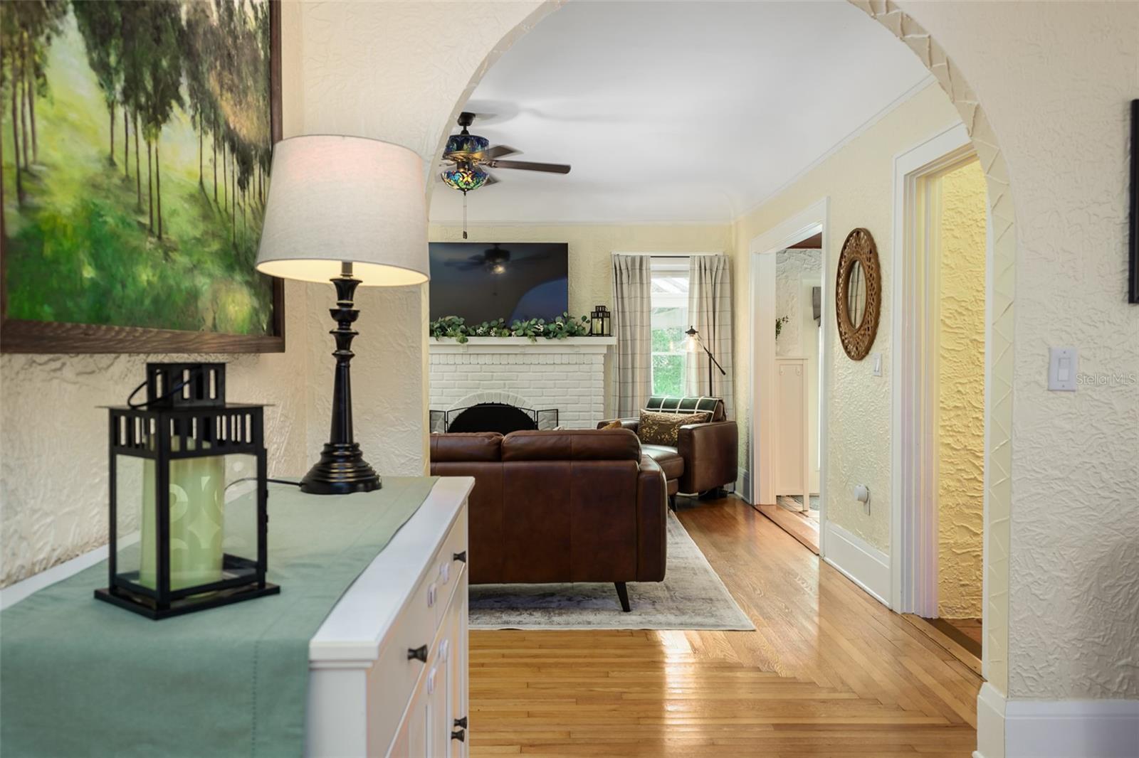 Price Improvement!! ***Priced below appraised value*** Seller Motivated...This unique and beautiful Spanish Style Florida home, built in 1925 on a double lot, is in the heart of three of Winter Haven’s Chain of Lakes: Lake Mirror, Lake Cannon, and Lake Howard. Sparing no expense for this 3 bedroom, 2 bath, gem---coupled by quality craftsmanship--- respect for the Old Florida architectural tradition has been maintained throughout the complete renovation process. Yet this inviting home has been seasoned with the perfect blend of modern upgrades and conveniences. *** Seller is offering a home warranty for that added piece of mind! From the moment you come through the front entry way, you’ll step onto the Handmade Saltillo tile flooring and then notice the eye-catching refinished original hardwood flooring throughout. You’ll certainly be drawn to the beautifully refinished original coved ceilings in the living room and dining room as you move through the charming archways. You may even stop for a moment first before the original gas burning fireplace to imagine others who may have warmed themselves in days gone by, or look up to see the Tiffany style glass ceiling fans circulating lazily. You’ll soon find yourself ready to prepare a meal for the family or your first guests upon entering the tastefully renovated gourmet kitchen: granite counter tops, cherry wood cabinets, stainless-steel appliances: refrigerator, dishwasher, microwave, gas stove, disposal. Simply delectable! The adjacent laundry room is convenient and offers additional storage for household goods. Then it’s on to the spacious and calming primary bedroom and bath: There’s a new vanity, fixtures & tile floors and marble surround bath. The interior has been retextured and painted, The same for the bath shared by the other two bedrooms. The primary bedroom features French doors that open to the relaxing patio. The perfect spot for morning coffee or an evening glass of wine. *** Roof is 2 years new, along with the gas hot water heater; A/C & Heat coil & 4 ton & 2 ton Units & handlers with new ductwork; the entire home has been completely replumbed and rewired; the exterior painted and gutters installed; there is a well feed irrigation system; and an 18x20 Shed with power on a concrete slab*** This timeless home in an established neighborhood is minutes to shopping, restaurants, medical facilities and more. Welcome Home!!