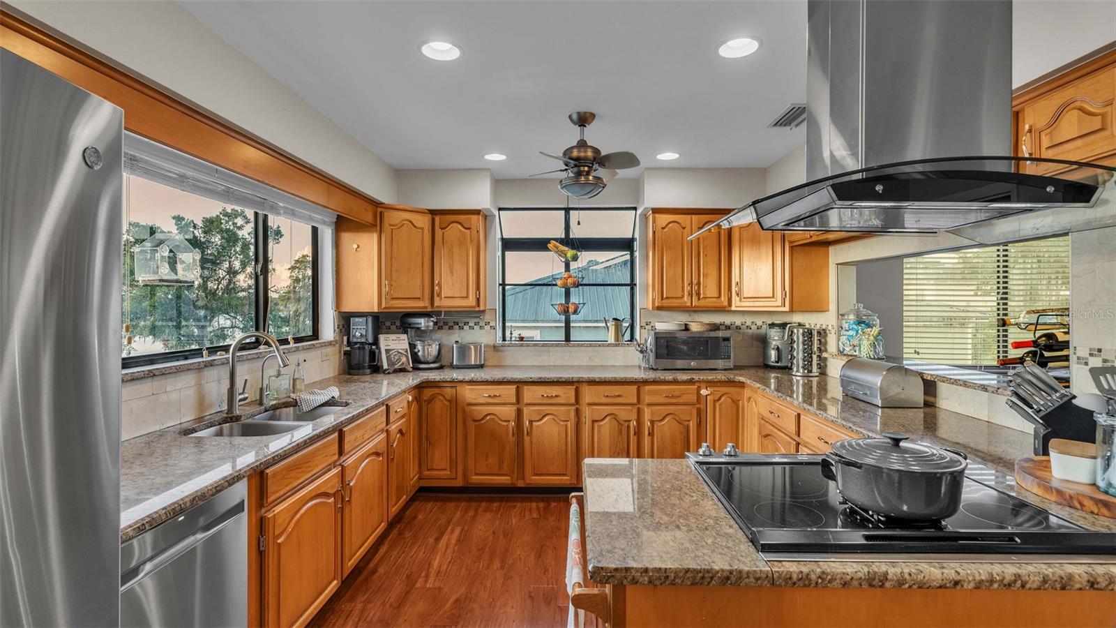 **PRICED $25k BELOW APPRAISAL!** Tucked behind citrus groves, your private, lakefront, DREAM home, situated on over an acre of land awaits! This custom-built pool home was intentionally designed to provide panoramic views of the water from nearly every room. When entering the home, the welcoming, yet spacious family room makes a wonderful first impression, with large windows that frame majestic views of Eagle Lake and provide gorgeous natural light throughout this area of the home. Ample wood cabinetry, stainless steel appliances and granite countertops are highlights in the beautiful kitchen with dining room. There is a lovely office space adjacent to the kitchen, as well as an interior laundry room with half bath. This home has TWO primary suites - one on each floor - both boast impressive bedroom space, updated en-suite bathrooms, and walk-in closets. Downstairs there is a second living room, third bedroom, full guest bathroom, an oversized storage closet and a craft nook! Given the space and layout, the floor plan of this home offers endless options for use and is a great fit for anyone with multi-generational, home schooling, or work-from home needs. Remarkable sunsets will take your breath away, as natures paints masterpieces that can be enjoyed from the open second-story deck, downstairs patio, private pool, dock, or the two-story boat house. Extra storage is provided in the back yard shed, as well as the detached 2-car garage, which has a covered walkway to the front door. There is also a convenient fenced area out back for furry friends and little ones. Just imagine a lifestyle where boating fishing, kayaking, paddle boarding and water sports will become a part of your every day life! This home has fresh paint on much of the exterior areas, a newer roof, a/c and water heater, plus the freedom of no HOA. Although its setting and incredible views of Eagle Lake will make you feel like you are away from it all - the location of this home is extremely convenient, ensuring that you have an easy and excellent quality of daily life, right in the heart of Central Florida.