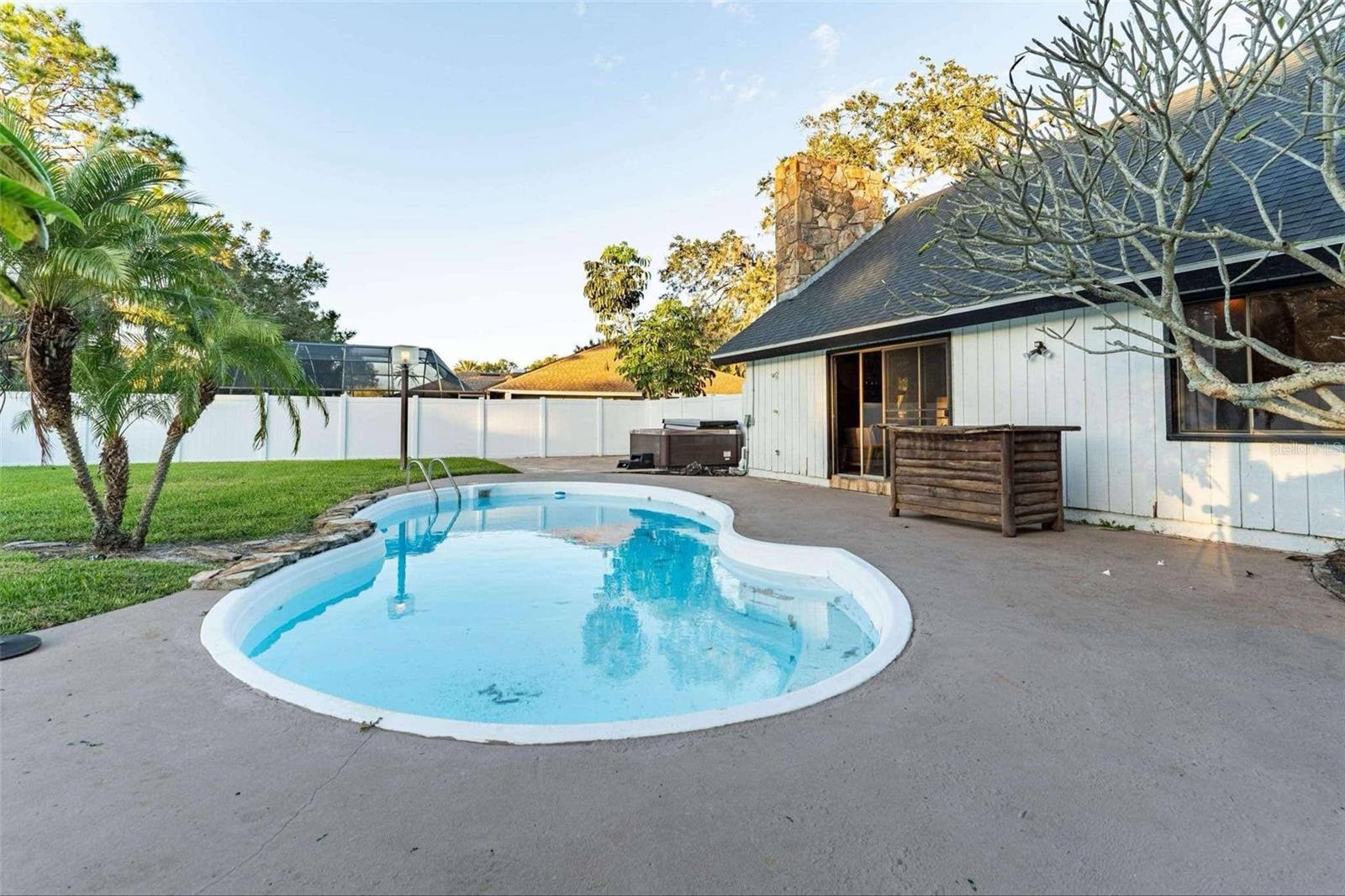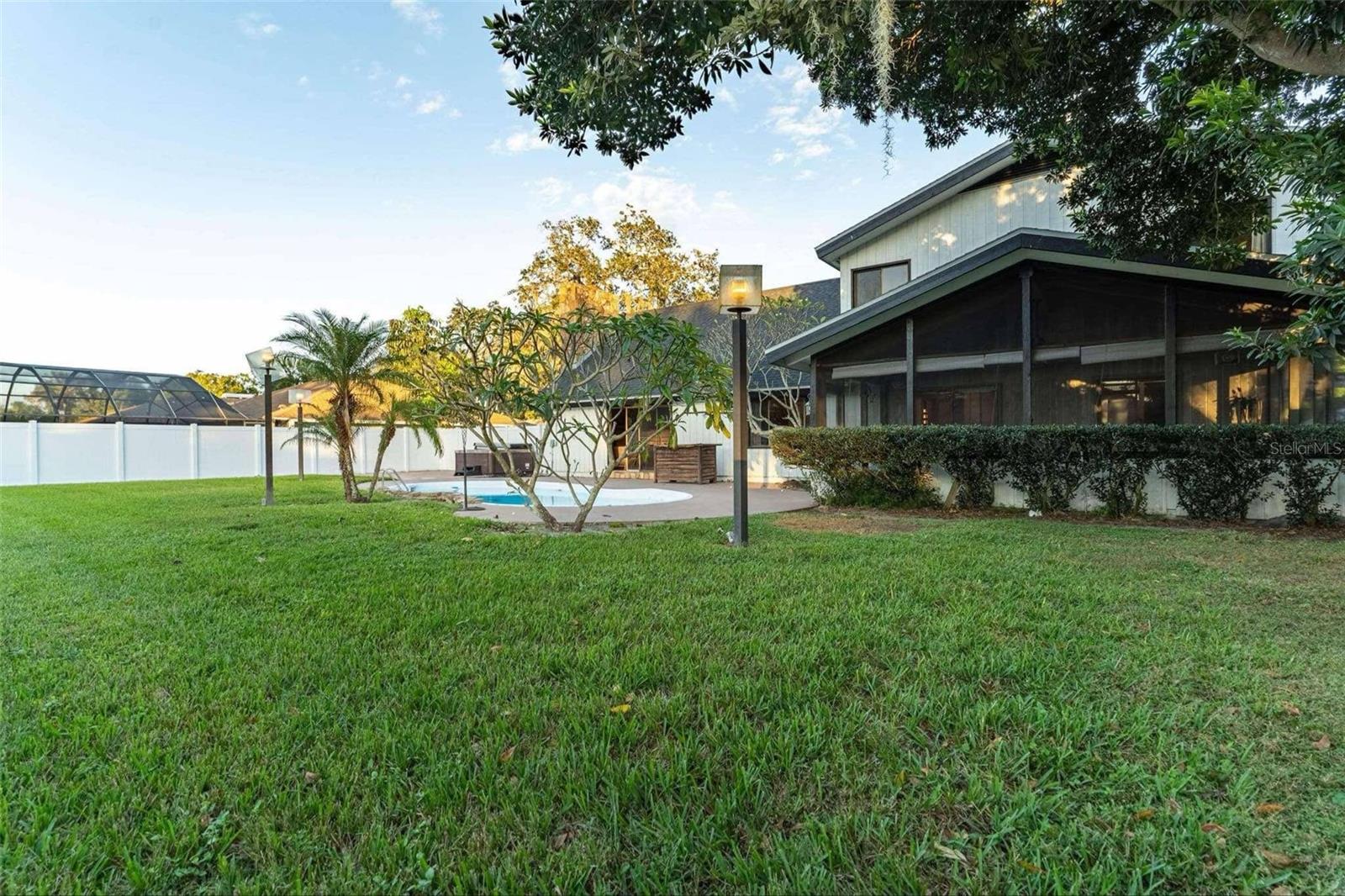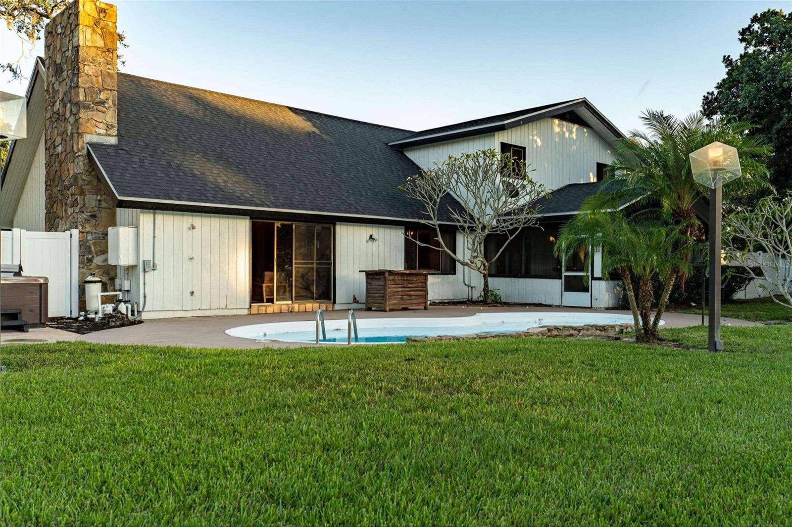 SELLER IS OFFERING $5k towards buyers closings cost or rate buy down. This stunning 4 or 5 bedroom, 3.5 bath residence is designed for luxury living and entertaining. A dramatic foyer with Spanish tile flooring flows through the main living areas on the first floor. The spacious living and dining room features a grand stone fireplace, 20-foot vaulted ceilings, and sweeping views of the pool. The gourmet kitchen, complete with granite countertops and a cozy built-in dining nook, provides a welcoming space for family and guests. The first-floor master suite boasts a soaring 20-foot ceiling, dual closets, and an en-suite bath with a walk-in shower. Custom-built vanities elevate the bathrooms, adding a unique, designer touch. Step outside to a large screened porch that opens to a beautifully designed kidney-shaped inground pool. The expansive, fully fenced backyard offers total privacy, featuring a private covered patio right outside the family room and a built-in entertainment center for your relaxation needs. Don’t miss out on this exceptional pool home with Chain-of-Lakes access! Call today to schedule your private showing.