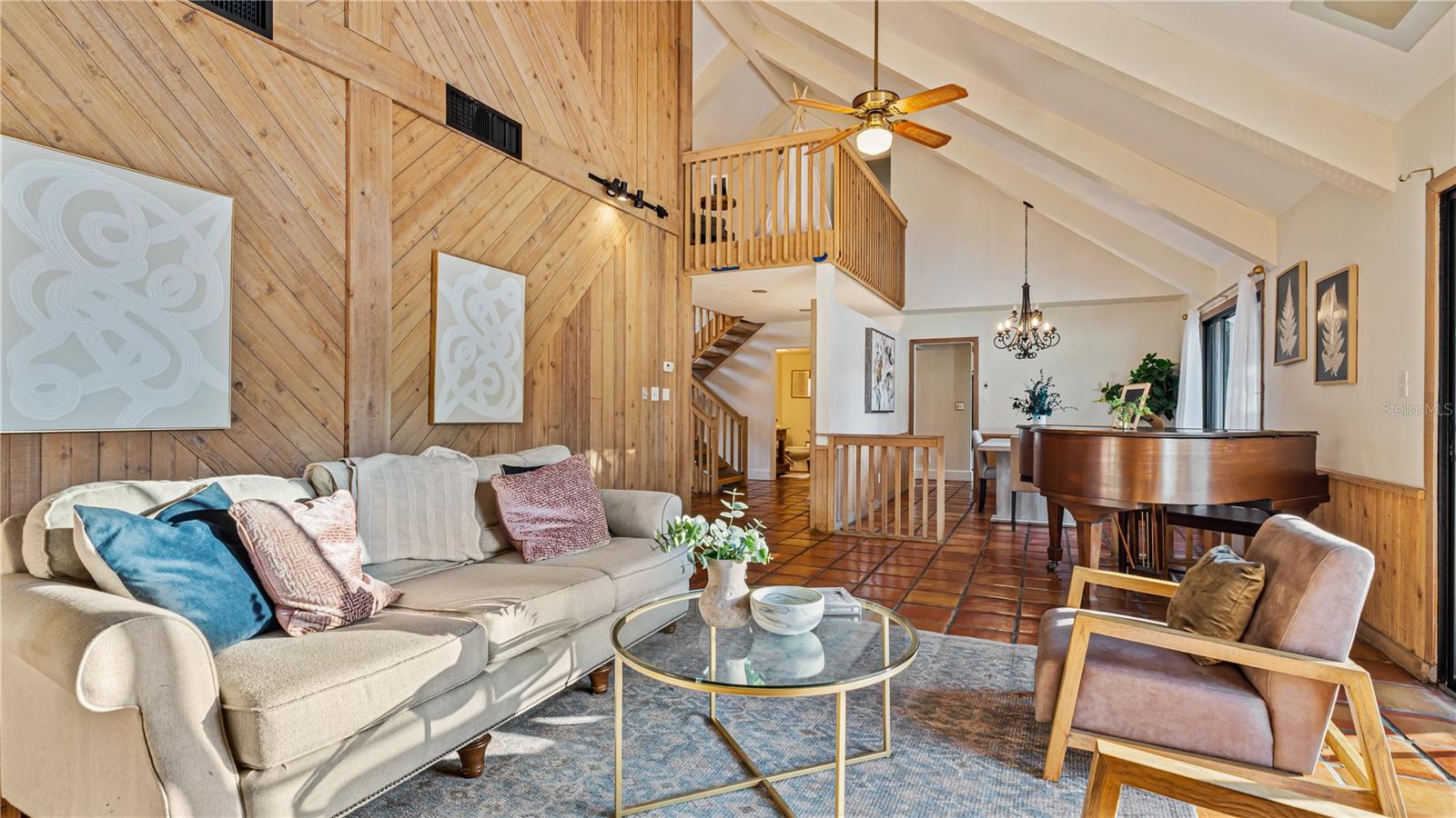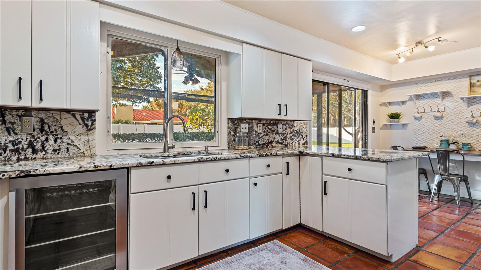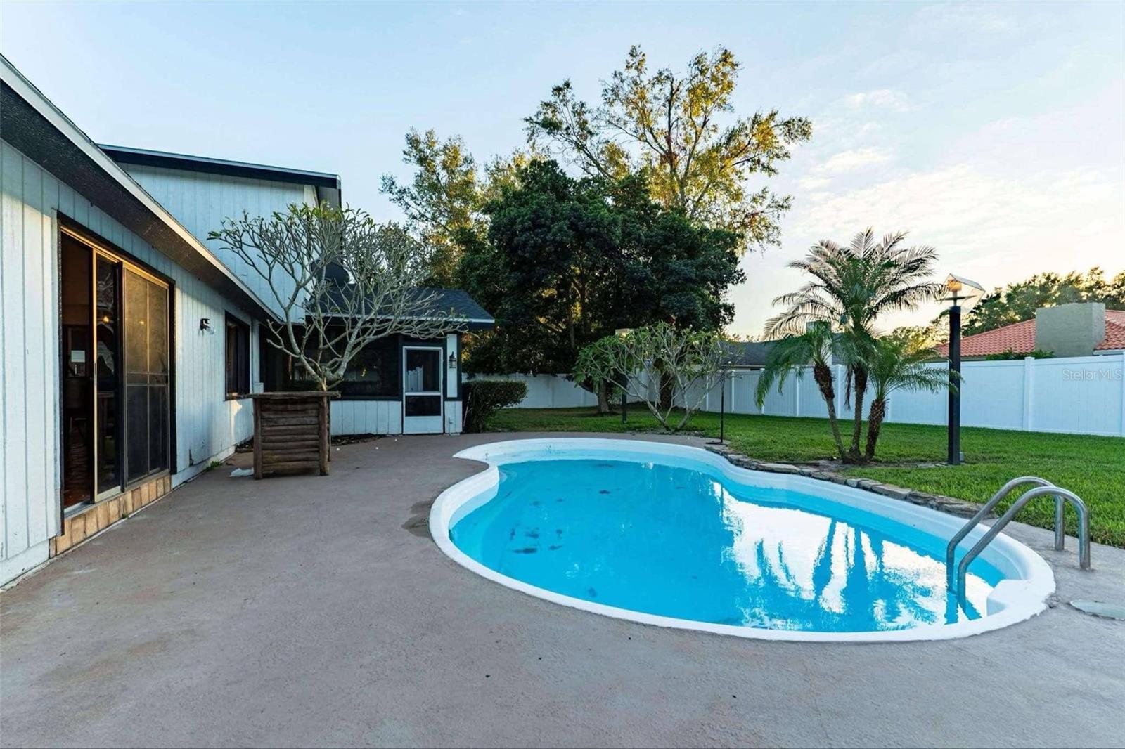 SELLER IS OFFERING $5k towards buyers closings cost or rate buy down. This stunning 4 or 5 bedroom, 3.5 bath residence is designed for luxury living and entertaining. A dramatic foyer with Spanish tile flooring flows through the main living areas on the first floor. The spacious living and dining room features a grand stone fireplace, 20-foot vaulted ceilings, and sweeping views of the pool. The gourmet kitchen, complete with granite countertops and a cozy built-in dining nook, provides a welcoming space for family and guests. The first-floor master suite boasts a soaring 20-foot ceiling, dual closets, and an en-suite bath with a walk-in shower. Custom-built vanities elevate the bathrooms, adding a unique, designer touch. Step outside to a large screened porch that opens to a beautifully designed kidney-shaped inground pool. The expansive, fully fenced backyard offers total privacy, featuring a private covered patio right outside the family room and a built-in entertainment center for your relaxation needs. Don’t miss out on this exceptional pool home with Chain-of-Lakes access! Call today to schedule your private showing.