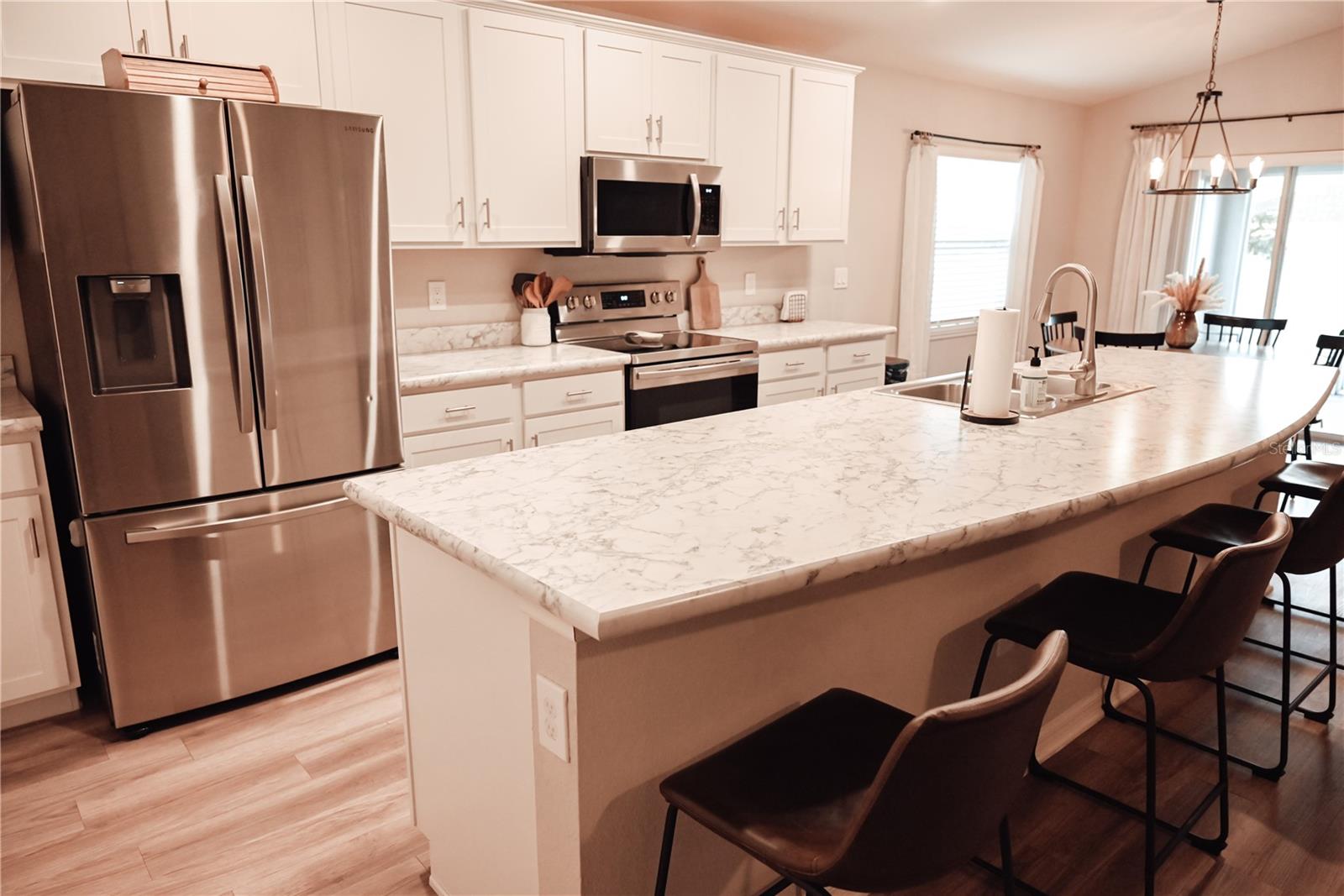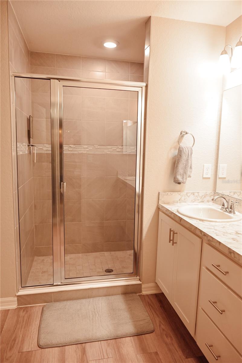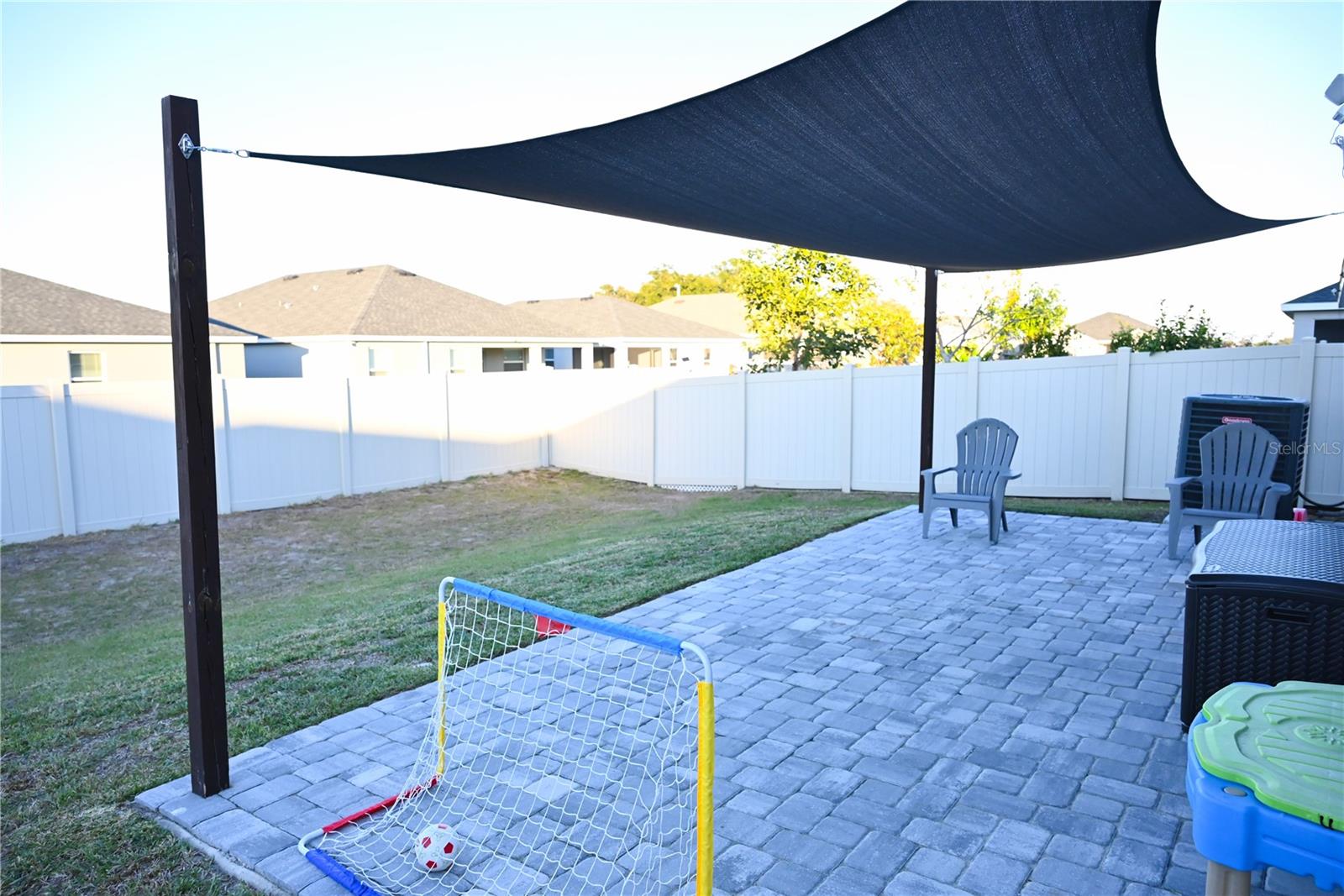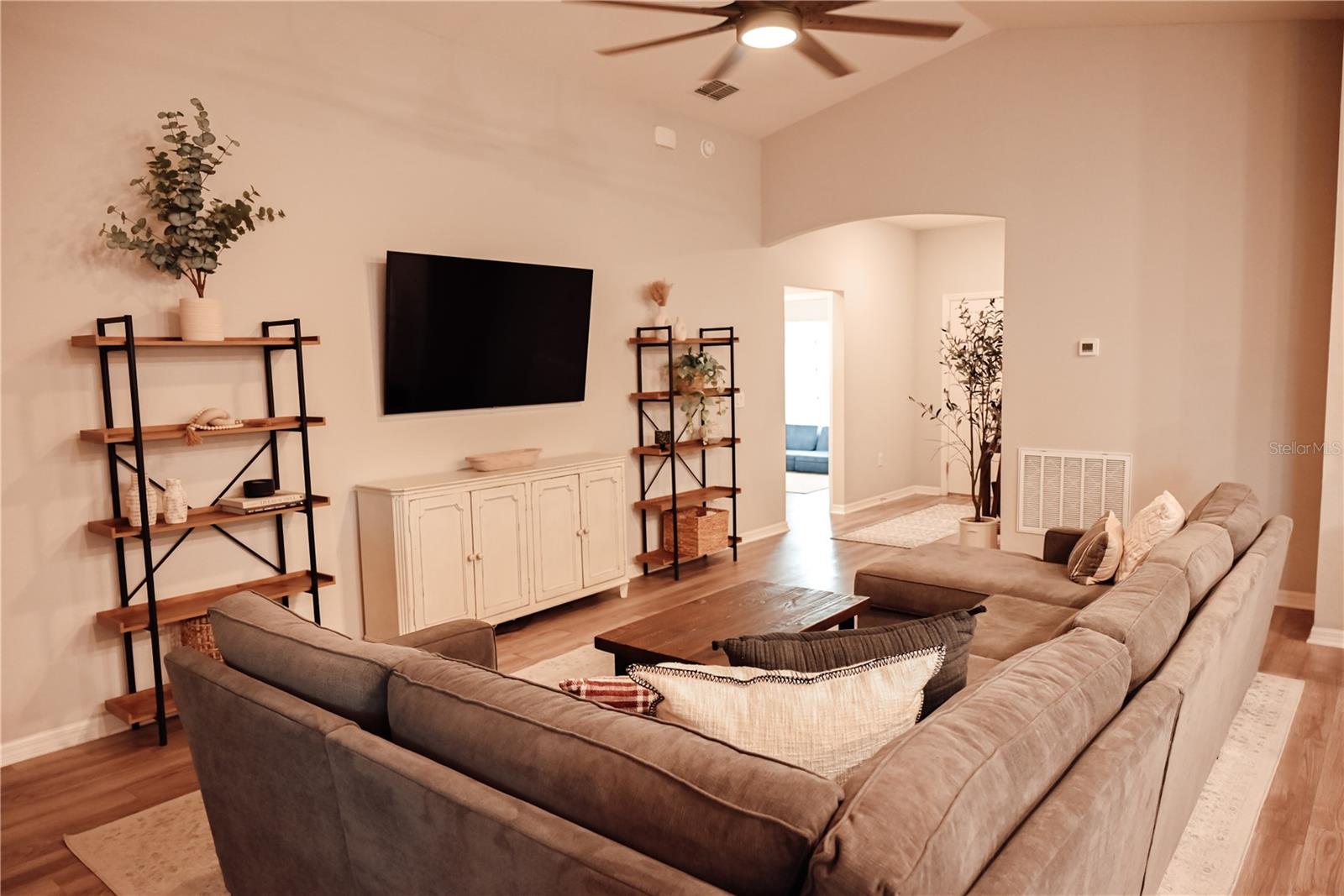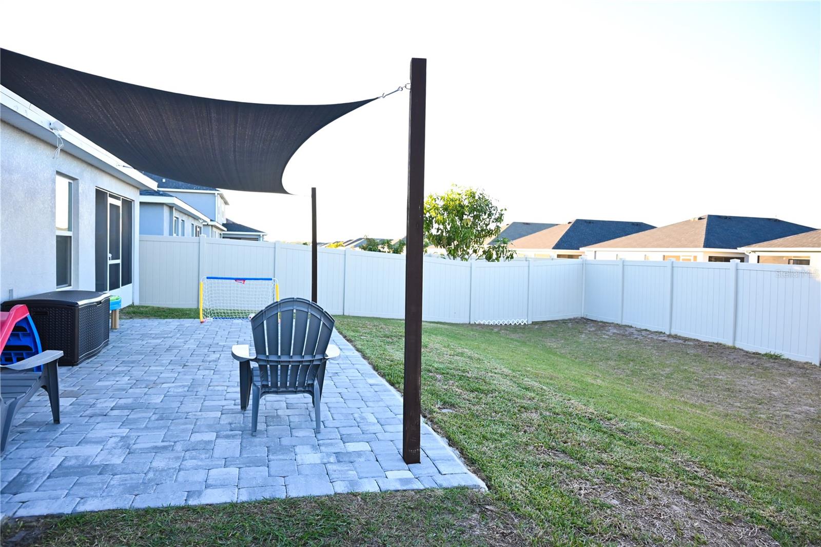 Why Wait to Build? Your Almost-New Dream Home is Ready! Step into this stunning 4-bedroom home that’s practically brand new and packed with features! Designed with an open floor plan and cathedral and tray ceilings, this home feels spacious, airy, and full of light. Gorgeous laminate flooring flows throughout, adding a touch of modern elegance. The kitchen is a showstopper with wood cabinets, a super-large island perfect for entertaining, and a walk-in pantry for all your storage needs. Ceiling fans throughout the home keep every room cool and comfortable. The expansive master suite features a luxurious bathroom, a large walk-in closet, and plenty of space to unwind. Convenience meets style with an inside laundry room equipped with a built-in desk and a large garage with attic storage. Outdoor living is a dream here, thanks to a screened lanai, a spacious patio with a sunshade, and a large backyard complete with new vinyl privacy fencing. Blinds are installed throughout the home, making it move-in ready. Located close to shopping and offering an easy commute to Orlando and Tampa, this home truly has it all. Why wait? Schedule your showing today and make this gorgeous home yours!