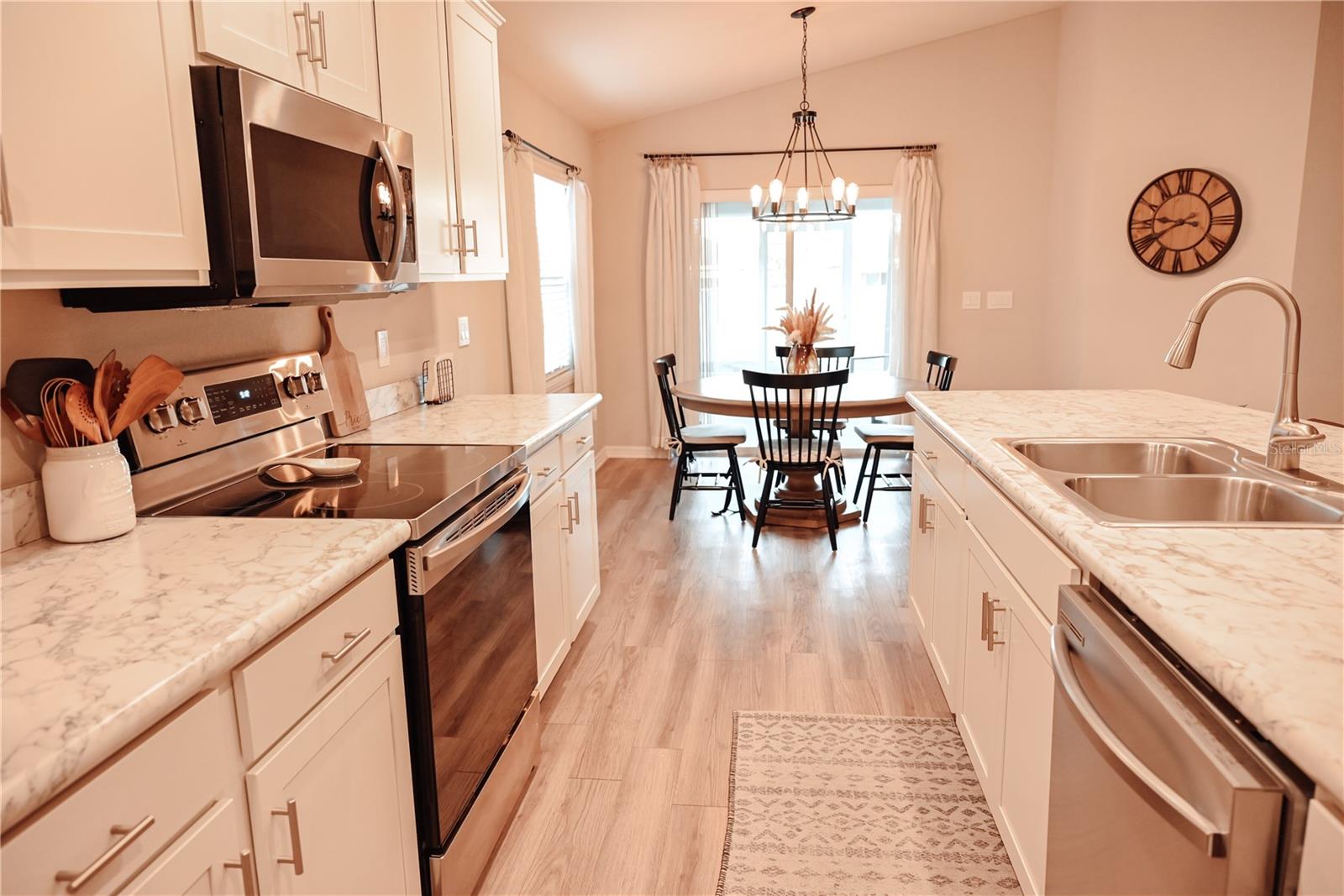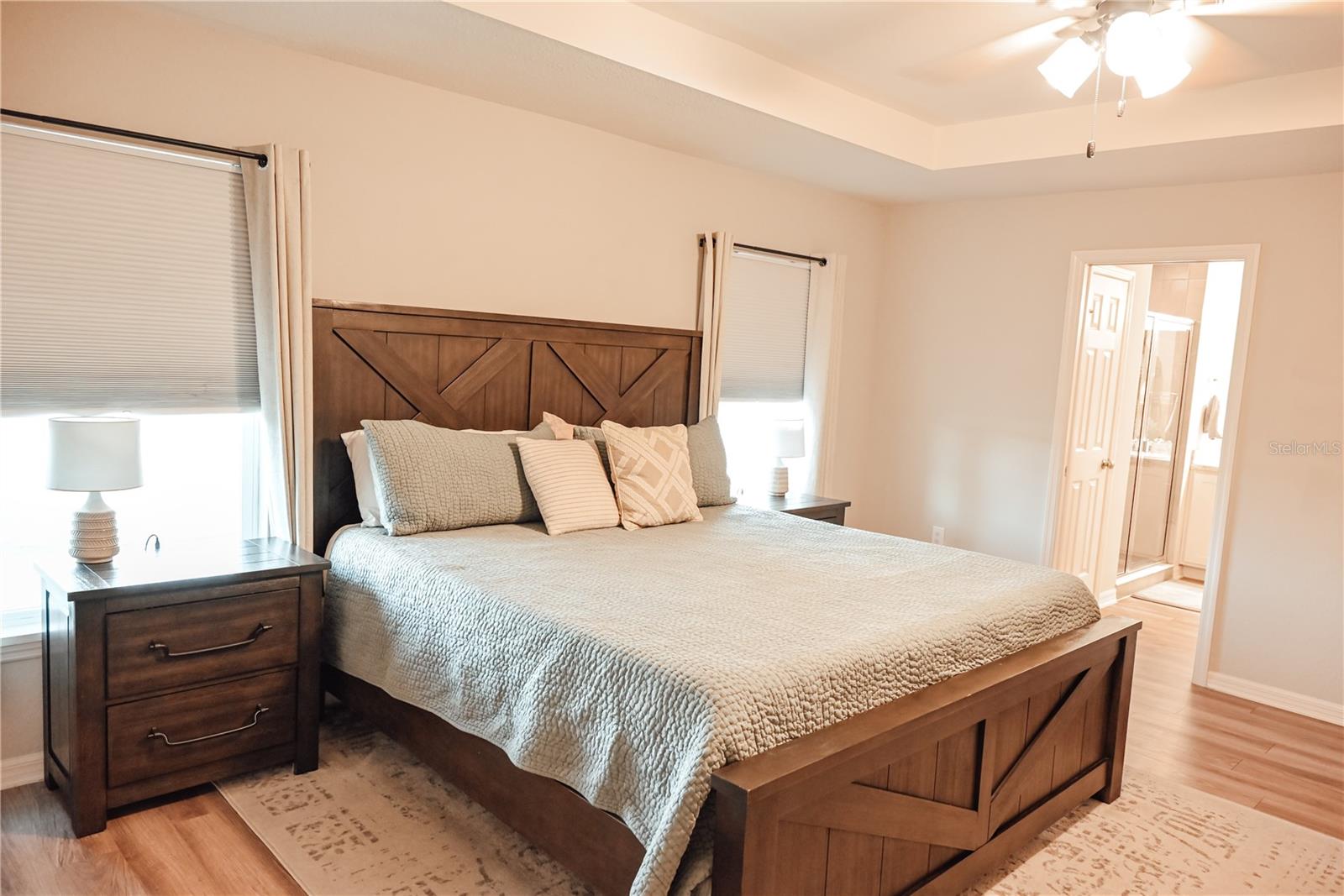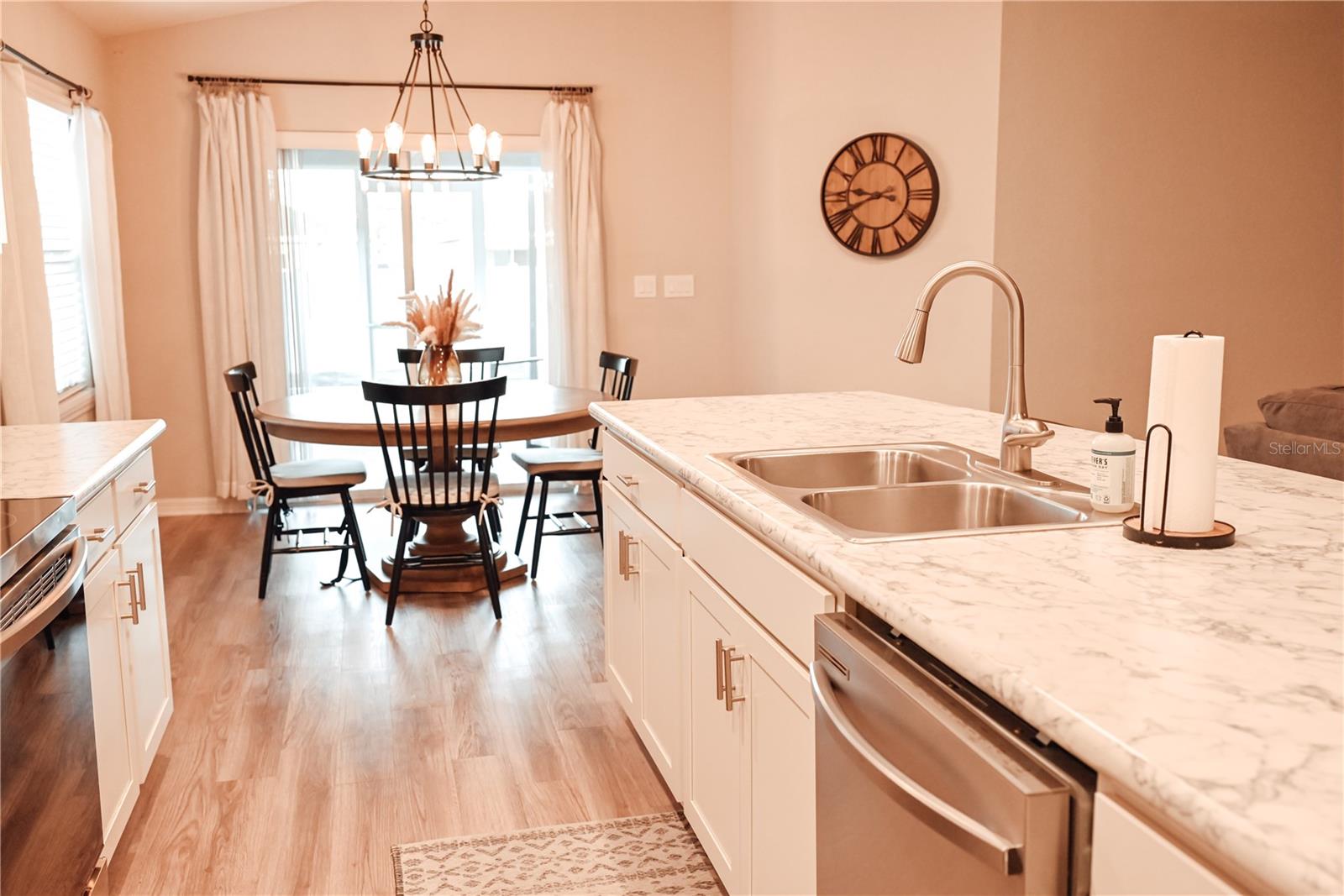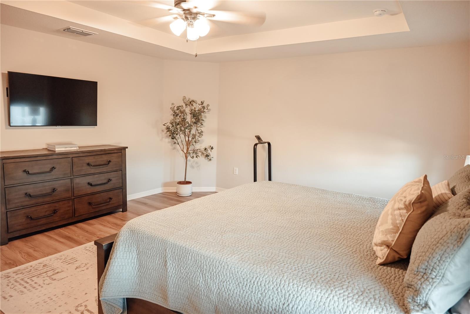 Why Wait to Build? Your Almost-New Dream Home is Ready! Step into this stunning 4-bedroom home that’s practically brand new and packed with features! Designed with an open floor plan and cathedral and tray ceilings, this home feels spacious, airy, and full of light. Gorgeous laminate flooring flows throughout, adding a touch of modern elegance. The kitchen is a showstopper with wood cabinets, a super-large island perfect for entertaining, and a walk-in pantry for all your storage needs. Ceiling fans throughout the home keep every room cool and comfortable. The expansive master suite features a luxurious bathroom, a large walk-in closet, and plenty of space to unwind. Convenience meets style with an inside laundry room equipped with a built-in desk and a large garage with attic storage. Outdoor living is a dream here, thanks to a screened lanai, a spacious patio with a sunshade, and a large backyard complete with new vinyl privacy fencing. Blinds are installed throughout the home, making it move-in ready. Located close to shopping and offering an easy commute to Orlando and Tampa, this home truly has it all. Why wait? Schedule your showing today and make this gorgeous home yours!