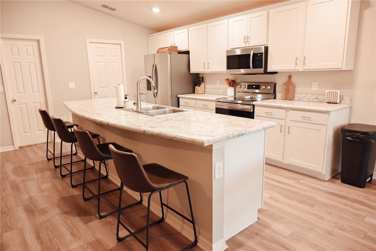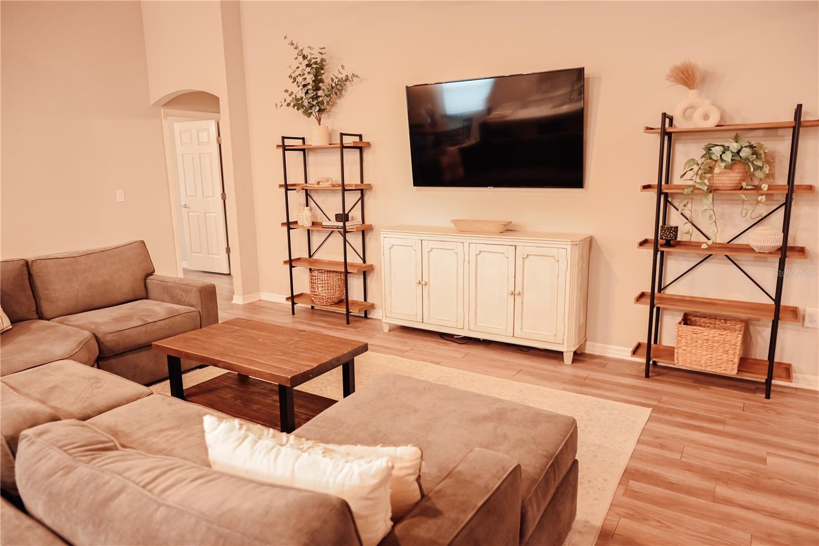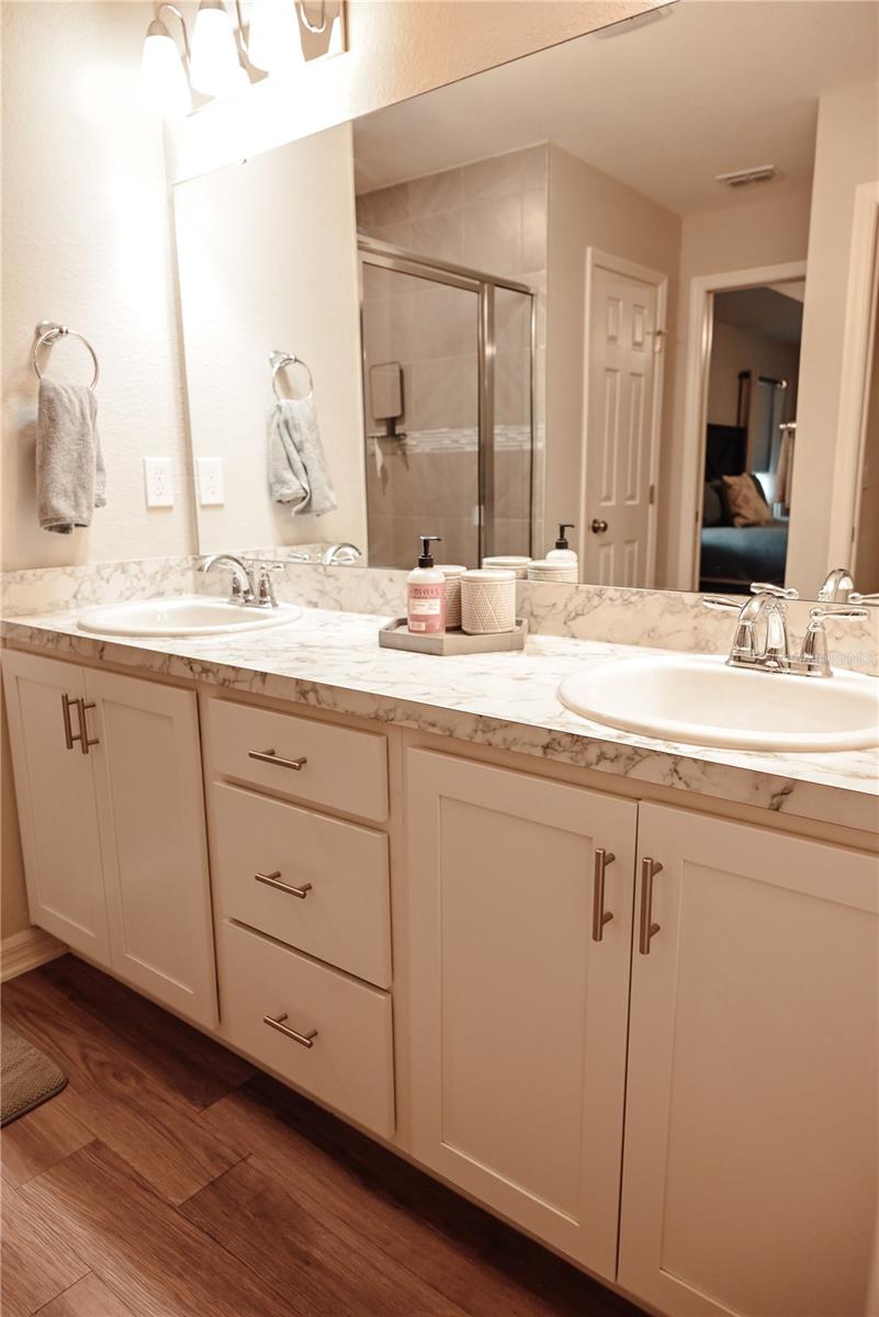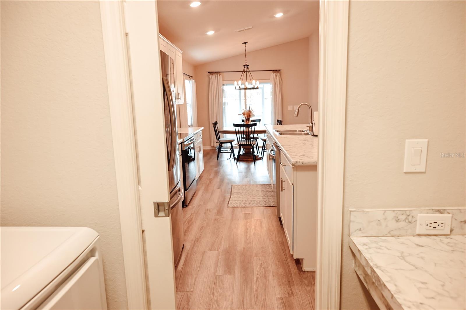 Why Wait to Build? Your Almost-New Dream Home is Ready! Step into this stunning 4-bedroom home that’s practically brand new and packed with features! Designed with an open floor plan and cathedral and tray ceilings, this home feels spacious, airy, and full of light. Gorgeous laminate flooring flows throughout, adding a touch of modern elegance. The kitchen is a showstopper with wood cabinets, a super-large island perfect for entertaining, and a walk-in pantry for all your storage needs. Ceiling fans throughout the home keep every room cool and comfortable. The expansive master suite features a luxurious bathroom, a large walk-in closet, and plenty of space to unwind. Convenience meets style with an inside laundry room equipped with a built-in desk and a large garage with attic storage. Outdoor living is a dream here, thanks to a screened lanai, a spacious patio with a sunshade, and a large backyard complete with new vinyl privacy fencing. Blinds are installed throughout the home, making it move-in ready. Located close to shopping and offering an easy commute to Orlando and Tampa, this home truly has it all. Why wait? Schedule your showing today and make this gorgeous home yours!