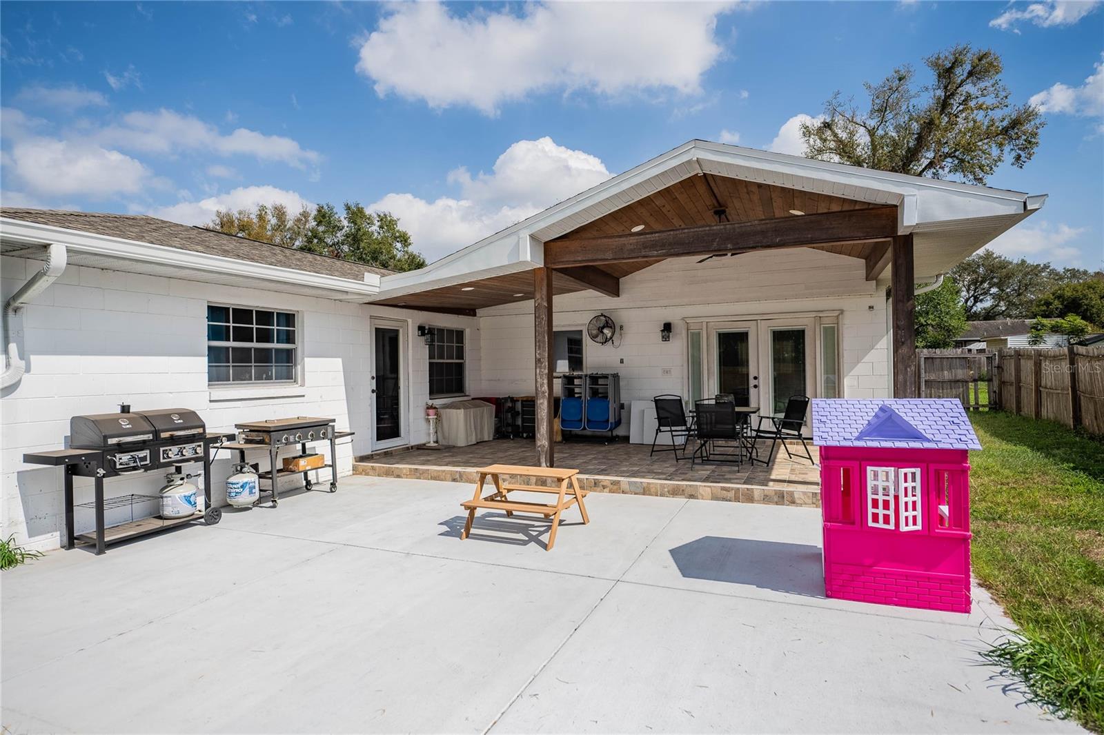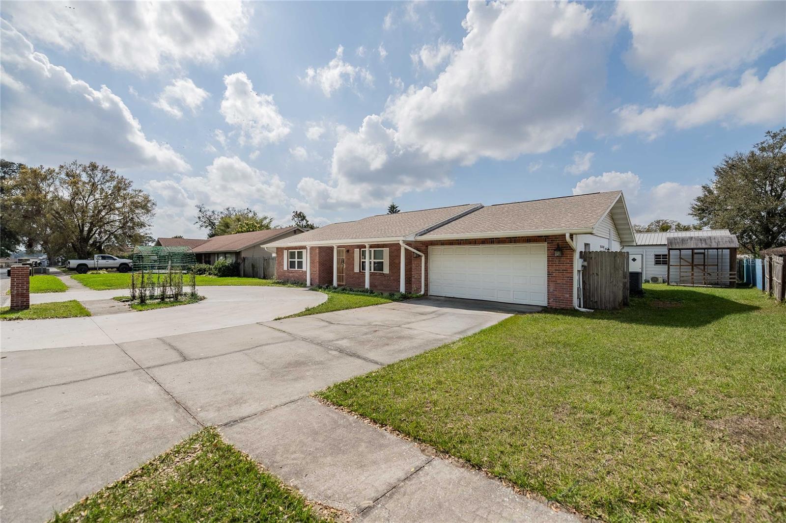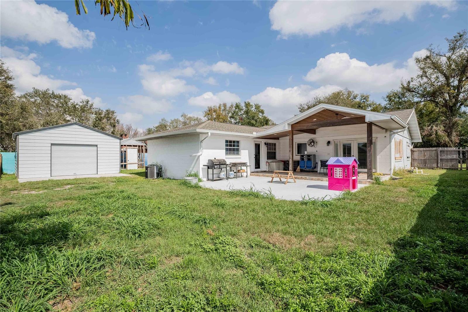 This beautifully updated home, centrally located between Orlando and Tampa, offers numerous modern upgrades. Features include Energy Star windows (2016), a new garage door (2019), roof (2020), and back porch (2020). The dining room French doors with inside blinds and a private entrance for the in-law suite were added in 2021. Kitchen appliances were updated in 2024, and the back bedroom features new French doors with inside blinds (2023). The backyard is perfect for entertaining with a 18x24 open patio with12x24 tile, and a 20x30 workshop pad with a 20x20 fully-equipped workshop (2024) with electricity and A/C. Additional upgrades include a new circle driveway (2024), shed pad (8x10), irrigation, and well pump. With a spacious layout, modern features, and a fantastic outdoor space, this home is a must-see!
