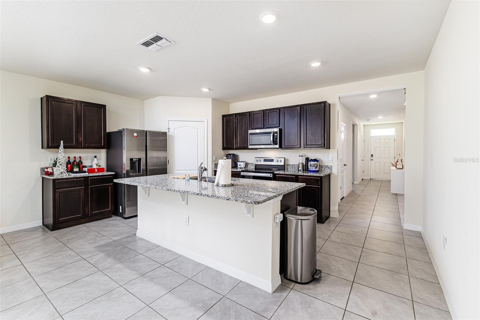 Welcome to this beautifully designed Cali Model home featuring 4 spacious bedrooms, 2 full bathrooms, and a 2-car garage, all thoughtfully arranged within 1,828 square feet of open living space. Enjoy a bright and airy open-concept layout that seamlessly connects the kitchen, living, and dining areas—perfect for entertaining guests or relaxing with family. The modern kitchen comes complete with stainless steel appliances, including a built-in microwave and dishwasher. The home offers a smart split-bedroom design, with two bedrooms located at the front and a private owner’s suite tucked away at the rear. The owner's suite includes a large walk-in closet, a double-sink vanity, and a stall shower for your comfort and convenience. Smart Home Technology is included, giving you the ability to control lighting, security, and more with your voice, smartphone, or the built-in smart panel. With stylish finishes, smart home technology, and a layout that flows effortlessly, this home truly shows like a model. Don’t miss your chance to own this move-in ready gem!