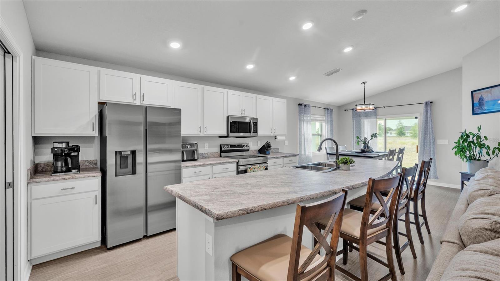 Seller is offering $10,000 toward buyer closing costs/rate buy-down with a full price offer. Don't wait for your new home to be built when you can move into this beautifully upgraded 2022-built Highland Homes in Winter Haven, FL — home of The Chain of Lakes, Legoland and water skiers! This 4-bedroom, 2-bathroom gem features the sought after Highland Home Parker floor plan with luxury vinyl flooring, a spacious open layout, and a large kitchen with an island — perfect for hosting family and friends. The kitchen includes a Samsung Smart-Capable stove and refrigerator, while the washer and dryer come with transferable warranties. Enjoy smart living with a Ring Doorbell, a Blink Camera System, and a Google Nest thermostat already in place. Step onto the inviting front porch or relax in the backyard with stunning views of Legoland Fireworks lighting up the evening sky. Located in a vibrant community offering resort-style amenities including a pool, cabana, and park — everything you need is right here. Don’t miss this opportunity to own a move-in ready home with high-end features and a fantastic location. This is the opportunity you’ve been waiting for. Schedule your private showing today and make this Winter Haven gem your home!