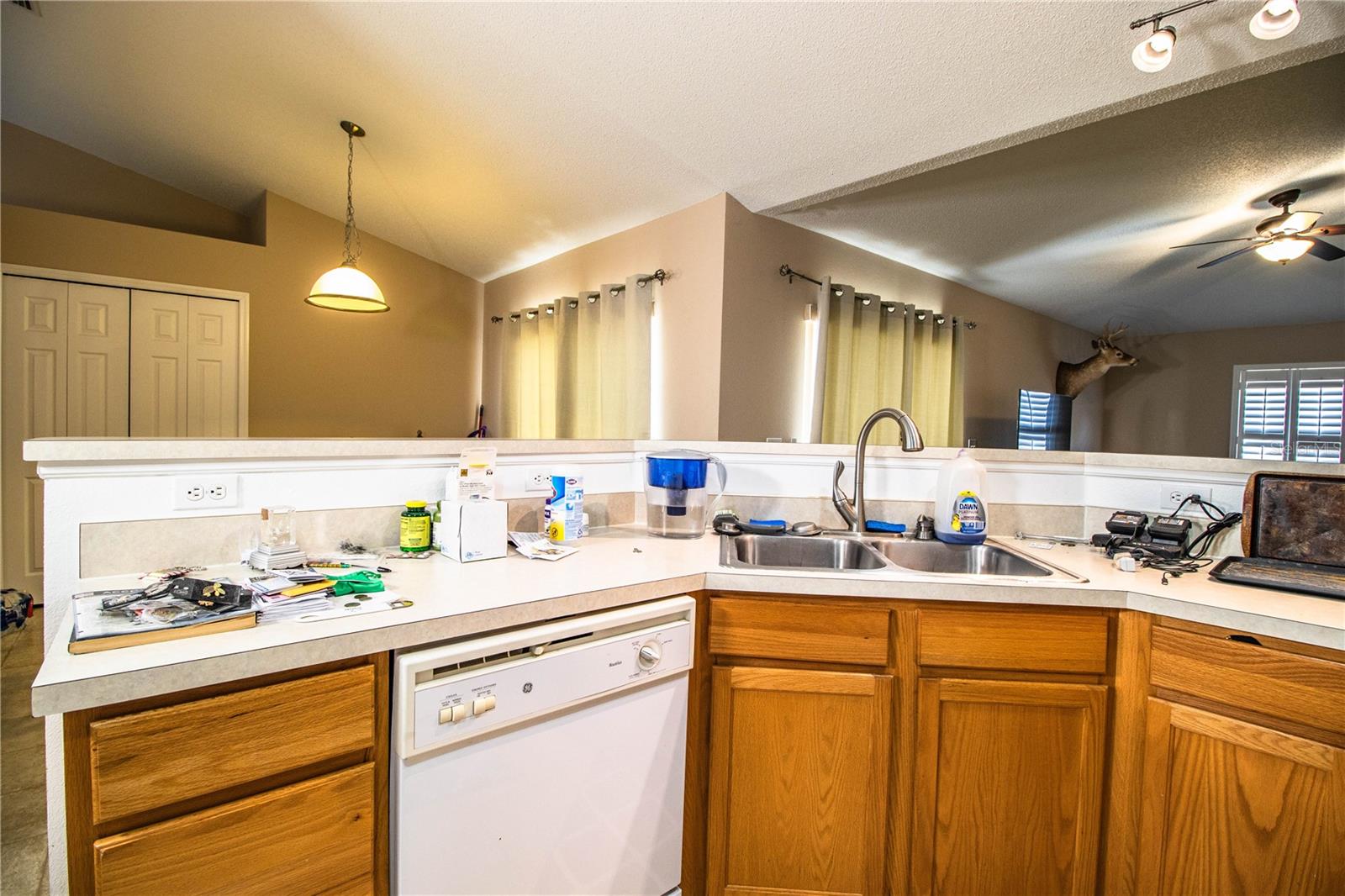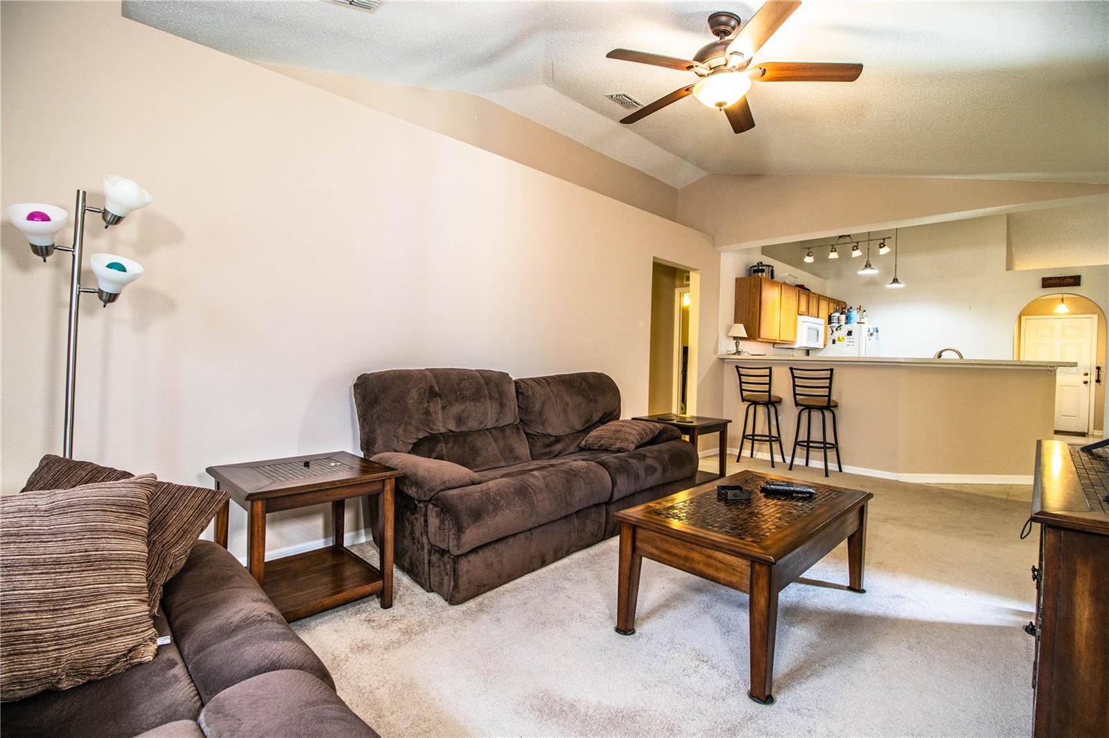 Welcome to your move-in-ready dream home! This charming 3-bedroom, 2-bathroom split-family residence features a spacious living room serves as the heart of the home, providing a seamless flow into the primary bedroom, which boasts an ensuite bathroom and a walk-in closet for maximum convenience. Just off the living room, you'll find a well-designed kitchen, complete with all major appliances, perfect for meal preparation and entertaining. The adjacent dining room offers direct access to the backyard with no rear neighbors overlooking a ranch, creating an ideal setting for outdoor gatherings or quiet relaxation. For even more living space, family room sits just off the kitchen, providing easy access to the backyard as well, making indoor-outdoor living a breeze. Bedrooms 2 and 3 are thoughtfully tucked away off the family room, sharing a conveniently located full bathroom. The nearby laundry room adds to the home's functional layout, ensuring practicality and ease of living. With its open floor plan and quiet outdoor space, this home is perfect for families seeking both comfort and convenience. Located just minutes from Polk parkway, shopping, grocery stores, and only 20 minutes from LEGOLAND, this home offers everything you need for easy, everyday living. Don't miss your chance to make this beautiful property your own!