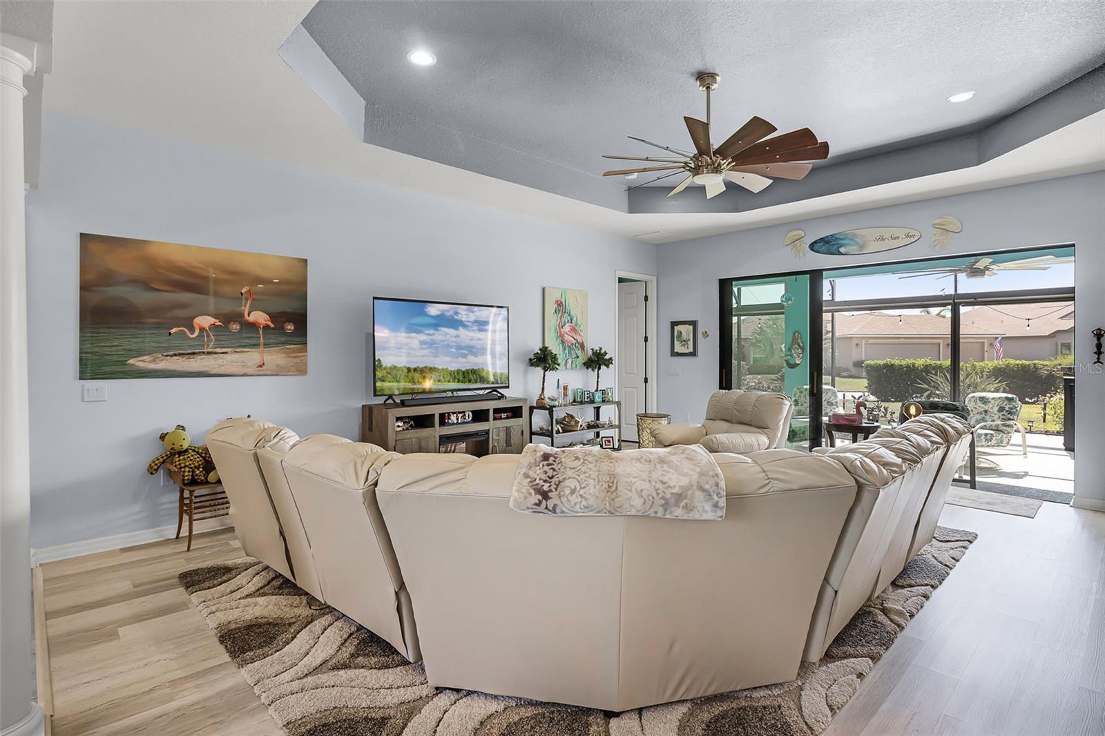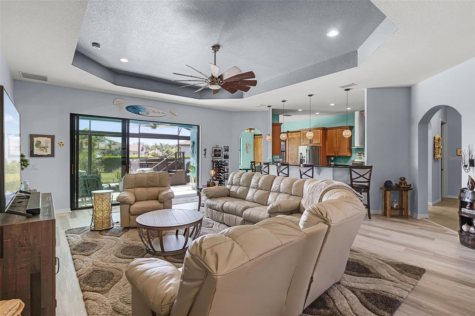 Back on market! Buyer(s) contingency fell through. Discover an exceptional home for sale in the beautiful Lake Ashton Golf course community, which offers 24-hour security for peace of mind. This Ashton floor plan, with 2606 SqFt of living is thoughtfully designed with three bedrooms, two full baths, a den, and a flex room, providing ample space for both relaxation and entertainment. Step inside to find stunning laminate flooring and tile throughout, enhancing the home's aesthetic appeal. The gourmet kitchen is a chef's delight, featuring soft-close solid wood 42-inch cabinets with elegant crown molding, stainless steel appliances, and luxurious granite countertops. The kitchen also boasts a beautiful vented hood, double convection ovens, and a microwave, making it perfect for culinary enthusiasts. The master bathroom is a haven of comfort, showcasing custom closets and a beautifully designed shower. The outdoor oversized lanai is truly breathtaking, complete with an outdoor kitchen featuring a stainless steel grill. This space is ideal for relaxation or exercise, highlighted by a Veranda 10-person hybrid swim spa. For added convenience and privacy, the patio includes remote control roller shades. This home also features beautiful upgraded landscaping and an upgraded irrigation system, ensuring a vibrant exterior. Energy efficiency is a priority with PAID OFF solar panels that come with a transferable warranty, while the oversized garage includes golf cart parking for added convenience. This home also features a generator that powers the entire house, ensuring comfort and convenience even during outages. Additionally the Sellers are willing to negotiate the furniture in the home. With so many thoughtful upgrades, this home is a must-see to truly appreciate its beauty and functionality. Don’t miss the chance to make it yours. Call today for your private showing!!!