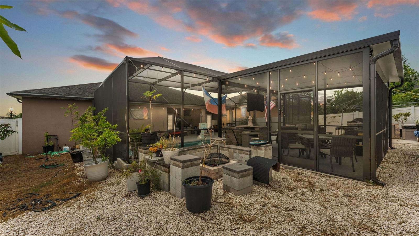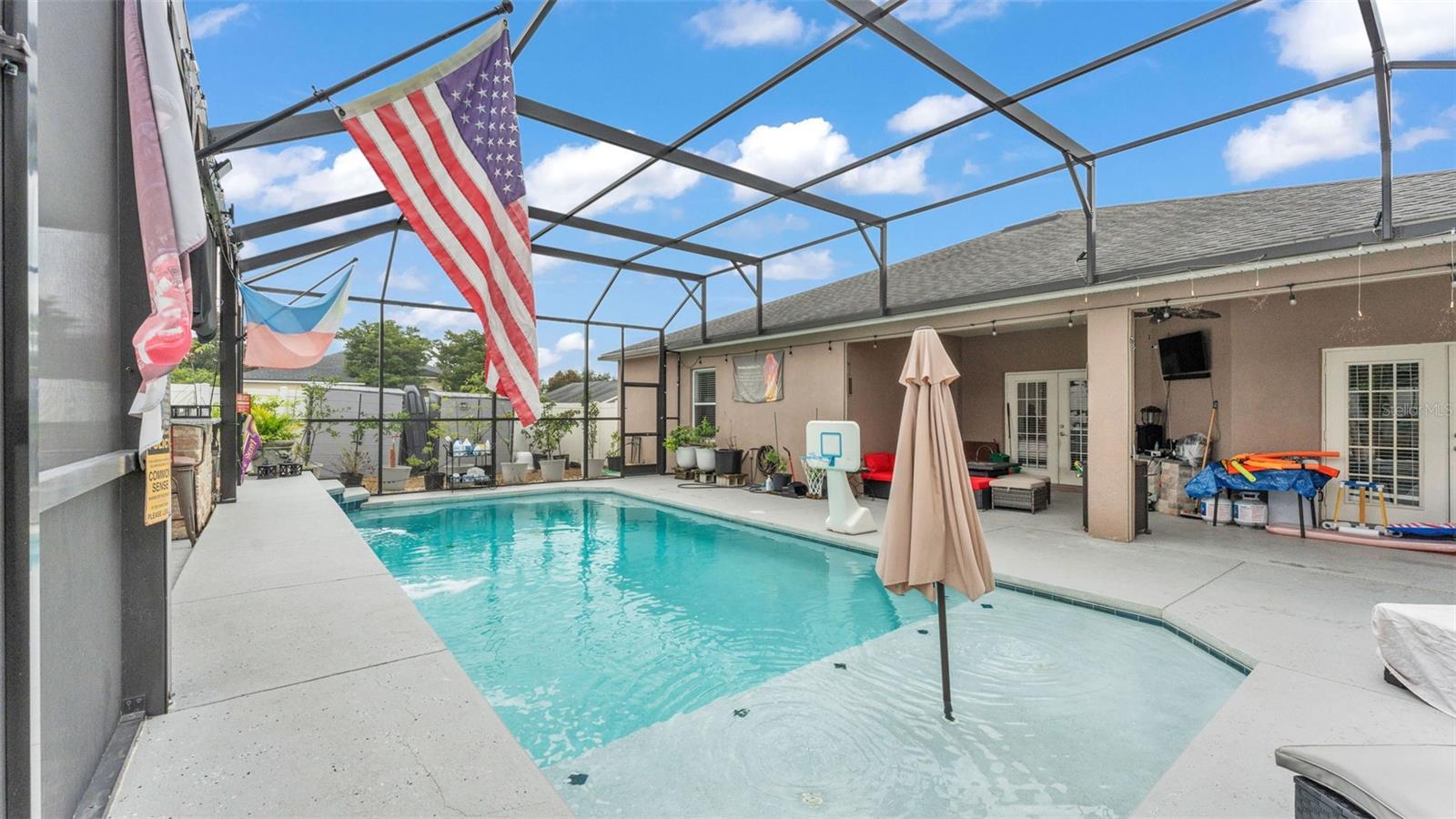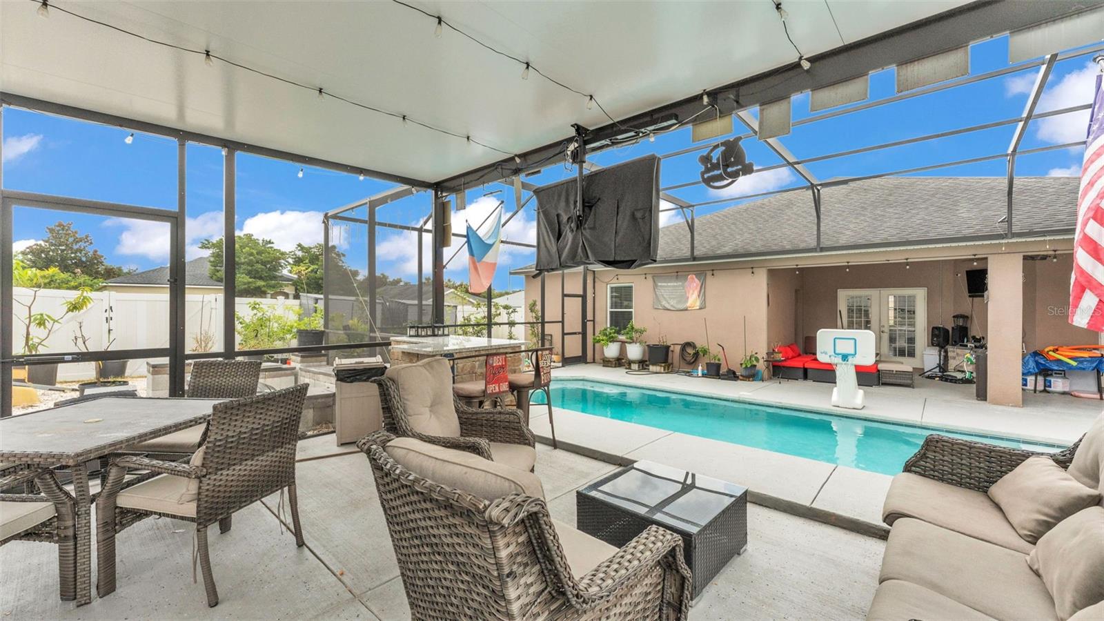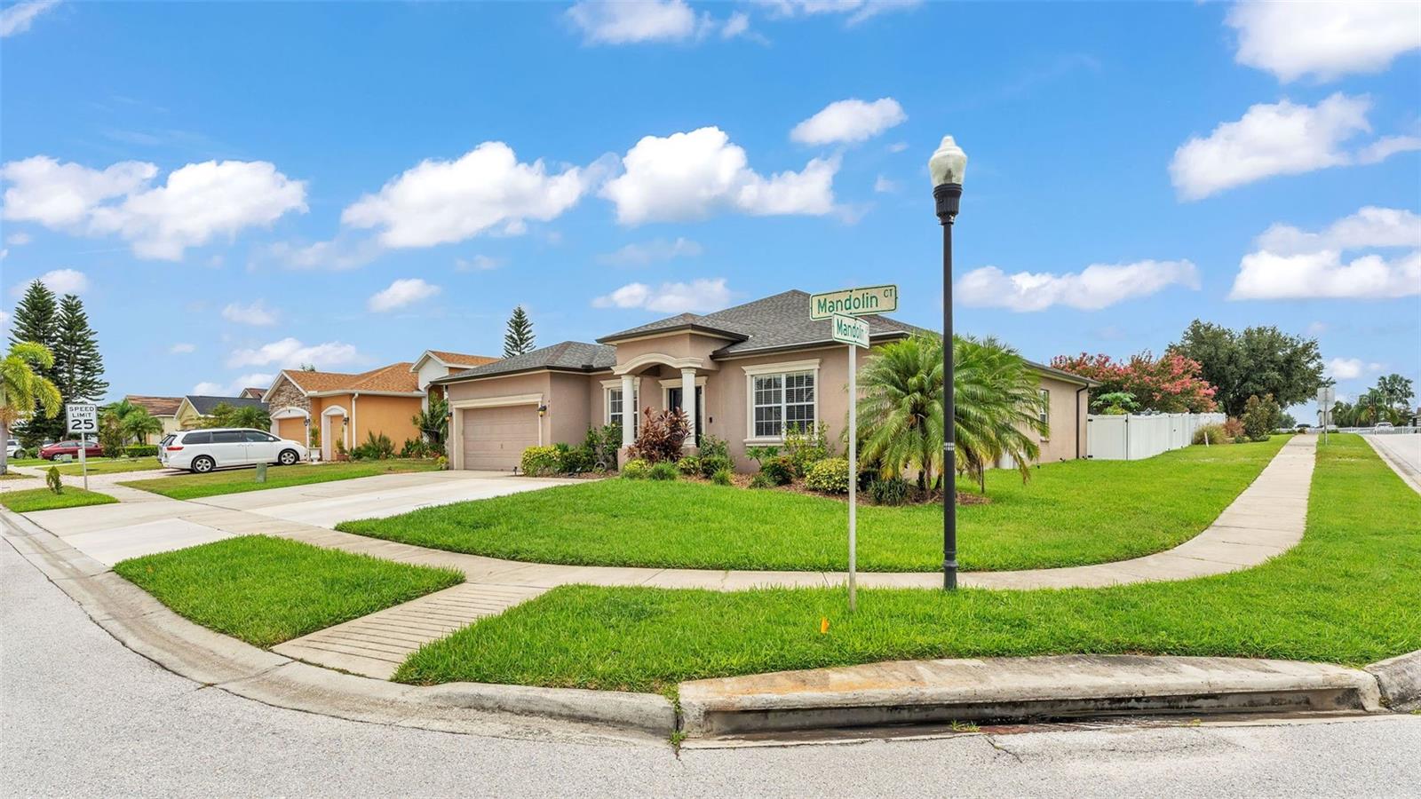 Welcome to this stunning 4-bedroom, 3-bathroom home with a dedicated office and a sparkling inground saltwater pool, nestled in the gated community of Mandolin. From the moment you step inside, you’ll appreciate the seamless flow of laminate flooring throughout—offering a clean, carpet-free living experience. The heart of the home is the spacious, open-concept kitchen, featuring stone countertops, stainless steel appliances including a brand-new top-of-the-line refrigerator and double convection oven, and ample cabinetry and counter space. The kitchen overlooks a generously sized living room, making it perfect for everyday living and entertaining alike. The split-bedroom layout offers privacy and functionality. The primary suite boasts walk-in closets and an ensuite bath with dual sinks, a relaxing soaking tub, and a walk-in tiled shower. Two additional bedrooms are located on the opposite side of the home and share a well-appointed second bathroom, while a separate fourth bedroom offers access to its own third bathroom—ideal for guests or multigenerational living. At the front of the home, a versatile flex space serves perfectly as an office, den, or game room. Step outside to your own private retreat: a screened-in patio with an inground saltwater pool, complete with a built-in outdoor kitchen and bar—an entertainer’s dream. Recent upgrades include a new pool pump and replaced salt cell, providing added comfort and peace of mind. Situated on a corner lot and conveniently located near shopping, dining, and everyday conveniences, this home offers comfort, style, and practicality in one of the area’s most sought-after neighborhoods. *SELLER TO INSTALL BRAND NEW ROOF PRIOR TO CLOSING*