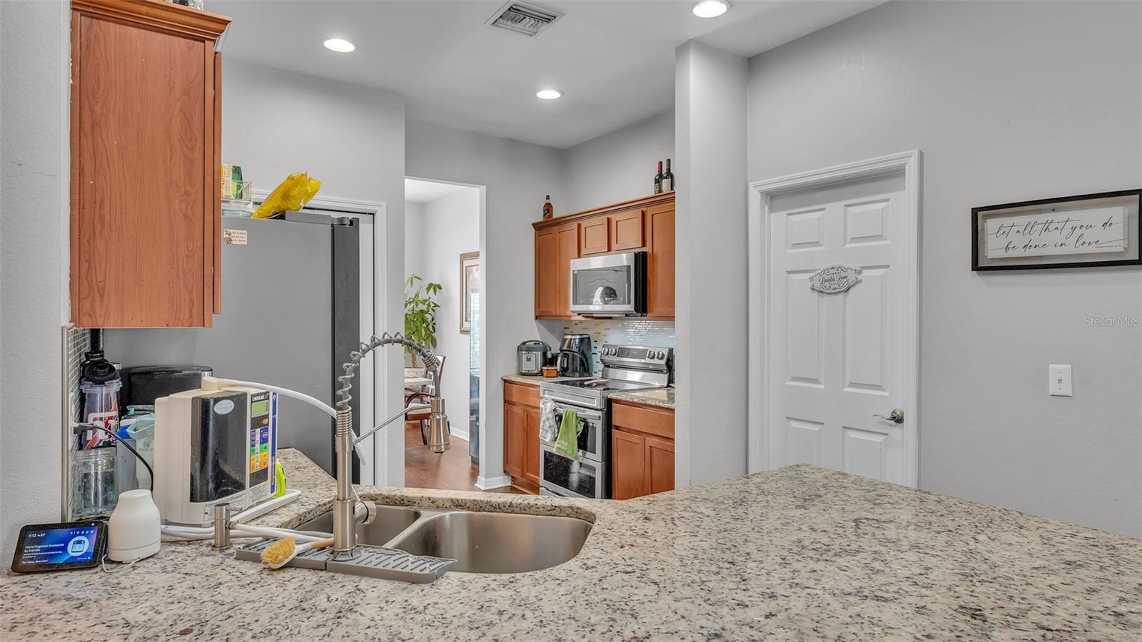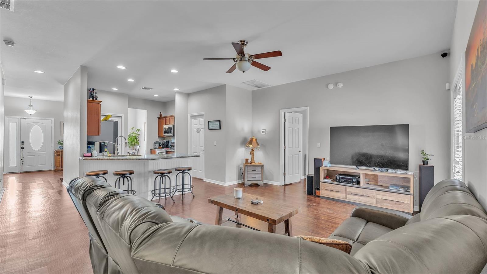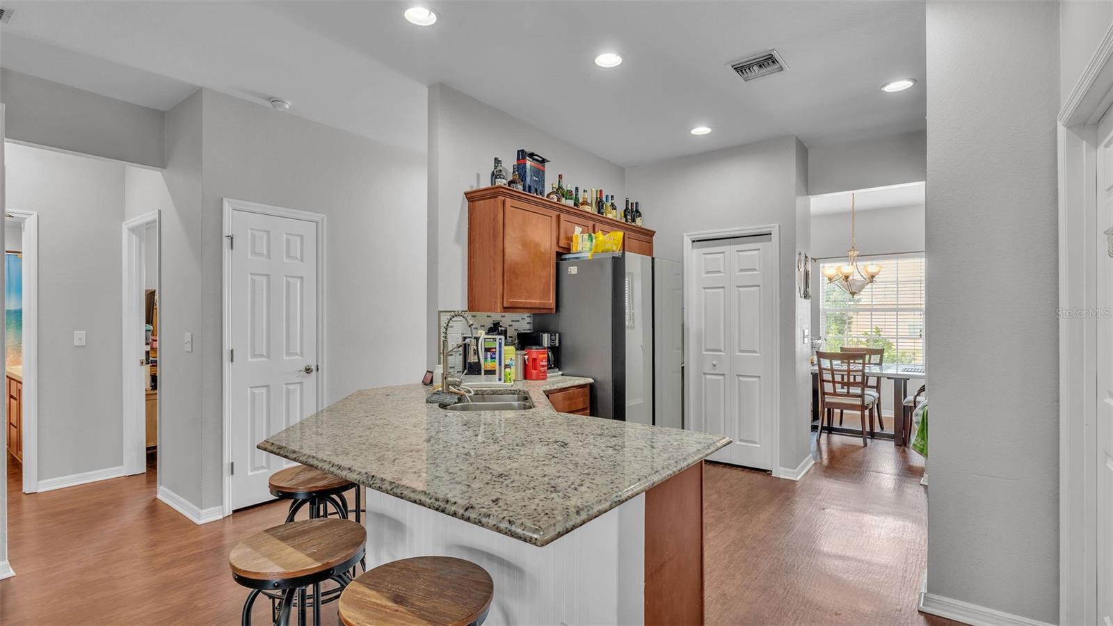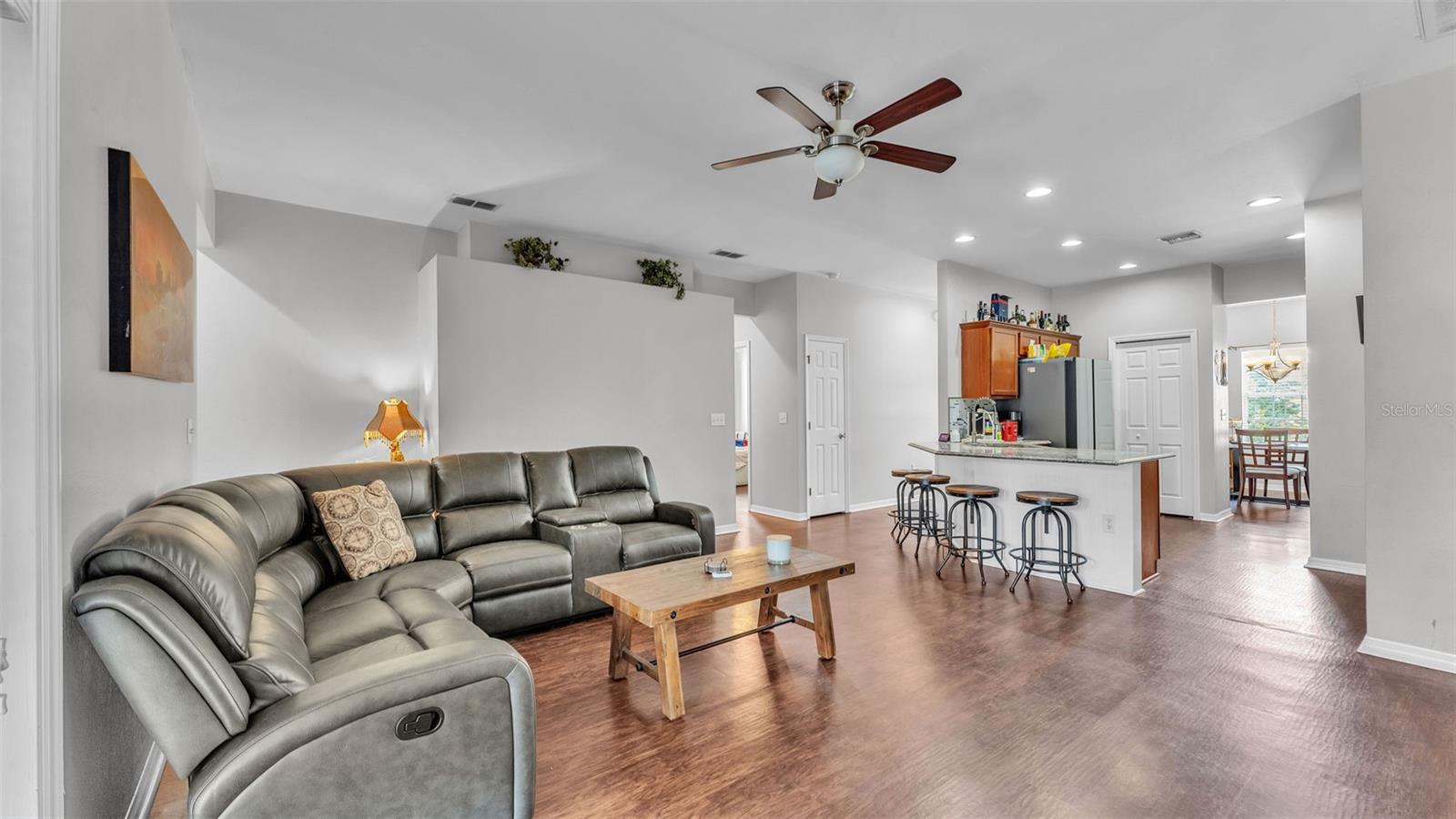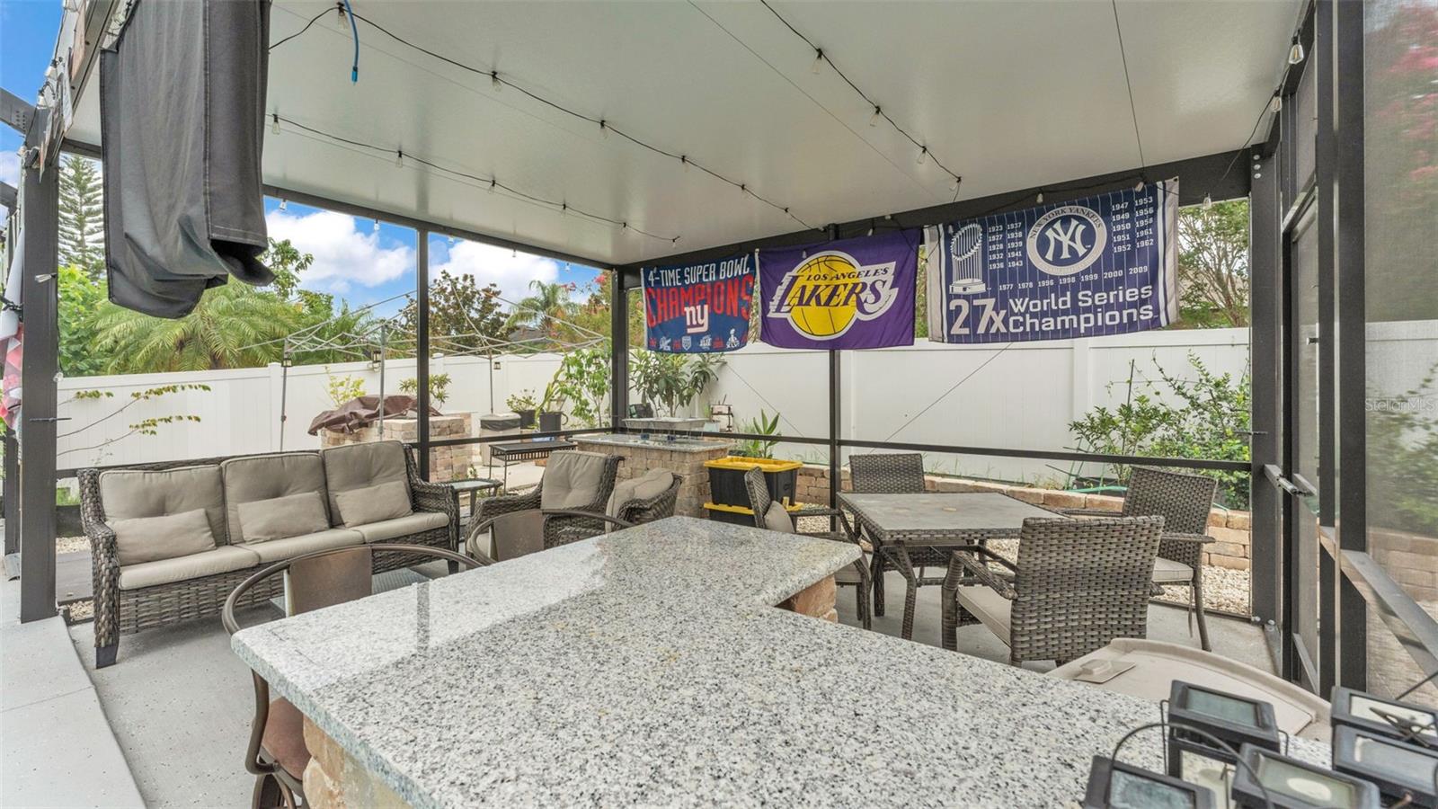 Welcome to this stunning 4-bedroom, 3-bathroom home with a dedicated office and a sparkling inground saltwater pool, nestled in the gated community of Mandolin. From the moment you step inside, you’ll appreciate the seamless flow of laminate flooring throughout—offering a clean, carpet-free living experience. The heart of the home is the spacious, open-concept kitchen, featuring stone countertops, stainless steel appliances including a brand-new top-of-the-line refrigerator and double convection oven, and ample cabinetry and counter space. The kitchen overlooks a generously sized living room, making it perfect for everyday living and entertaining alike. The split-bedroom layout offers privacy and functionality. The primary suite boasts walk-in closets and an ensuite bath with dual sinks, a relaxing soaking tub, and a walk-in tiled shower. Two additional bedrooms are located on the opposite side of the home and share a well-appointed second bathroom, while a separate fourth bedroom offers access to its own third bathroom—ideal for guests or multigenerational living. At the front of the home, a versatile flex space serves perfectly as an office, den, or game room. Step outside to your own private retreat: a screened-in patio with an inground saltwater pool, complete with a built-in outdoor kitchen and bar—an entertainer’s dream. Recent upgrades include a new pool pump and replaced salt cell, providing added comfort and peace of mind. Situated on a corner lot and conveniently located near shopping, dining, and everyday conveniences, this home offers comfort, style, and practicality in one of the area’s most sought-after neighborhoods. *SELLER TO INSTALL BRAND NEW ROOF PRIOR TO CLOSING*