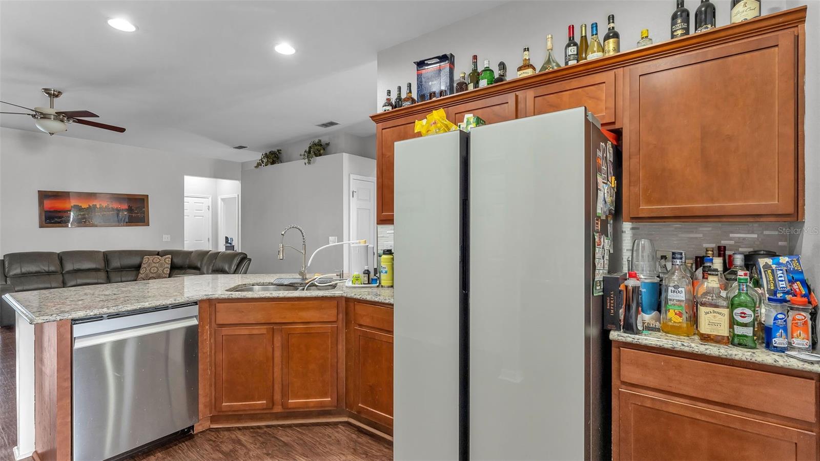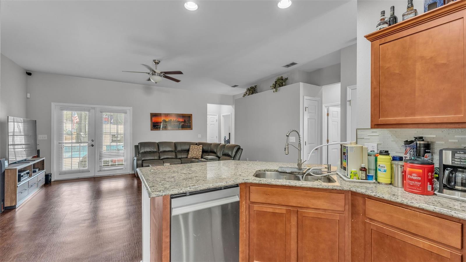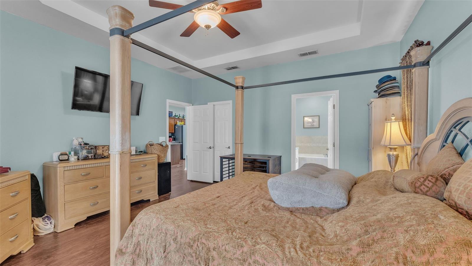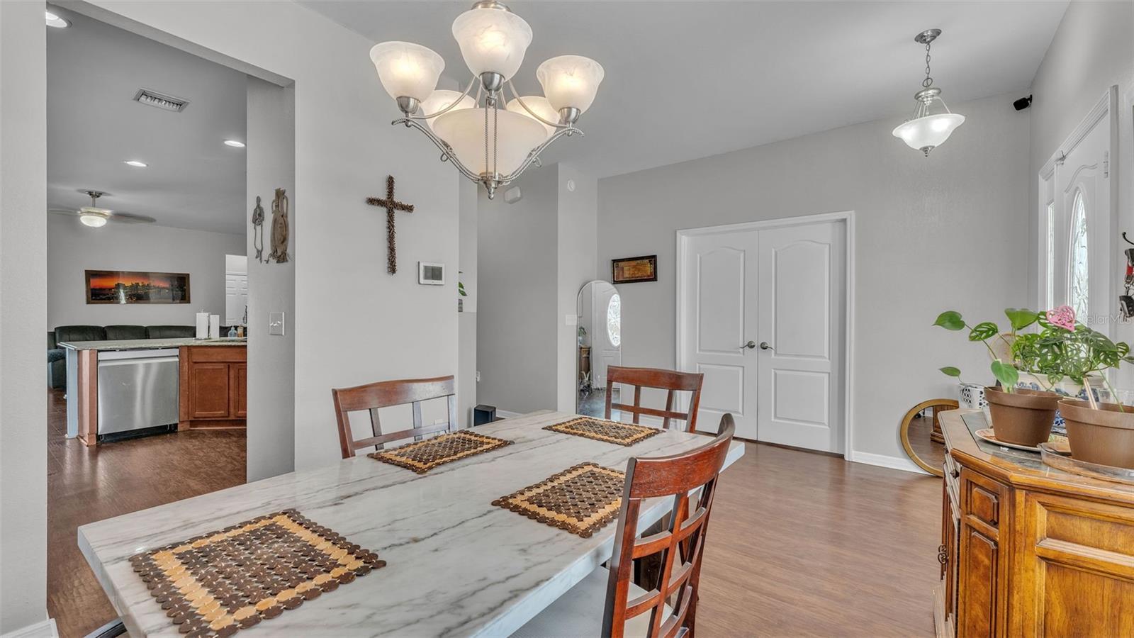Welcome to this stunning 4-bedroom, 3-bathroom home with a dedicated office and a sparkling inground saltwater pool, nestled in the gated community of Mandolin. From the moment you step inside, you’ll appreciate the seamless flow of laminate flooring throughout—offering a clean, carpet-free living experience. The heart of the home is the spacious, open-concept kitchen, featuring stone countertops, stainless steel appliances including a brand-new top-of-the-line refrigerator and double convection oven, and ample cabinetry and counter space. The kitchen overlooks a generously sized living room, making it perfect for everyday living and entertaining alike. The split-bedroom layout offers privacy and functionality. The primary suite boasts walk-in closets and an ensuite bath with dual sinks, a relaxing soaking tub, and a walk-in tiled shower. Two additional bedrooms are located on the opposite side of the home and share a well-appointed second bathroom, while a separate fourth bedroom offers access to its own third bathroom—ideal for guests or multigenerational living. At the front of the home, a versatile flex space serves perfectly as an office, den, or game room. Step outside to your own private retreat: a screened-in patio with an inground saltwater pool, complete with a built-in outdoor kitchen and bar—an entertainer’s dream. Recent upgrades include a new pool pump and replaced salt cell, providing added comfort and peace of mind. Situated on a corner lot and conveniently located near shopping, dining, and everyday conveniences, this home offers comfort, style, and practicality in one of the area’s most sought-after neighborhoods. *SELLER TO INSTALL BRAND NEW ROOF PRIOR TO CLOSING*