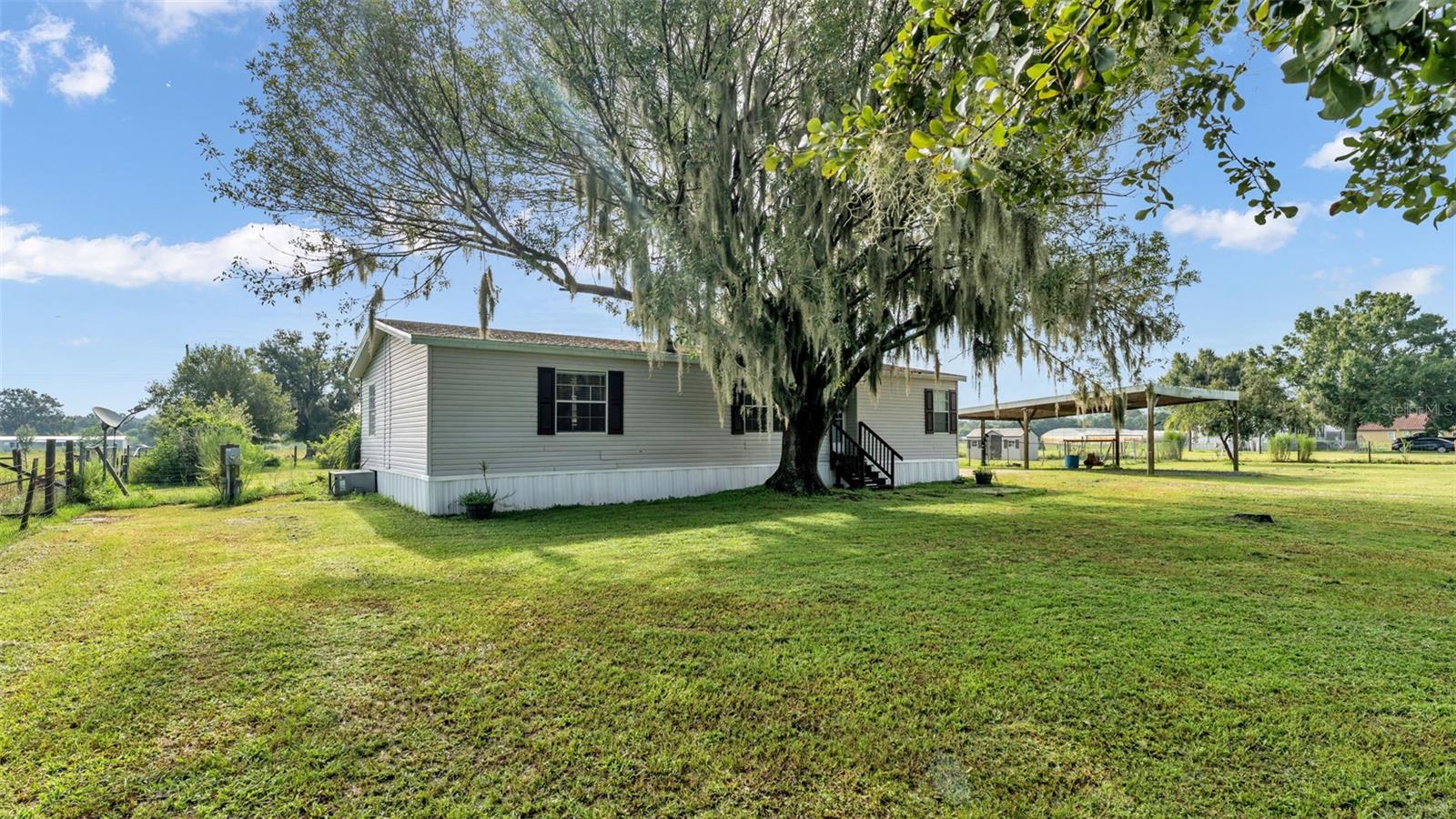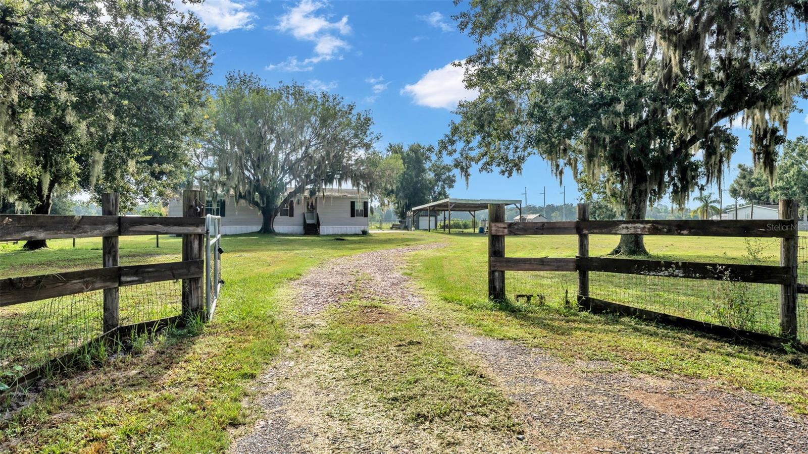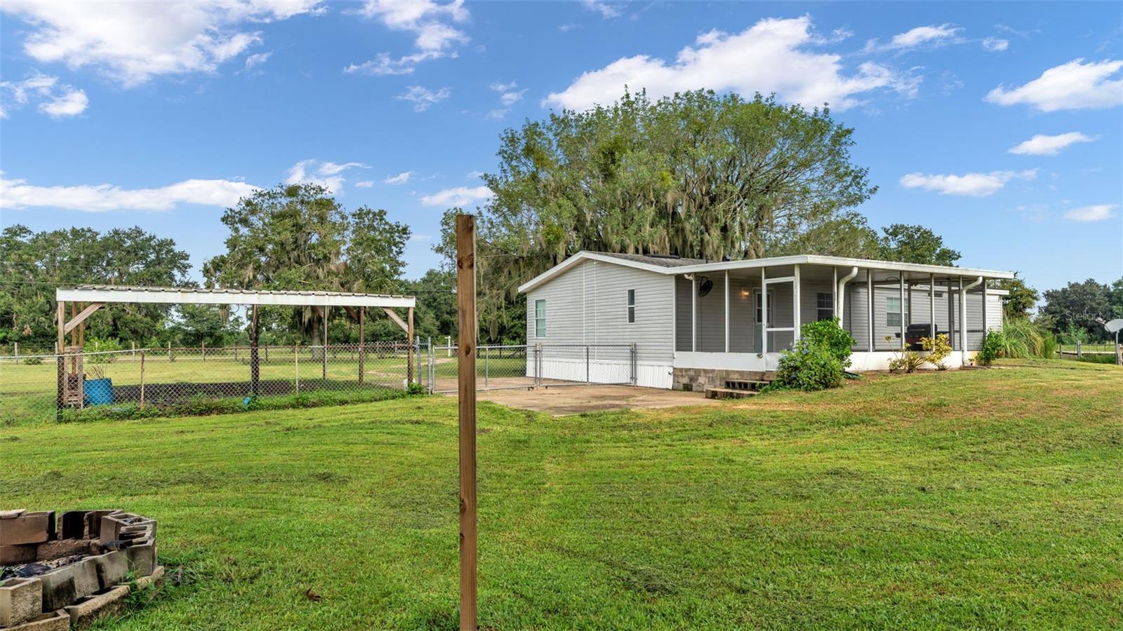 One or more photo(s) has been virtually staged. Nearly 5 acres of fenced and cross-fenced land offering privacy and room to spread out. This 3 bedroom, 2 bath split plan home features an open living and dining area filled with natural light and a large screened lanai overlooking the property. The private primary suite includes a walk-in closet, granite counters, soaking tub, and separate shower. Two additional bedrooms share a hall bath, and there is an indoor laundry for convenience. Outside you’ll find a 2-car carport and detached garage/workshop, plus plenty of space for animals, gardens, or outdoor projects. This corner lot property gives you the freedom of country living while still being just minutes from shopping, dining, and major roadways.