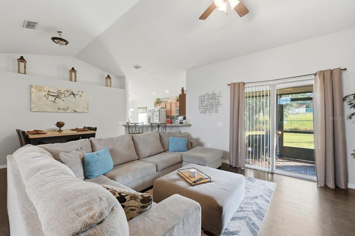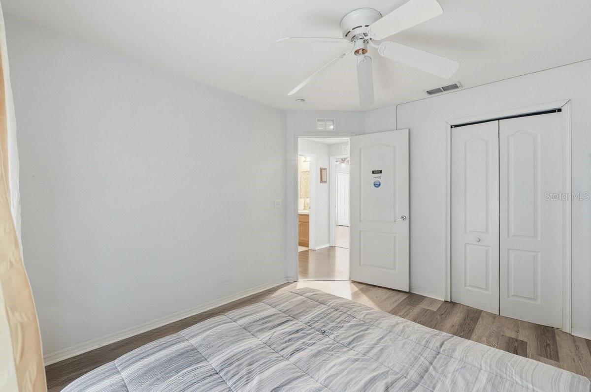 Situated within a gated community, this refined single-story residence offers a thoughtfully designed split-bedroom layout that balances privacy, comfort, and everyday livability. The open-concept living and dining spaces are enhanced by wood-look luxury vinyl plank flooring, creating a clean, modern aesthetic ideal for both entertaining and relaxed daily living.** ROOF 5 YEARS OLD. The privately positioned primary suite provides a comfortable retreat with ample space for king-size furnishings, a walk-in closet, and an en-suite bath. Secondary bedrooms are discreetly separated and share a well-appointed hall bath, offering flexibility for guests, family members, or a dedicated home office. A screened porch extends the living space outdoors, providing a tranquil setting to unwind or host gatherings year-round. Additional features include an attached garage, interior laundry room, and neutral finishes throughout, making this home truly move-in ready.