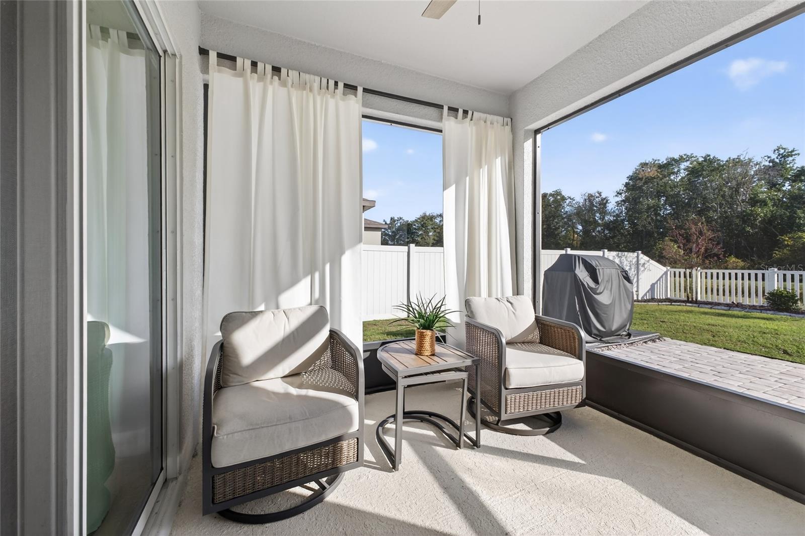 A well maintained 2023 Built home nestled in one of Winter Haven's most desirable areas. This 4 Bedroom 2 bathroom home sits on a FULLY FENCED and landscaped premier lot that feels like your own private retreat. No rear neighbors, just peaceful views, designed for quiet mornings, four legged friends and the sounds of birds chirping. Inside, the open and airy split floor plan gives everyone their own space while keeping the heart of the home open and connected. The kitchen, dining and living areas flow naturally together making everyday life feel easy and gatherings feel effortless. Step out to the screened lanai soaking in fresh air, privacy and a backyard that's ready for you! The home is also equipped with a security system valued at approximately $4,000 and can be activated through Guardian. If you're looking for a newer home in a location that feels tucked away yet close to everything Winter Haven offers, this one checks all the boxes. Move-in ready, thoughtfully designed and sitting on the kind of lot buyers hope for but rarely find.