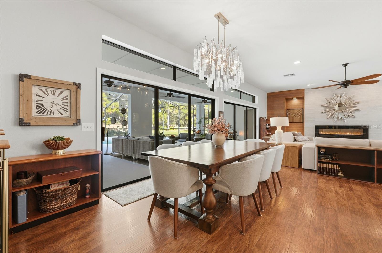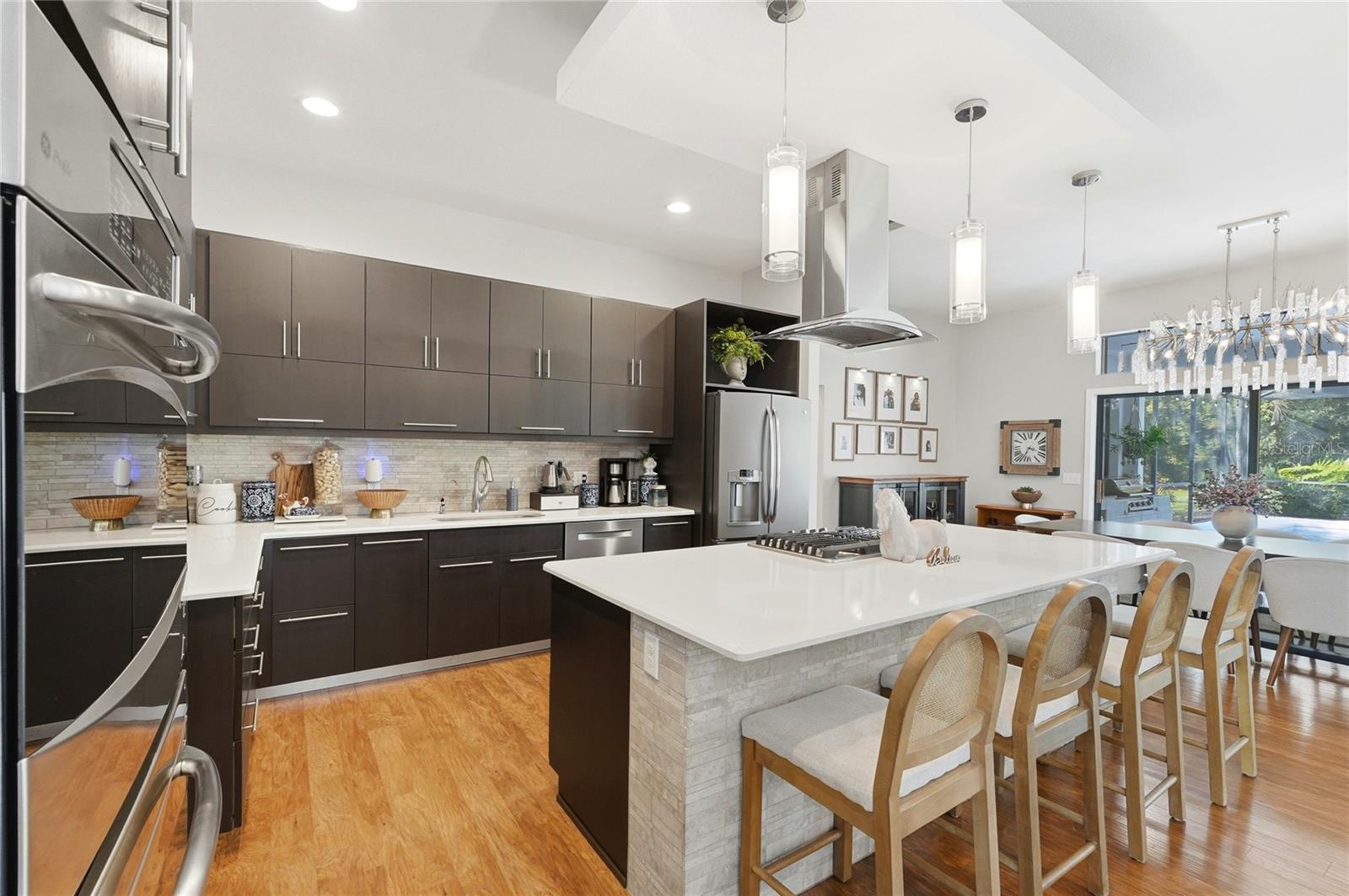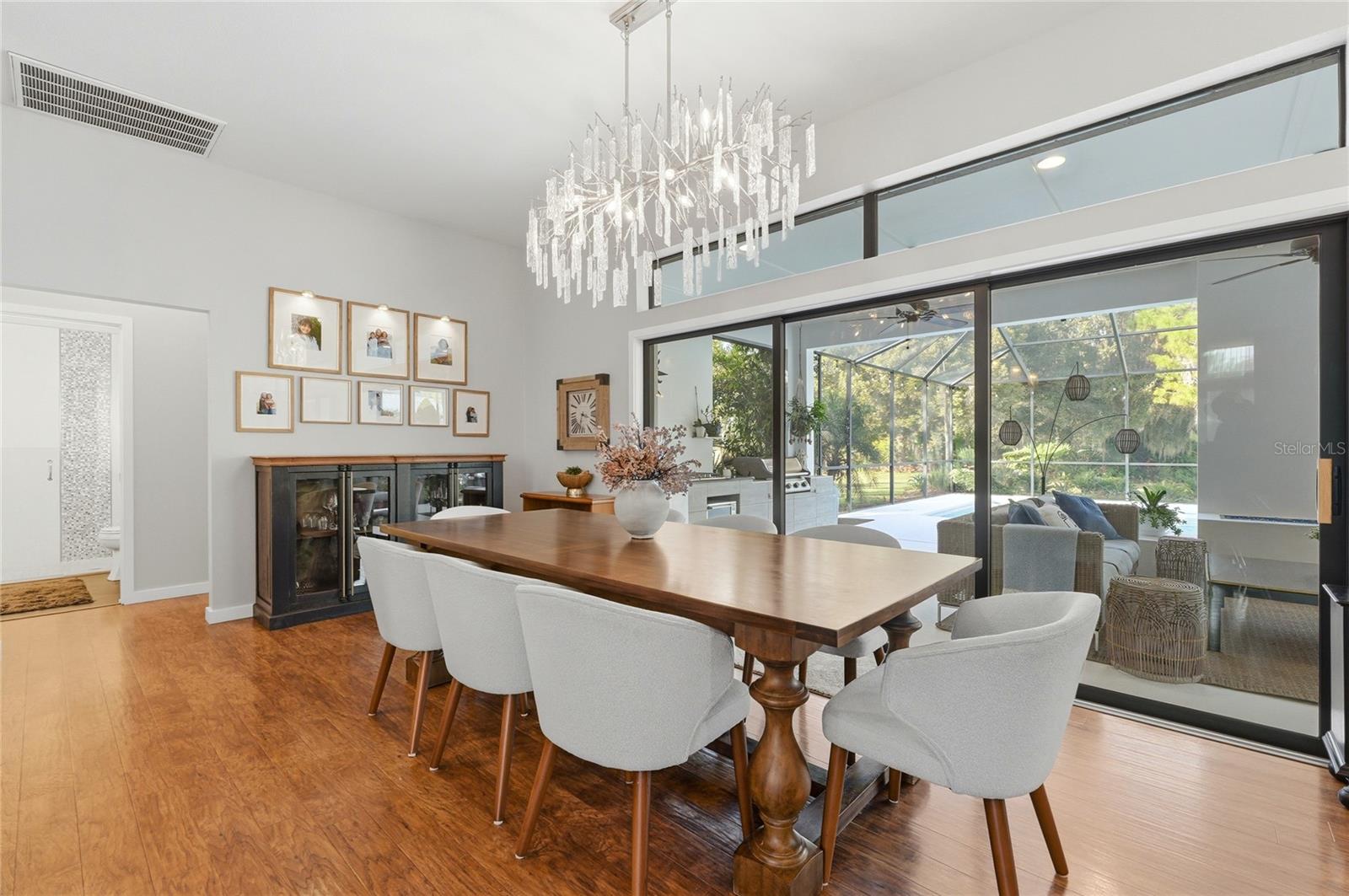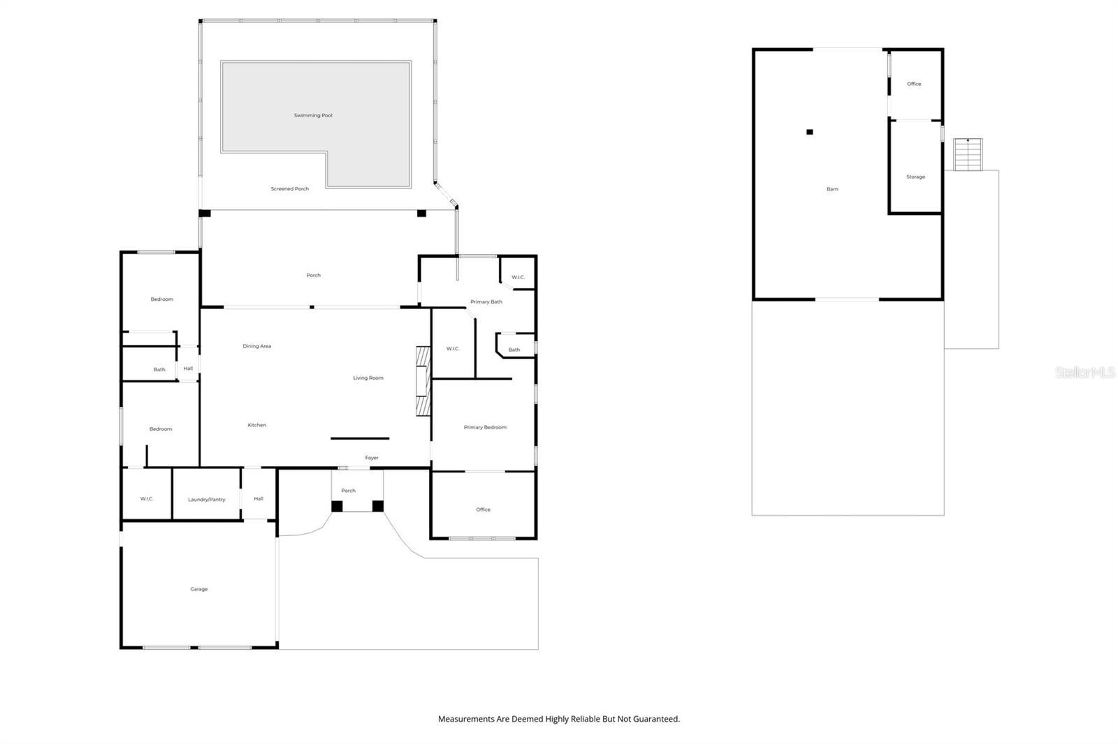 Tucked behind a private gated entry, this extraordinary 30+ acre estate delivers an exceptional blend of luxury, privacy, and purposeful design—perfectly suited for an equestrian farm, cattle ranch, or refined country retreat with no HOA. The property features a custom-built pool home, a 30'x40' barn with a furnished apartment and a detached climate-controlled building, all thoughtfully designed to provide flexible options for multi-generational living, guest accommodations, or income potential within a refined yet highly functional setting. The 2014 custom-built residence offers an open layout with a great room, dining area, spacious kitchen, split bedrooms, primary suite with an office, expansive laundry room, oversized lanai and a 2-car garage. The great room is a stunning focal point, highlighted by an electric fireplace with heat, set against a striking bamboo and tile feature wall with integrated lighting and outlets. Triple stacking sliding glass doors with transom windows flood the home with natural light while showcasing sweeping views of the pool and pasture. The well-appointed kitchen flows seamlessly into the great room and dining area and features custom cabinetry, quartz counters, stainless appliances, double ovens, walk-in pantry and a generous island with gas cooktop and seating for four. The dining area comfortably accommodates eight and opens to the lanai by an additional set of sliders, creating an effortless indoor-outdoor connection for entertaining. The primary suite is a luxurious retreat offering an office space with an 8-foot opening—easy to enclose for privacy. The suite is completed by 2 spacious walk-in closets with built-ins and a spa-inspired bath with a granite counter, dual sinks, a soaking tub, walk-in shower, and private water closet. Secondary bedrooms offer ample space and versatility, including built-in storage and a thoughtfully designed bunk room with integrated study and play areas and a walk-in safe closet. Step outside to the screen-enclosed lanai, where resort-style living takes center stage. Enjoy a salt-filtered, heated pool, an outdoor kitchen with a granite counter, grill, sink, cooktop, fridge, outdoor shower and a gas fireplace—perfect for year-round enjoyment. A backyard fire pit adds an additional gathering space under the stars. The estate continues with an impressive barn offering flexible use for equipment, hobbies, or easy conversion to horse stalls and a tack room, complete with an air-conditioned office. Above the barn, a beautifully finished one-bedroom apartment features a living room, full kitchen, stackable washer and dryer and a private deck overlooking the serene pasture—ideal for guests. The 14'x24' detached, climate-controlled building features a half bath and internet connectivity, making it ideal for a private studio, home office or she-shed. The land includes a cross-fenced pasture with a livestock pen, persimmon trees, greenhouse with electricity, RV electrical hookup and two chicken coops. Additional highlights; a new roof (2024), paved driveway, water softener, irrigation system, two tankless gas water heaters, generator connection and foam insulated panels for energy efficiency. Set in a tranquil country setting yet just 10 minutes from shopping, dining, schools and Bartow Executive Airport and centrally located between Tampa and Orlando, this remarkable estate offers the freedom to ride ATVs, store recreational toys and enjoy wide-open acreage without compromise.