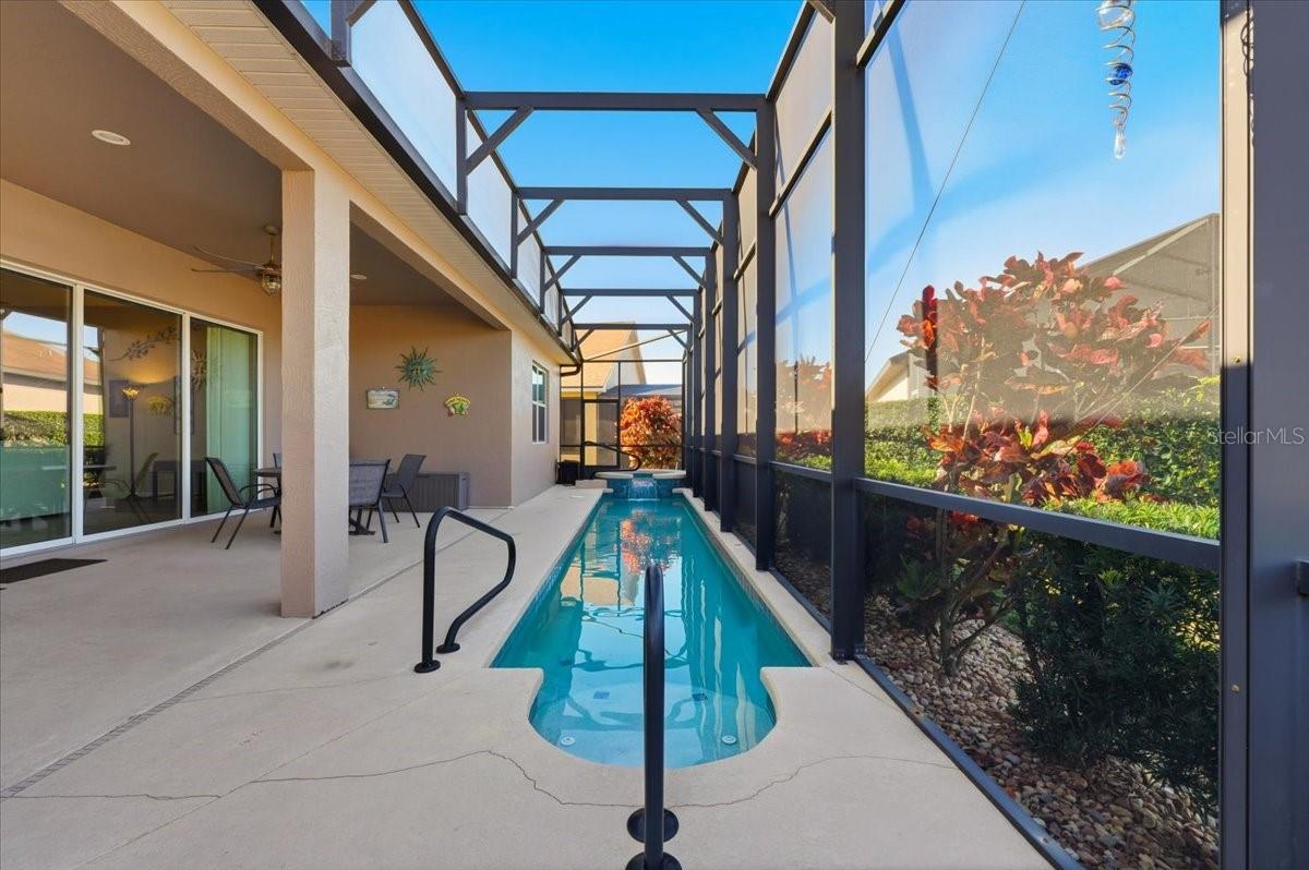 Located within the prestigious Lake Ashton 55+ community, offering gated entry with 24-hour guard service, this beautifully appointed three-bedroom, two-bath pool home offers a refined Florida lifestyle defined by comfort, quality, and thoughtful design. Lush, well-maintained landscaping and a welcoming screened front porch create an elegant first impression and set the tone for the home’s inviting interior. Upon entry, the spacious and open layout draws the eye through the living room to a triple sliding glass door, filling the space with natural light and creating a seamless connection to the outdoor living area. Luxury vinyl plank flooring enhances the main living areas, while plush carpeting in the bedrooms adds warmth and comfort—making the home equally well-suited for everyday living and entertaining. The sliding glass door opens to a screened pool and patio, where a heated saltwater pool with an attached built-in spa provides a private retreat for relaxation or hosting guests. The kitchen is thoughtfully designed with granite countertops, an oversized breakfast bar capable of accommodating generous seating, and a large walk-in pantry. A dinette area and formal dining space flow effortlessly into the expansive living room, further enhancing the home’s open and airy feel. The primary suite features a well-designed en suite bathroom with dual sinks thoughtfully separated for added functionality, along with a generously sized walk-in closet. Bedroom two (2) is accented with classic plantation shutters, adding charm and curb appeal to the front elevation of the home. Bedroom three (3) offers exceptional versatility with two closets and a built-in desk area with additional cabinetry—ideal for a home office, hobby space, or guest accommodations. Modern appeal is enhanced by brand-new interior and exterior paint, a whole-house water purification and softener system, and a newly installed, state-of-the-art Pentair pool and spa automation system. This fully integrated technology offers intuitive programmable control of filtration, heating, lighting, and water features. The three-car garage, designed with two separate doors, includes a two-car garage equipped with a retractable insect screen, while the golf cart garage offers additional storage and convenience. Lake Ashton is a distinguished 55+ golf community ideally positioned between Orlando and Tampa, offering a well-curated lifestyle in a beautifully maintained setting. Residents enjoy access to an impressive clubhouse featuring an on-site restaurant and lounge, grand social and event spaces, a fitness center, indoor and outdoor pools, pickleball and tennis courts, dog parks, scenic walking paths, and a wide variety of clubs and activities. Optional golf memberships are available for those who wish to enjoy the community’s championship courses and practice facilities.