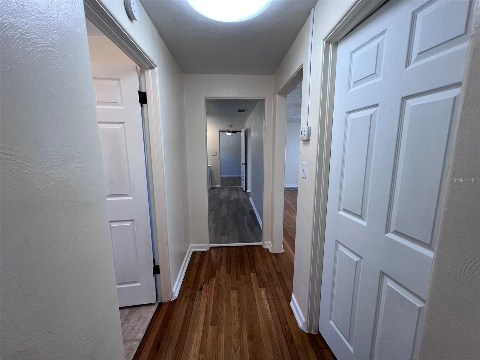 Let's not just brag about location, location, location and not brag about the water view with amazing sunsets. This updated, clean two bedroon, one bath home is a perfact starter or for someone looking to downsize. The hardwood floors are in excellent condition. The breezeway has been inclosed and can be used in multiple ways. current owner used it for an office. The tile floor and location in the home makes it versital. Heck with a little adaption it could become a thrid bedroom with room for a second bath. This home has fresh exterior and interior paint. Theres is an oversized one car garage and loft storage and there is a shed on the property. There are solar panels which almost eleminate the power bill --- averages about $25 month. They will be paid off by the seller at closing. The location is convenient to US 92, on a corner lot, with only one neighbor. A lake and Park across the street means not front neighbors, they corner lot means no rear neighbors. Priced to sell, don't let this one slip away. Give me a call for your private tour.